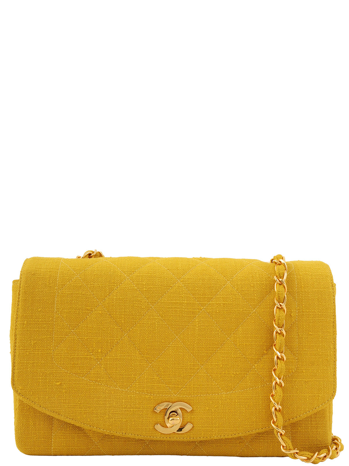 1992年頃製 コットンダイアナフラップチェーンバッグ25cm イエロー