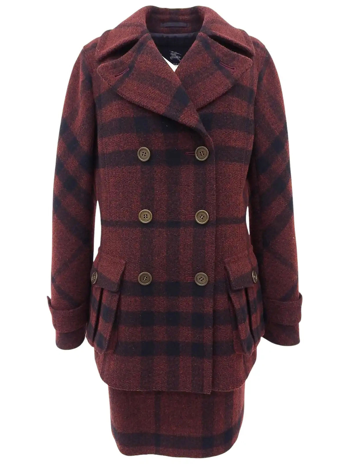 ウールチェックパターンロゴボタンセットアップ ボルドー/ブラック