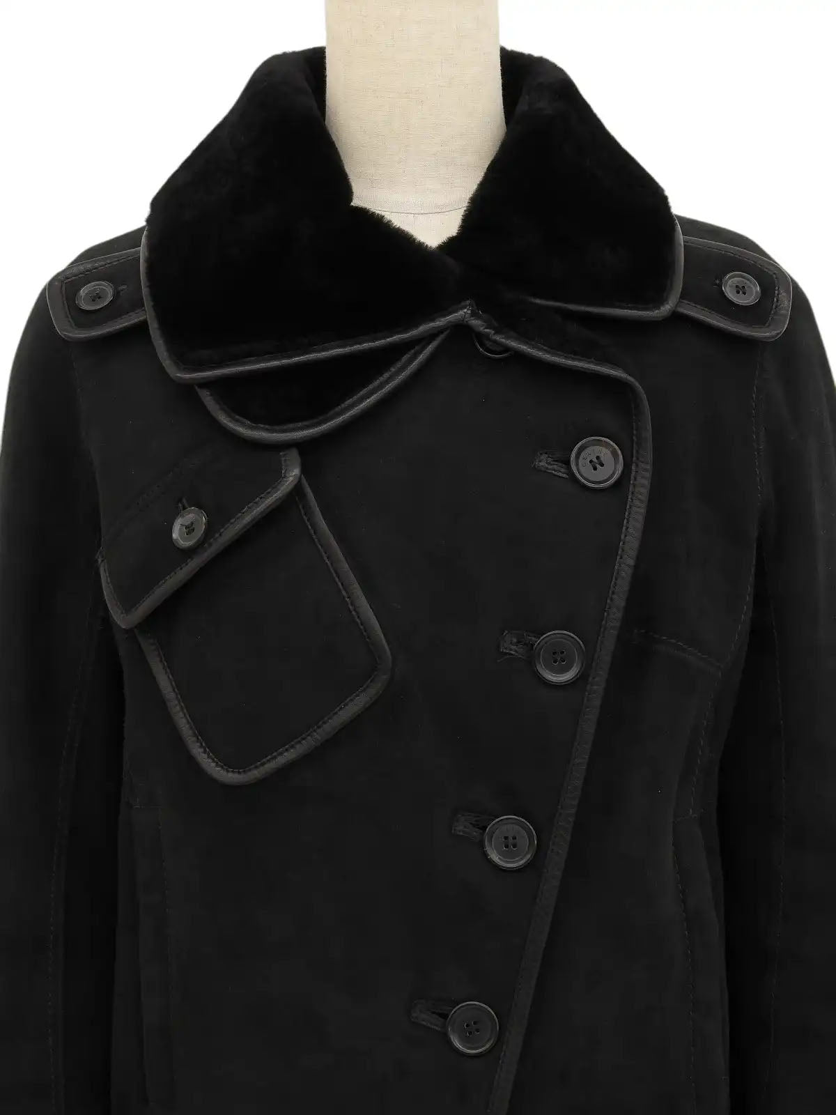 ロゴボタンデザインムートンジャケット ブラック