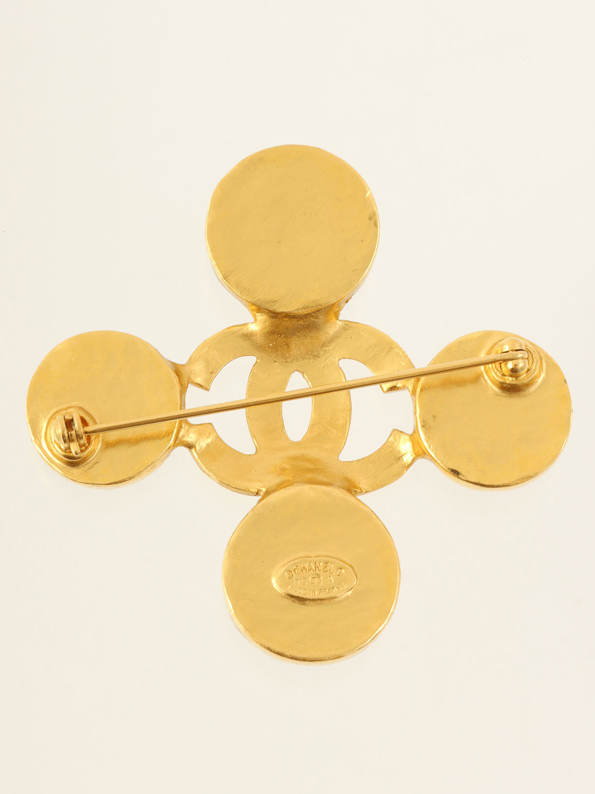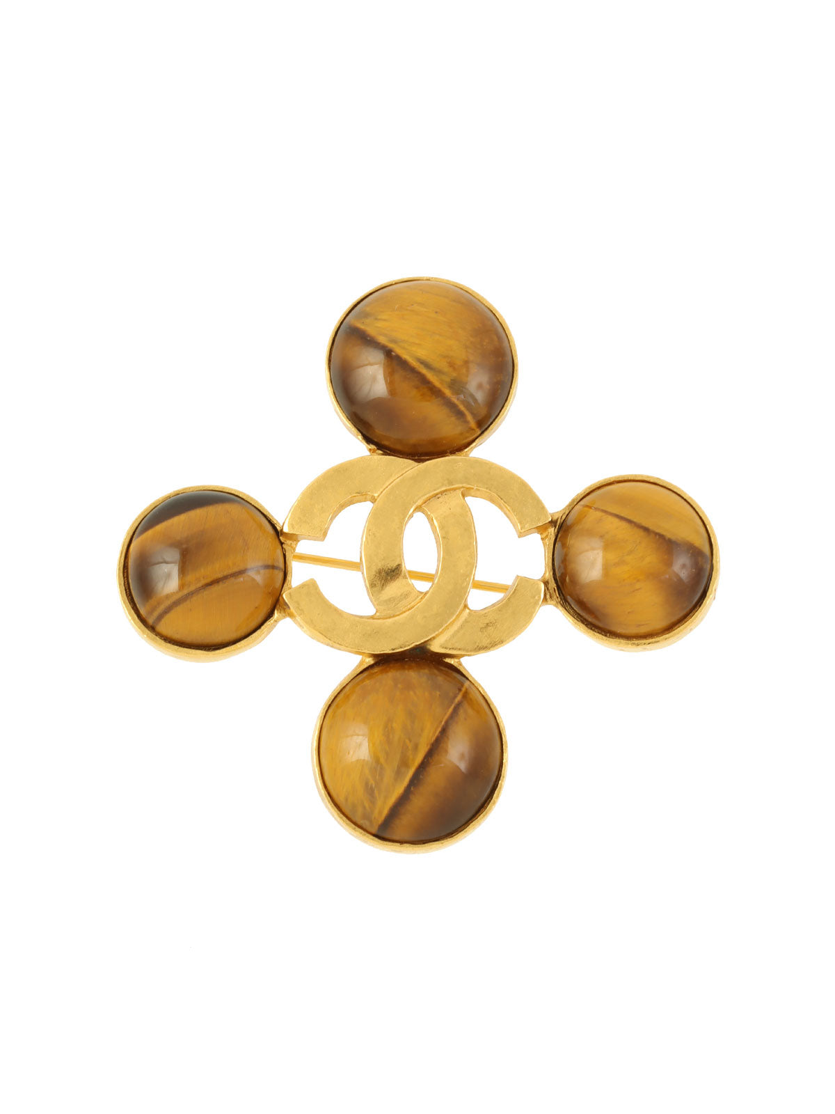 1995年製 タイガーアイCCマーククロスモチーフブローチ ゴールド/ブラウン
