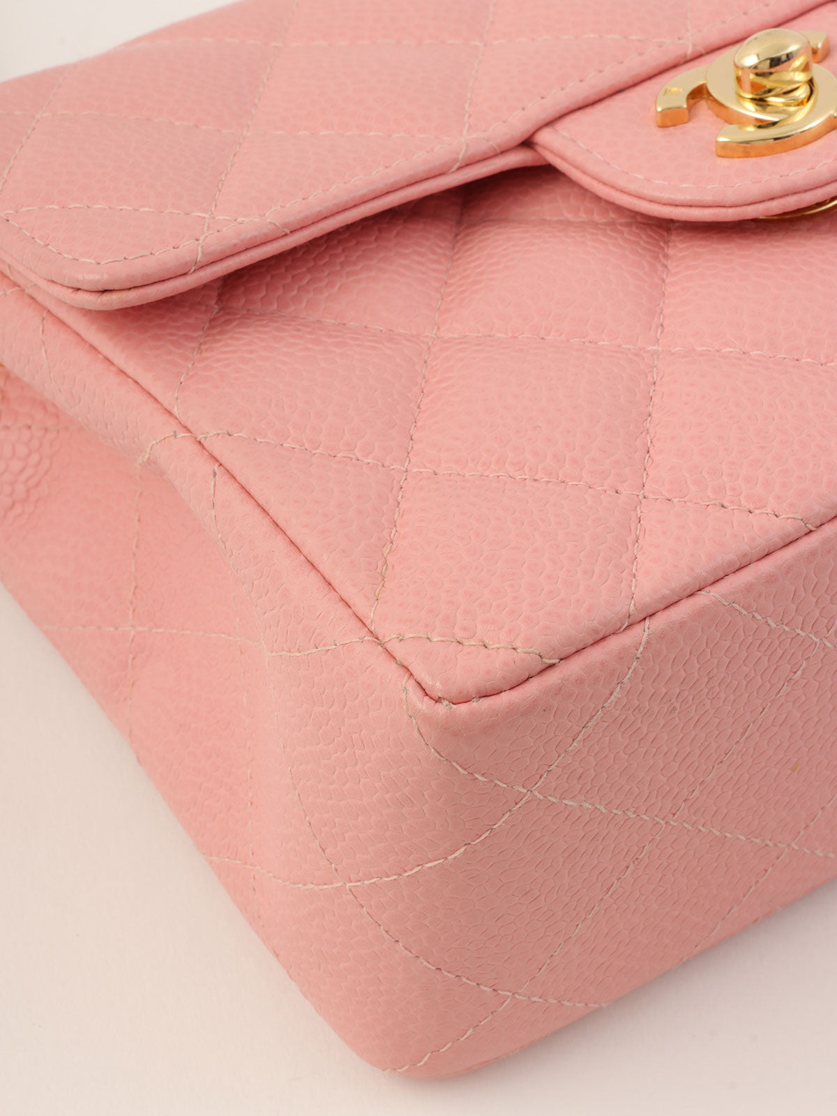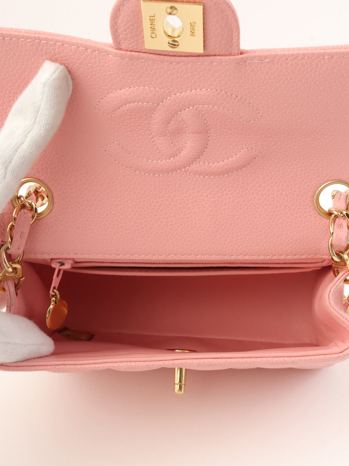2003年頃製 キャビアスキンクラシックフラップチェーンバッグミニ ピンク