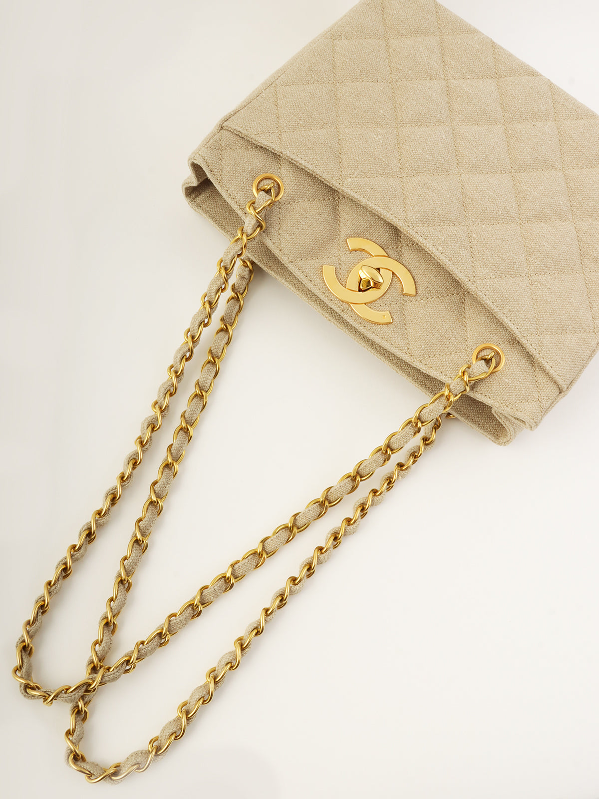 1995年頃製 リネンCCターンロックチェーントートバッグ ベージュ