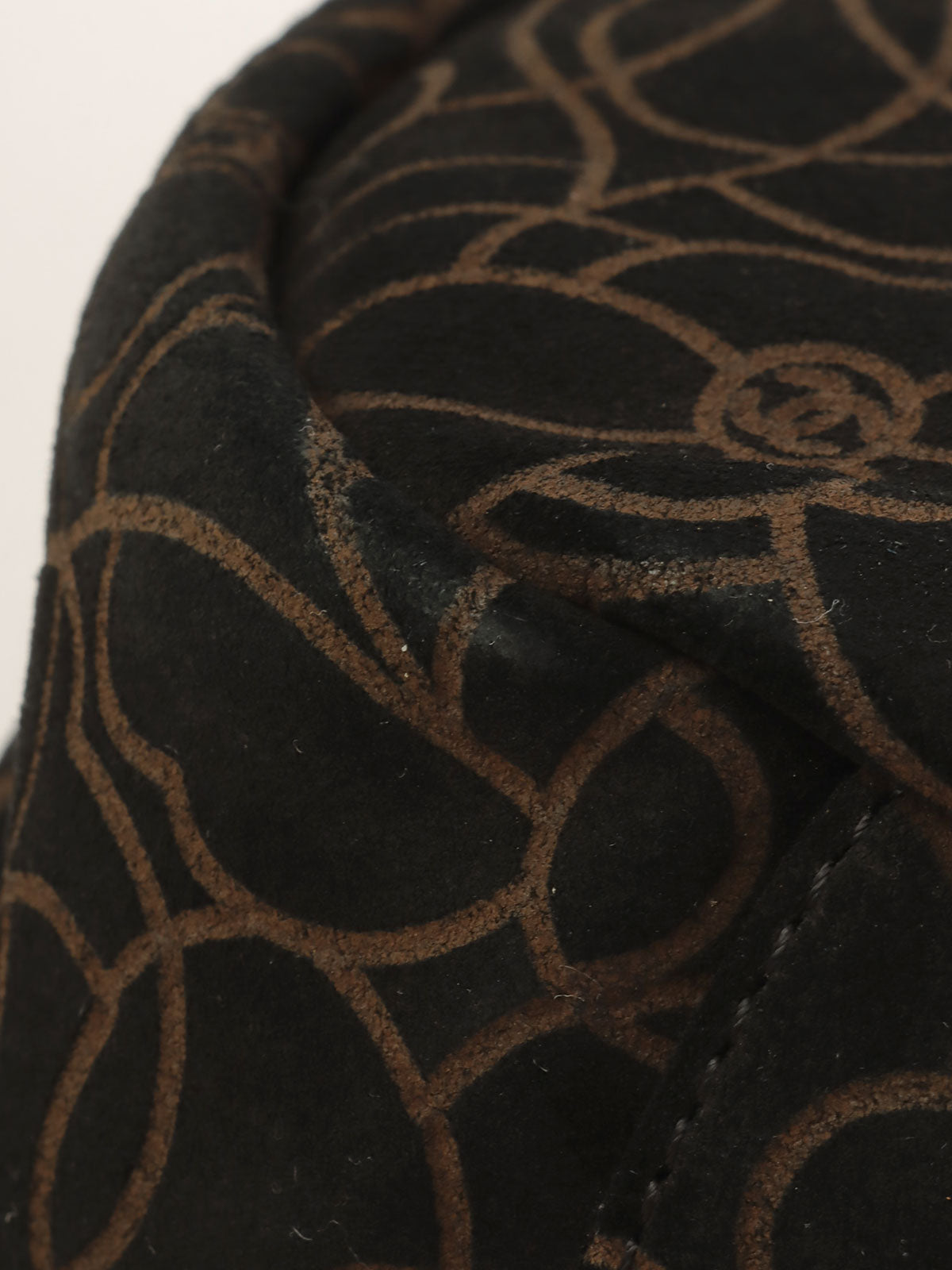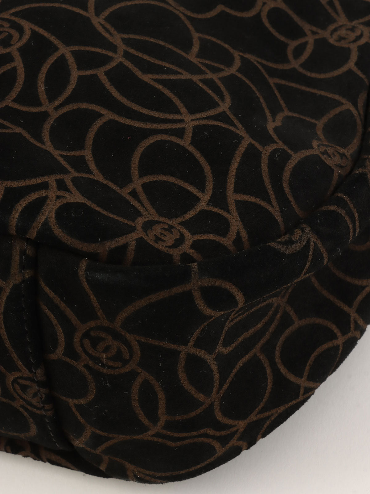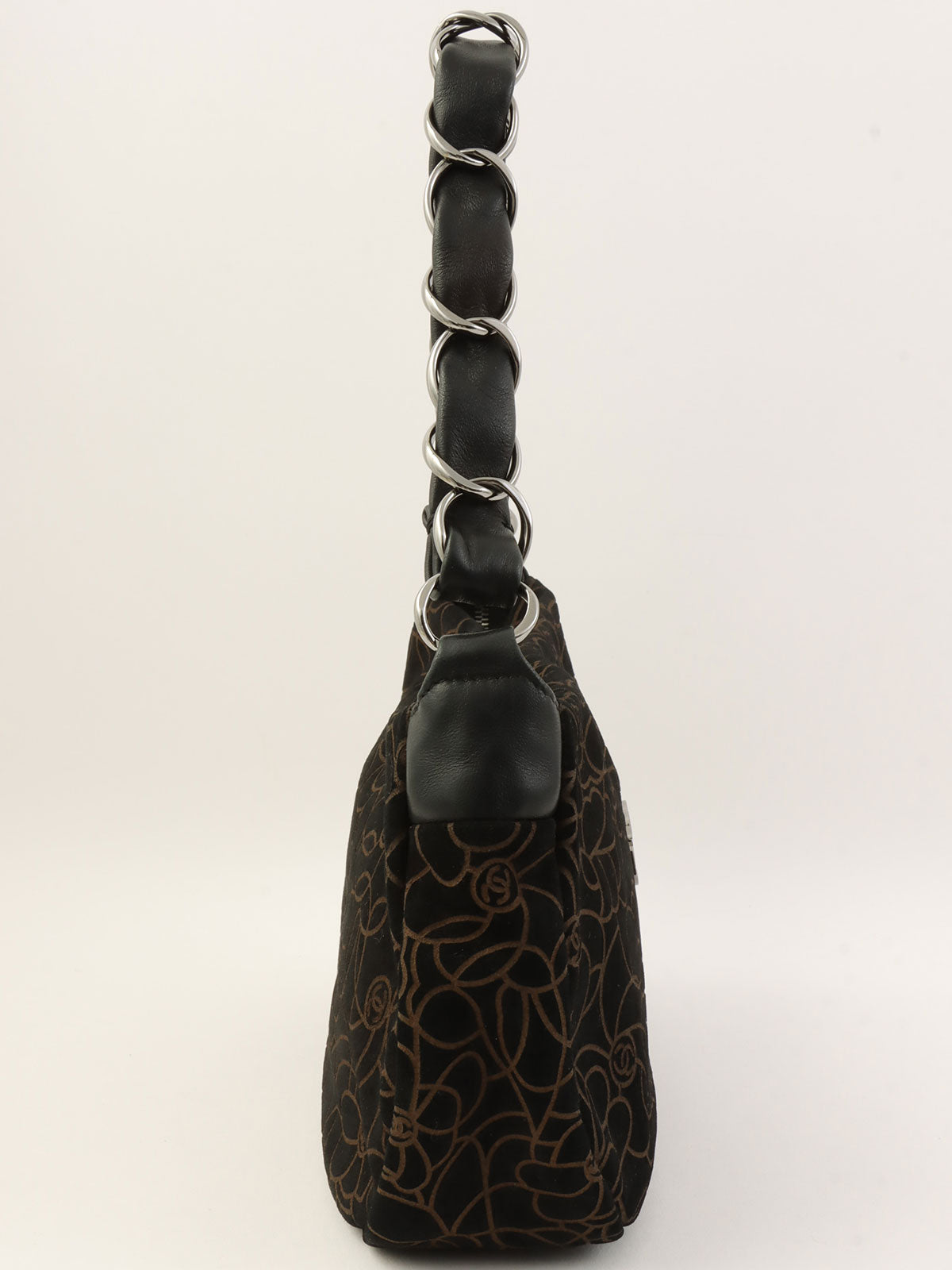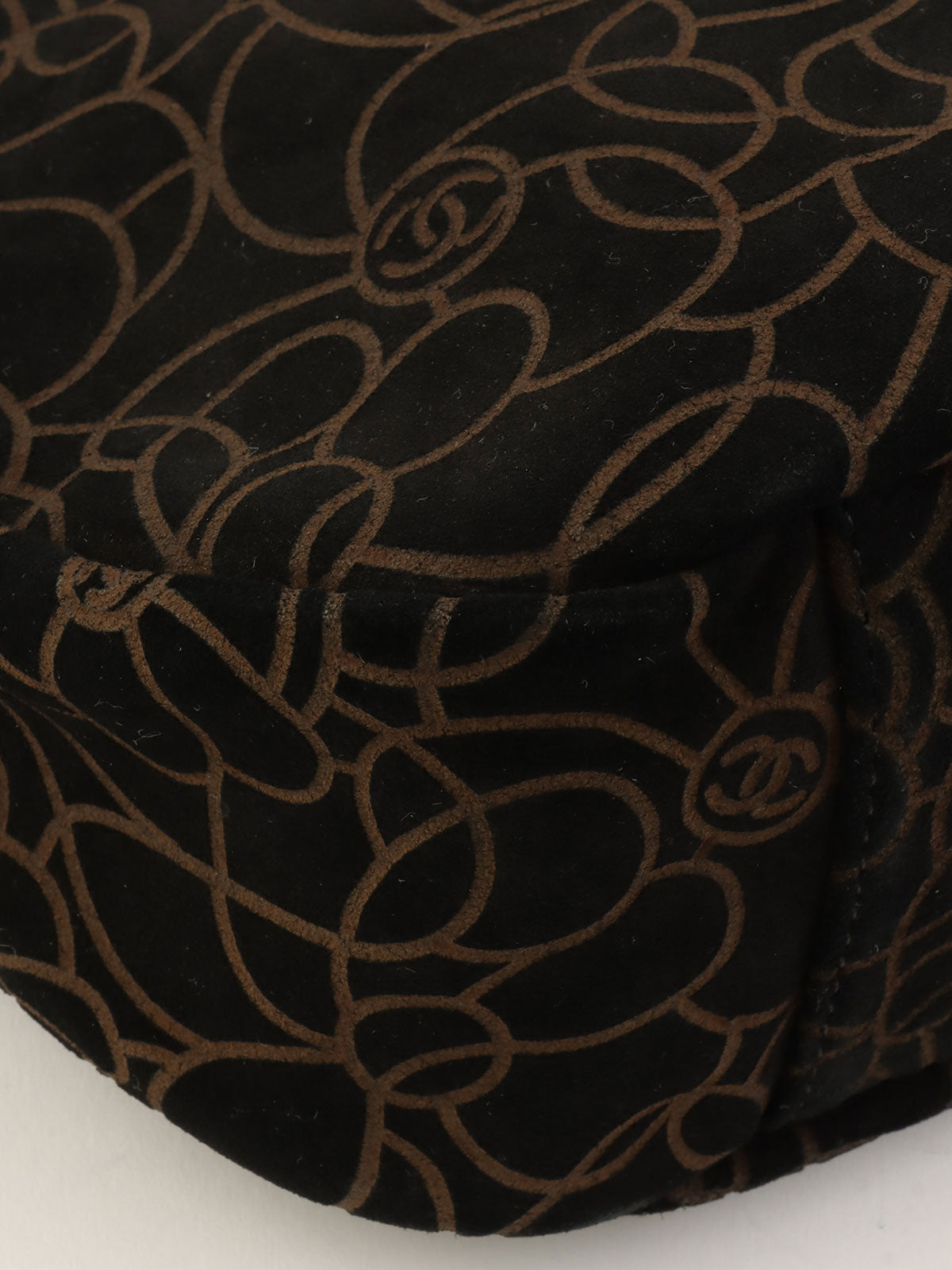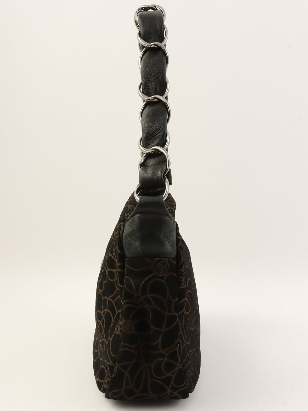 2004年頃製 スエードカメリアパターンCCマークプレートチェーンショルダーバッグ ブラック