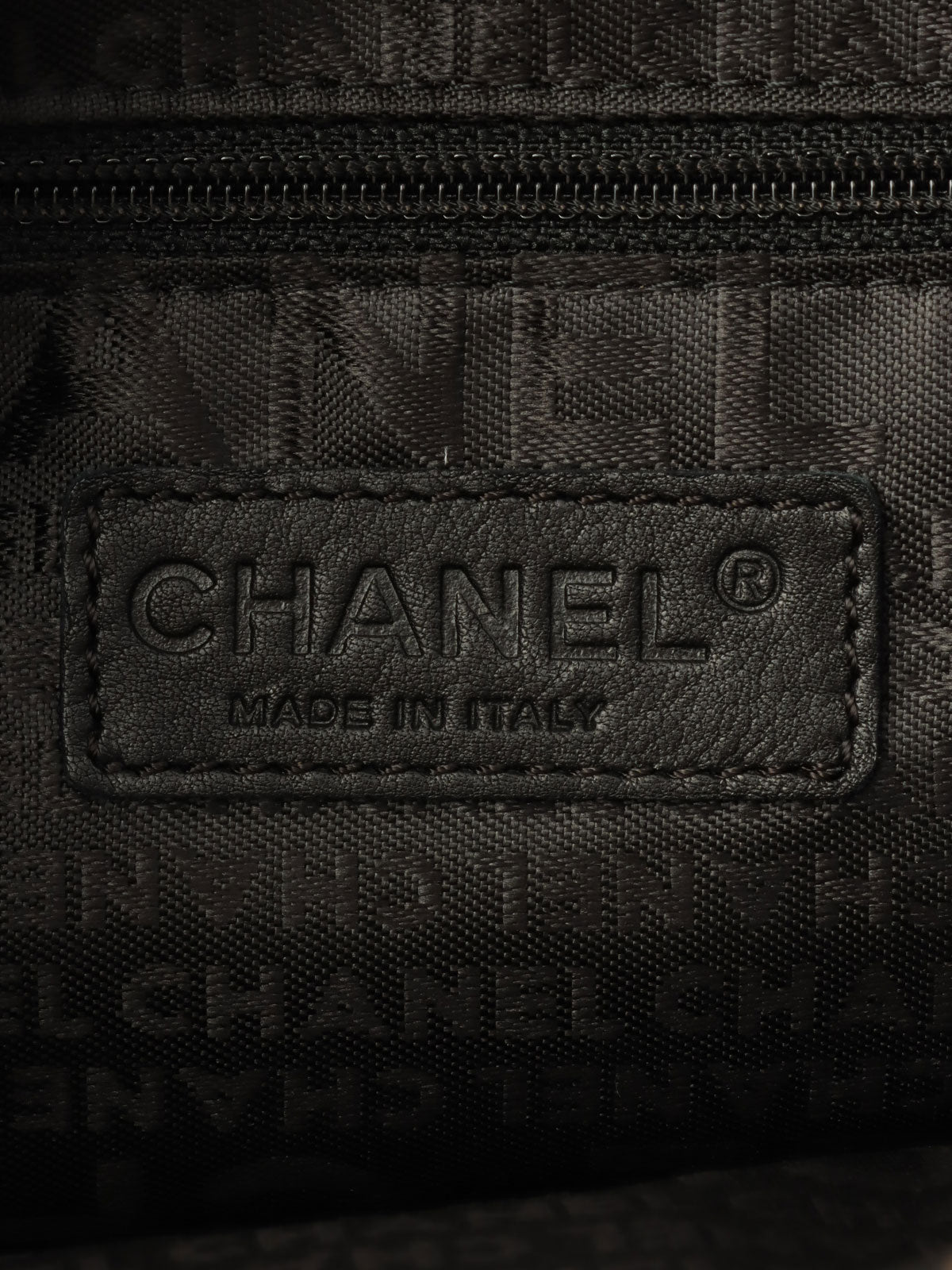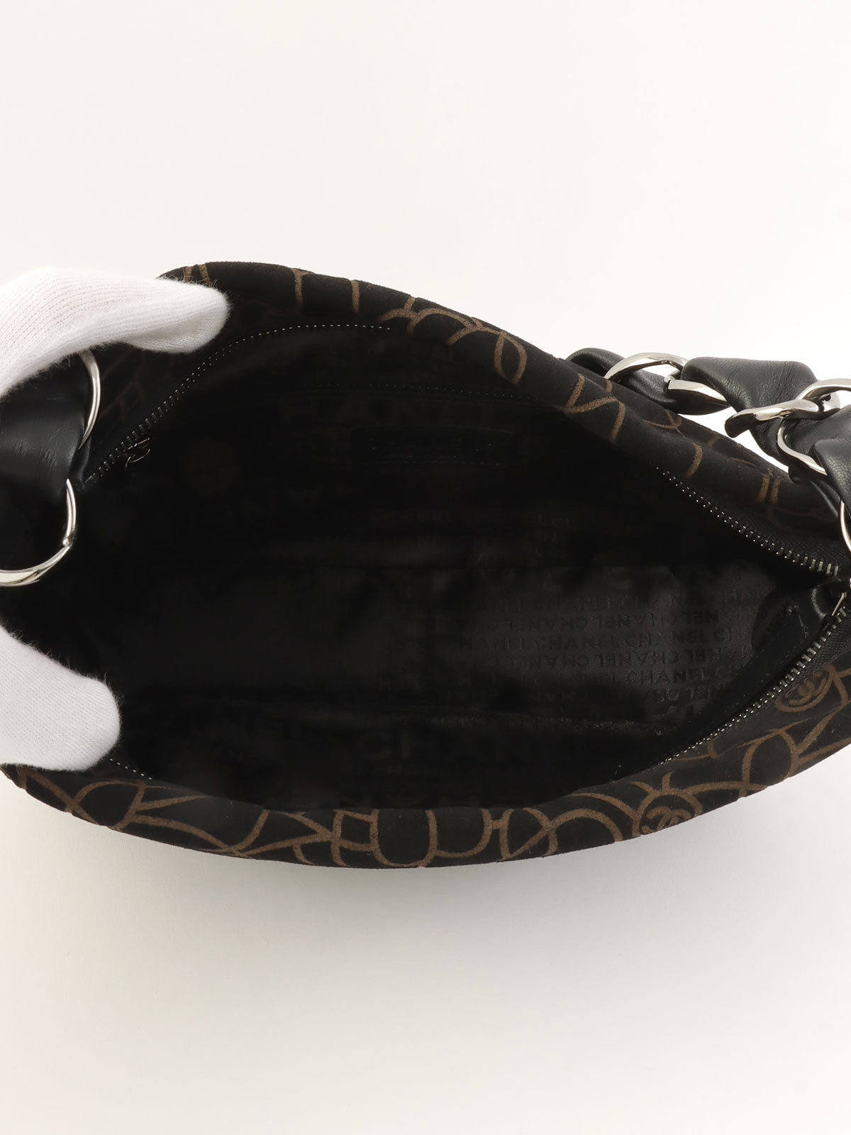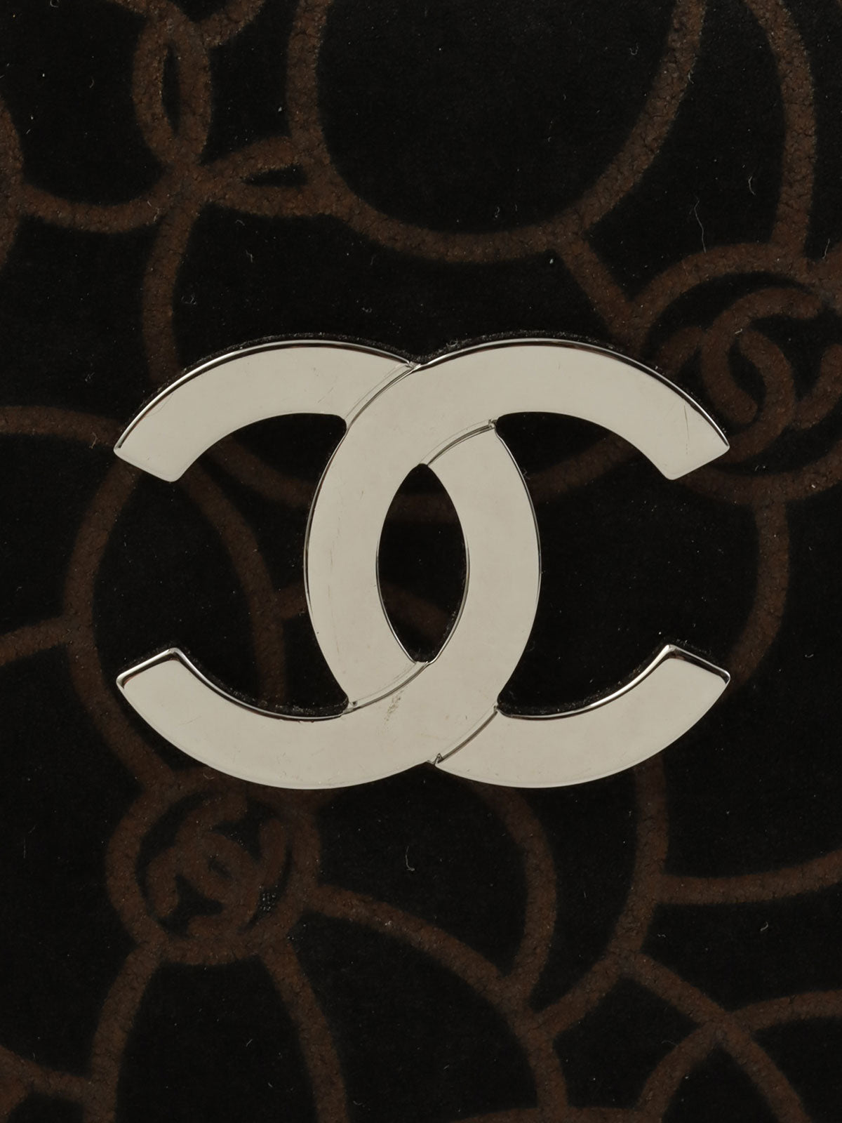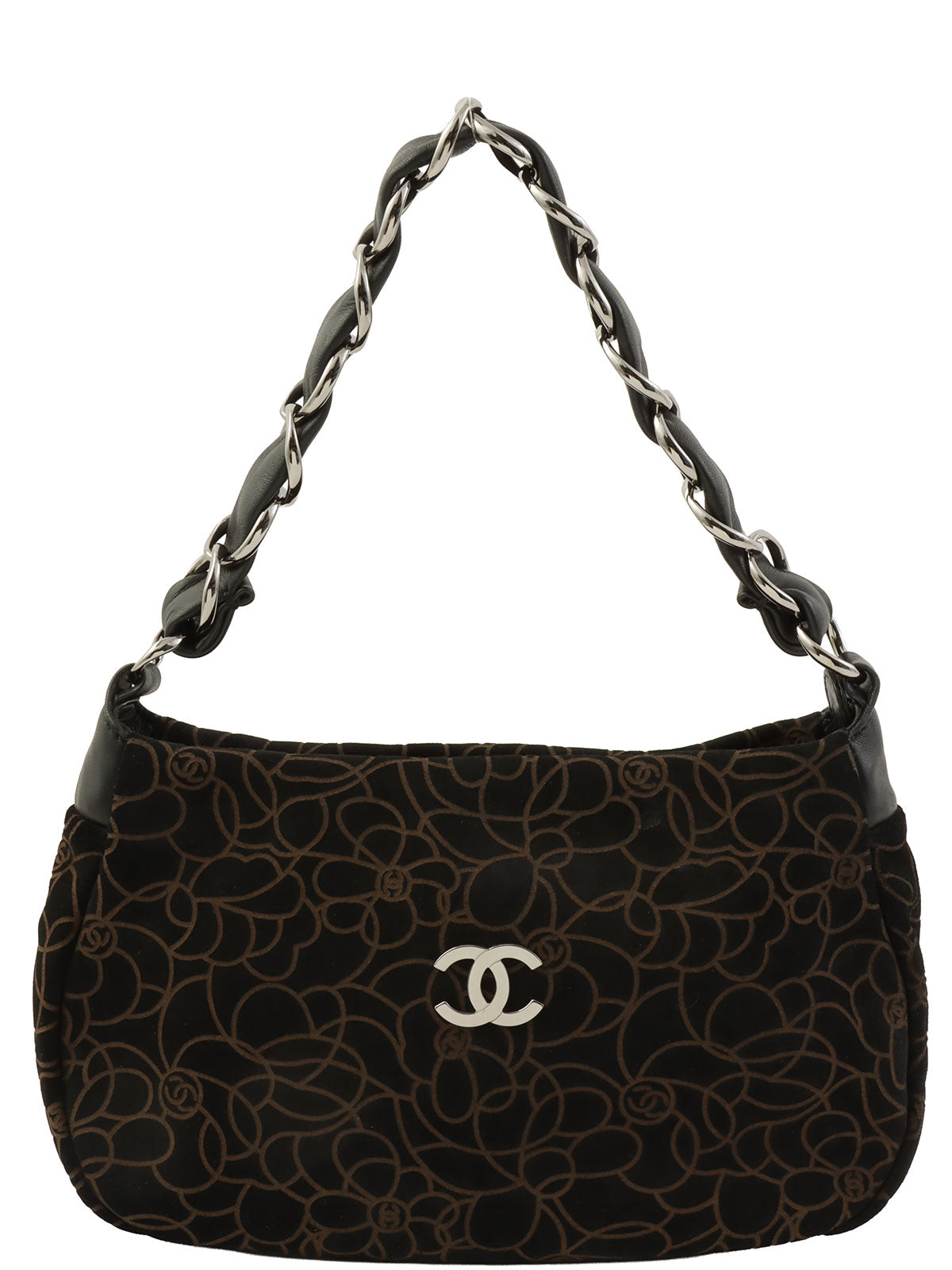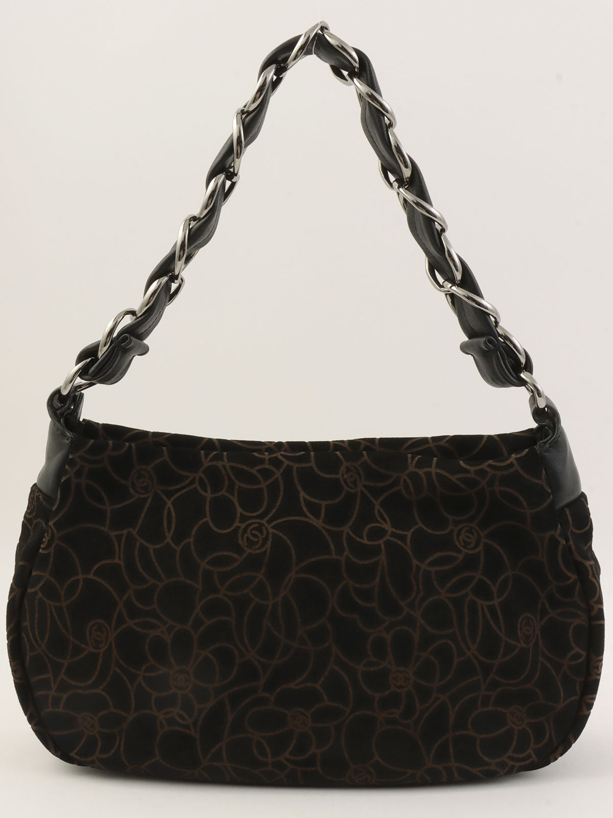 2004年頃製 スエードカメリアパターンCCマークプレートチェーンショルダーバッグ ブラック