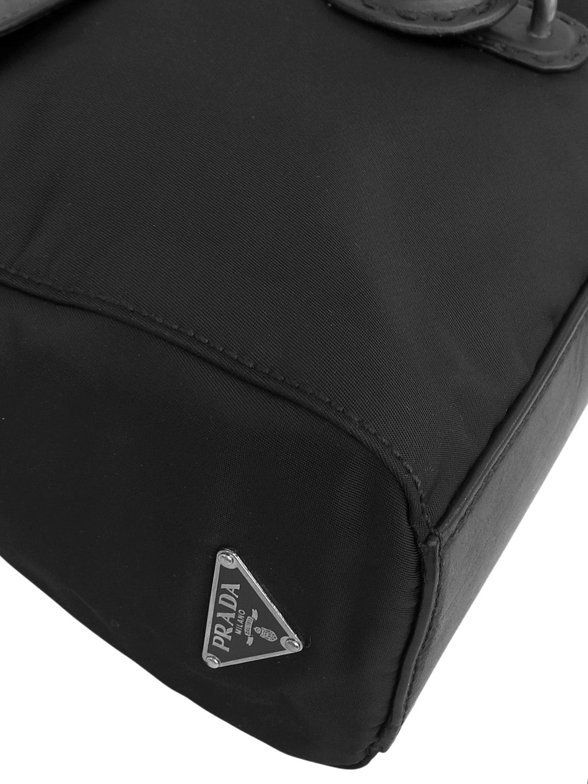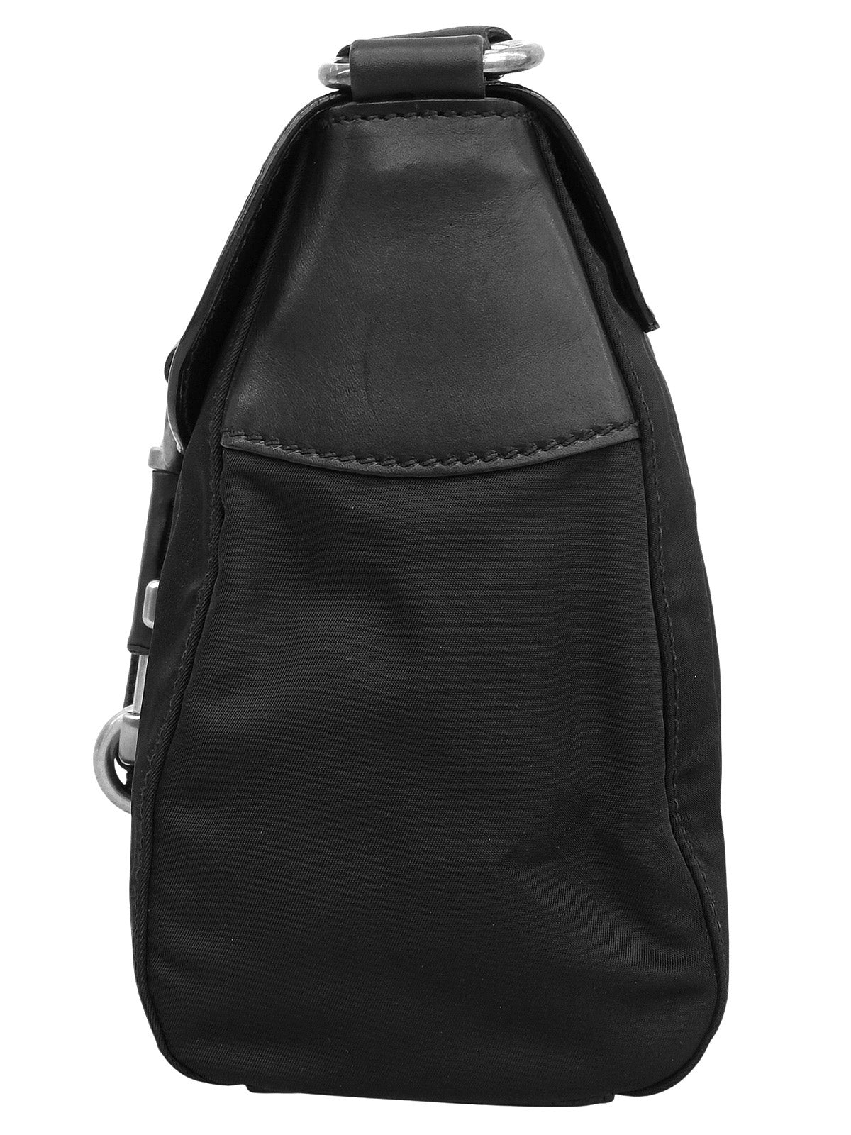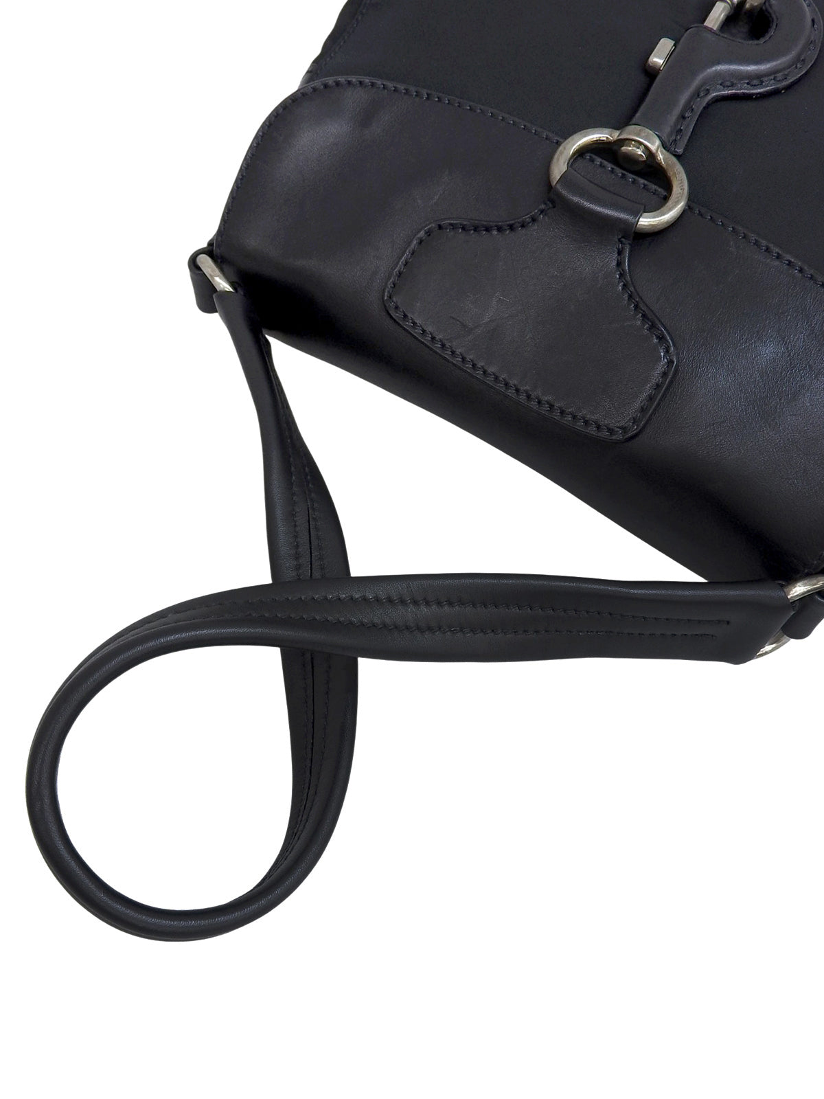 ナイロンレザーコンビロゴプレートショルダーバッグ ブラック