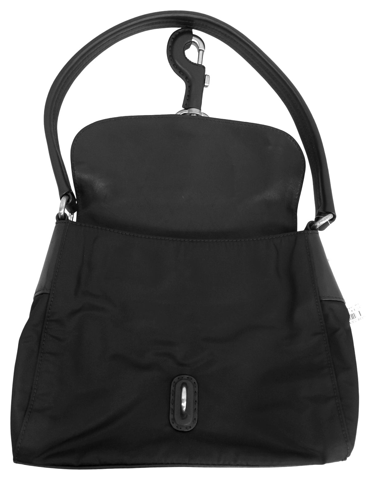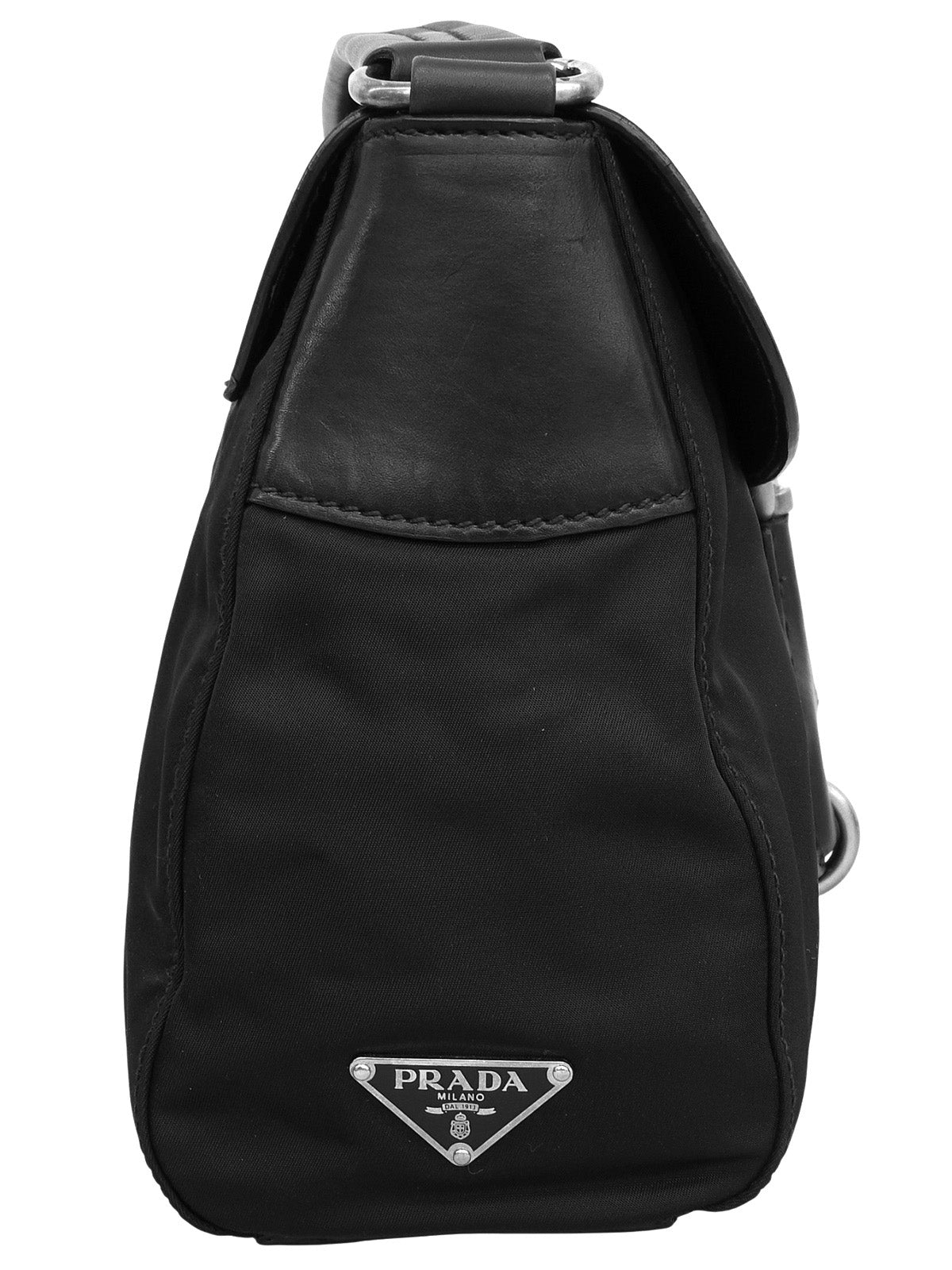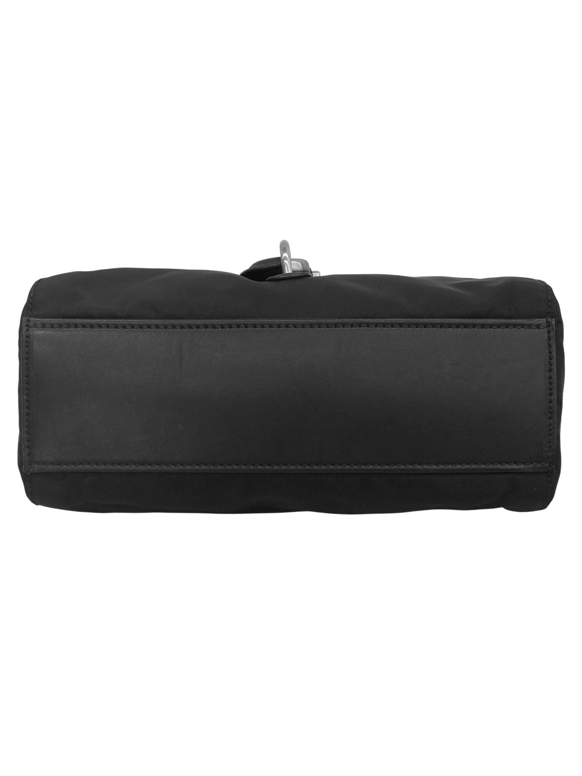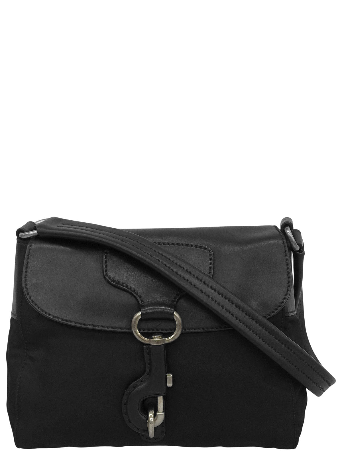 ナイロンレザーコンビロゴプレートショルダーバッグ ブラック