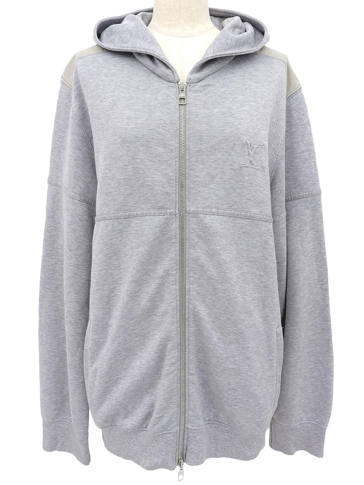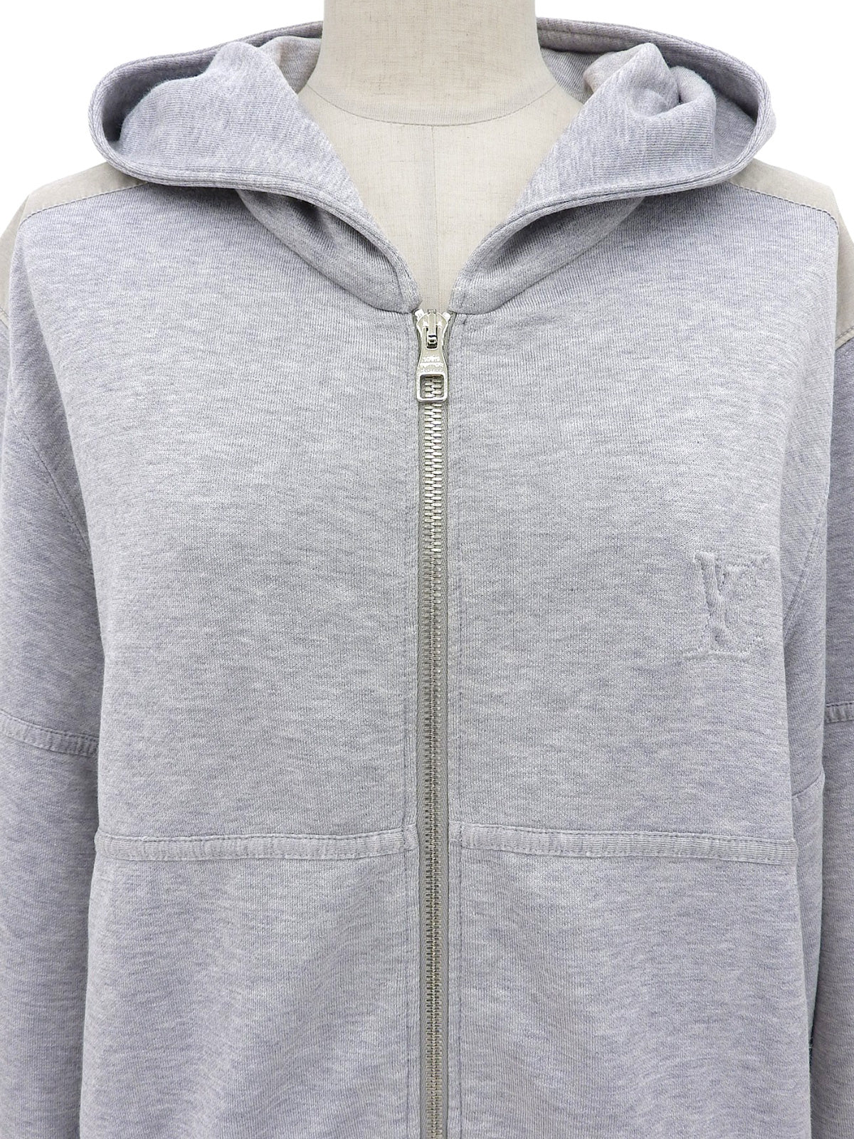 ショルダーデザインロゴエンボスジップアップパーカー グレー