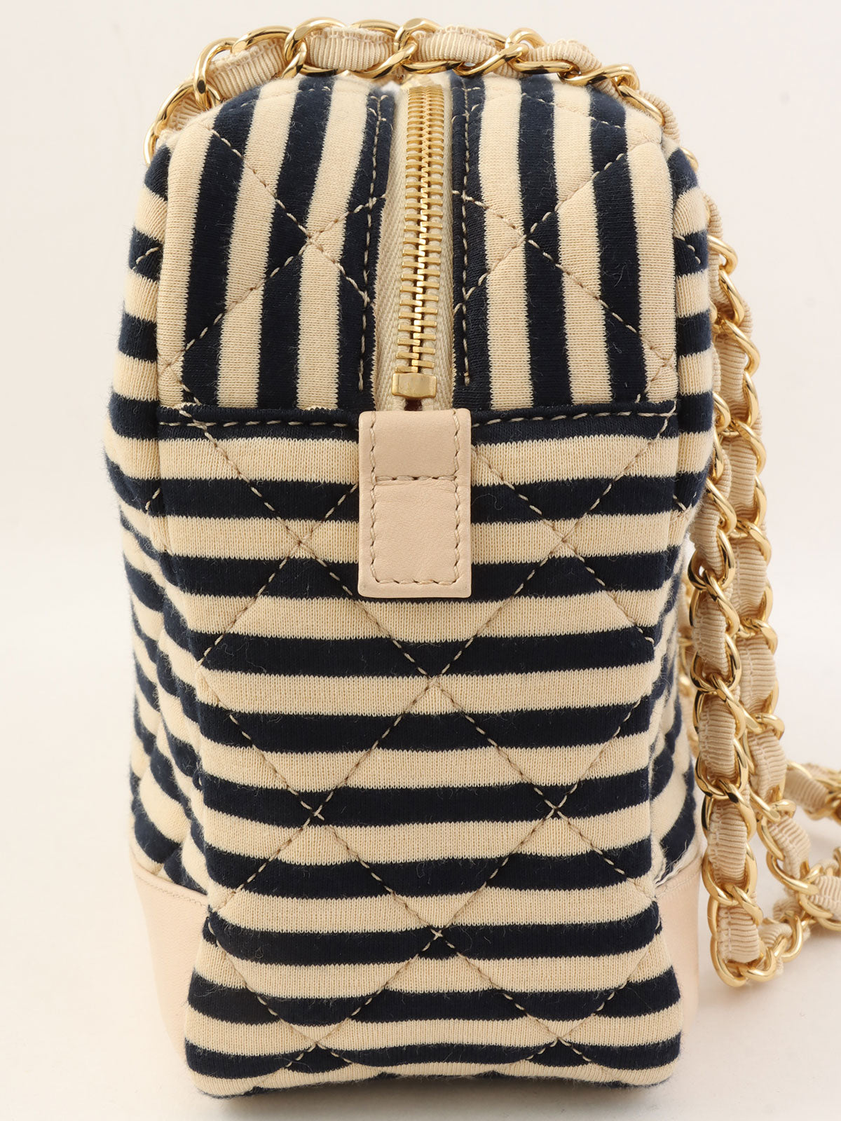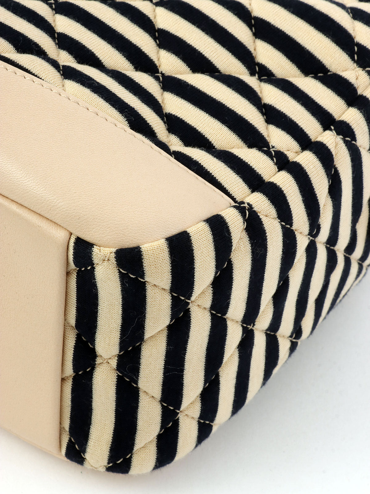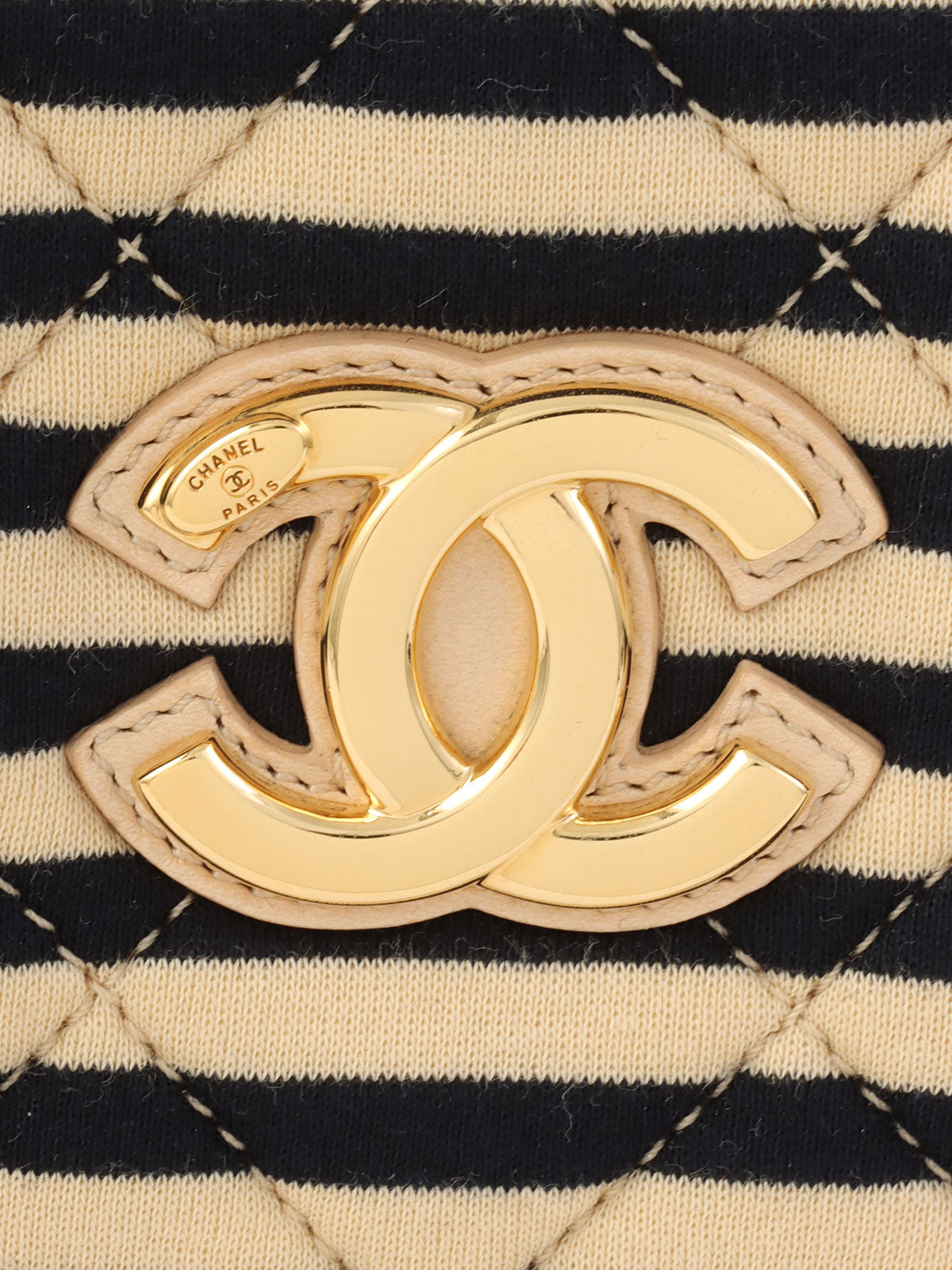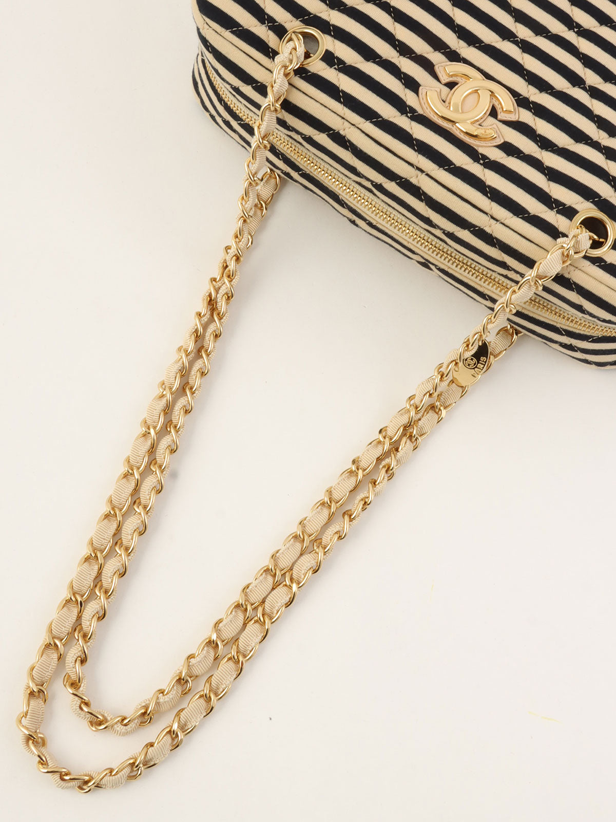 2014年頃製 コットンボーダーパターンCCマークチェーントートバッグ ベージュ/ブラック