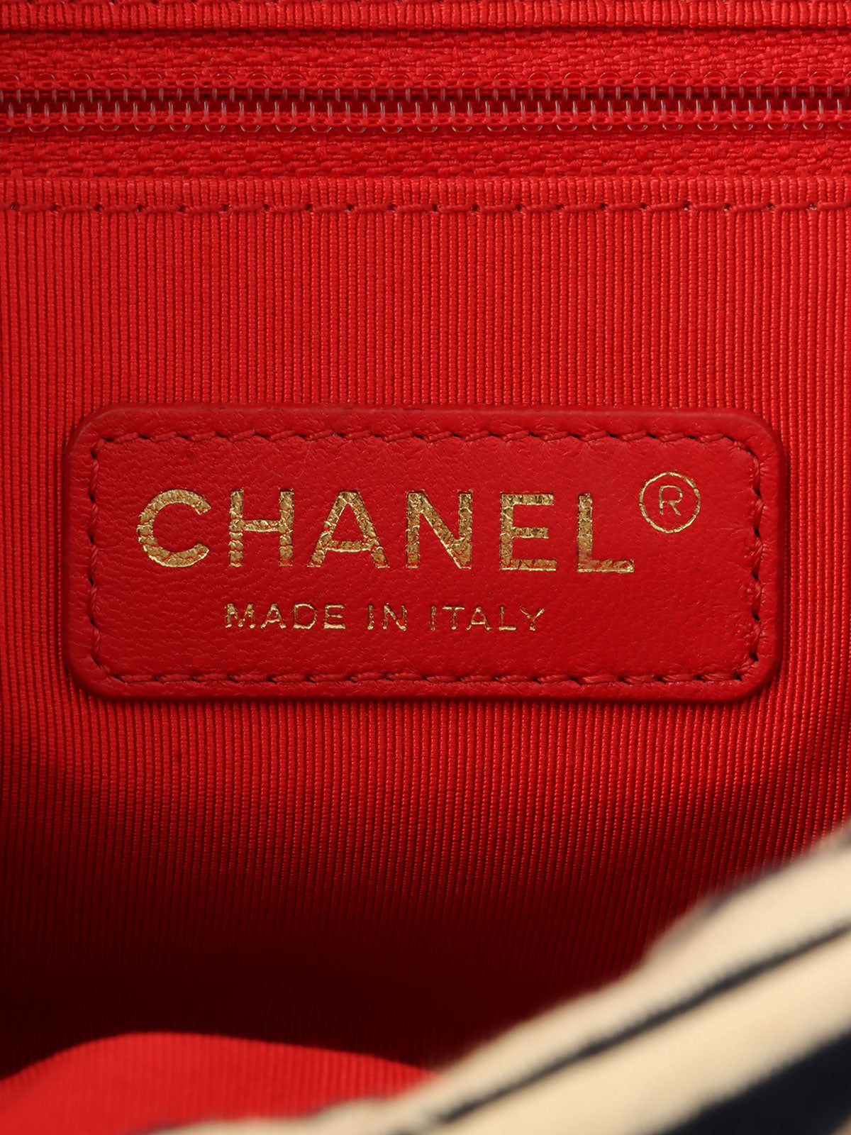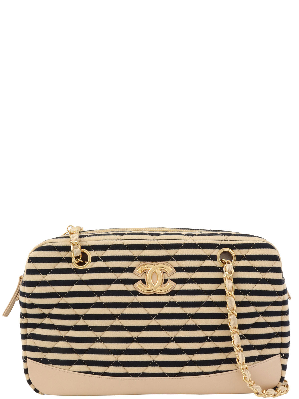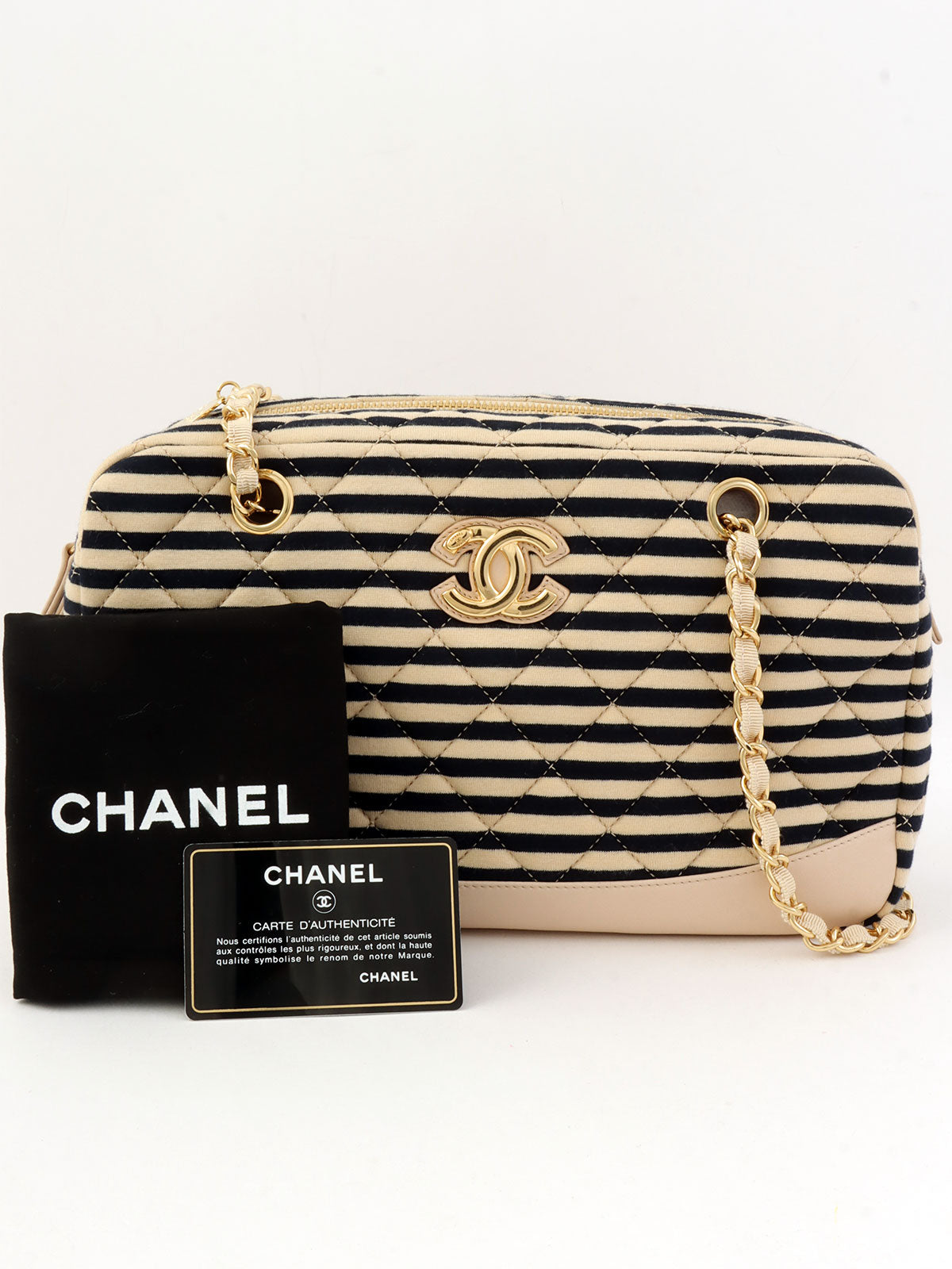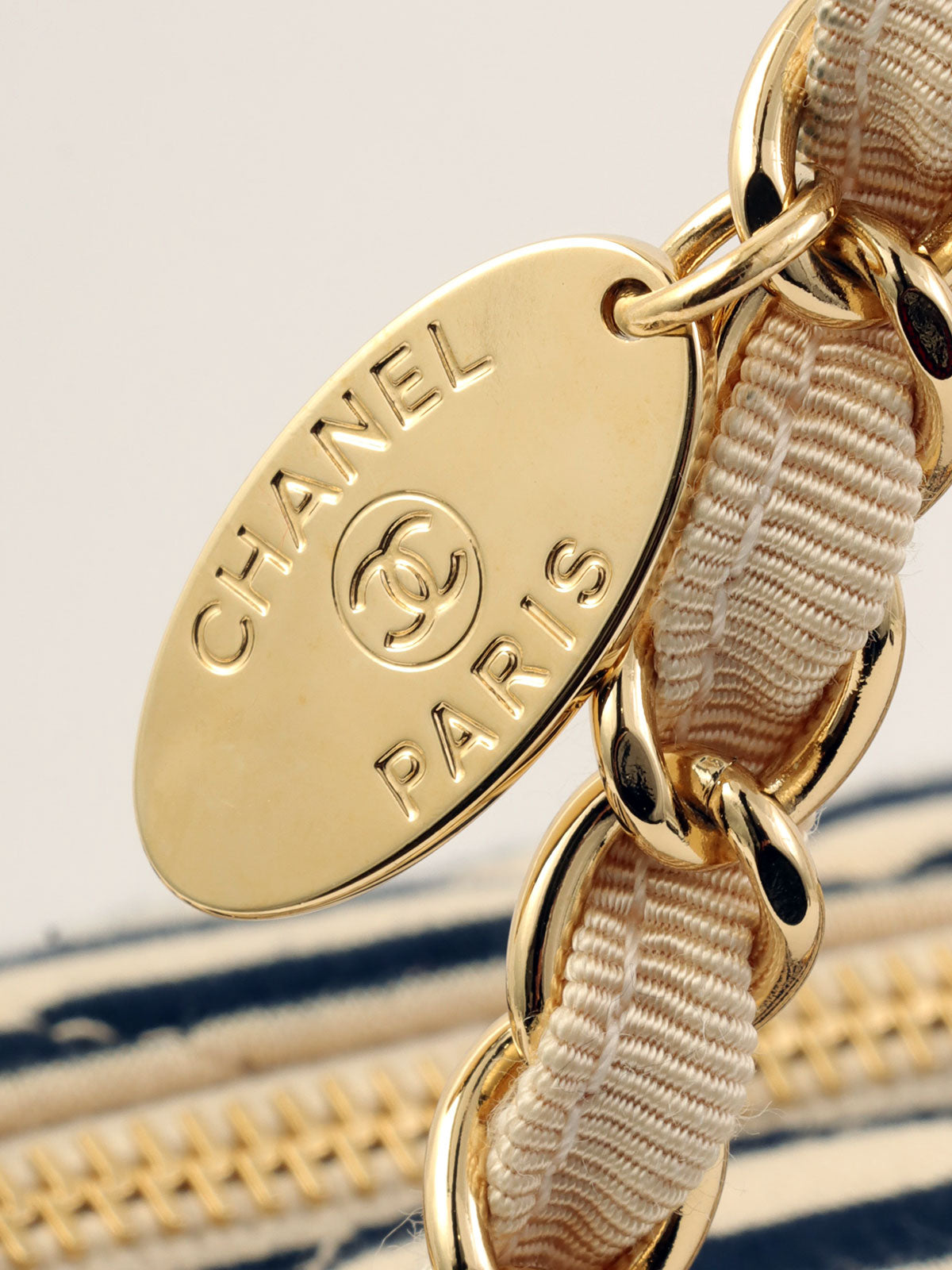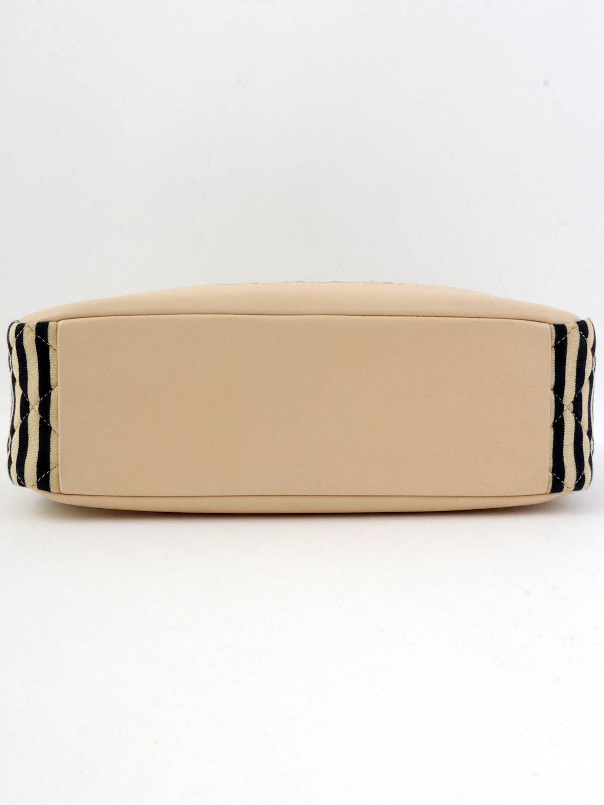 2014年頃製 コットンボーダーパターンCCマークチェーントートバッグ ベージュ/ブラック