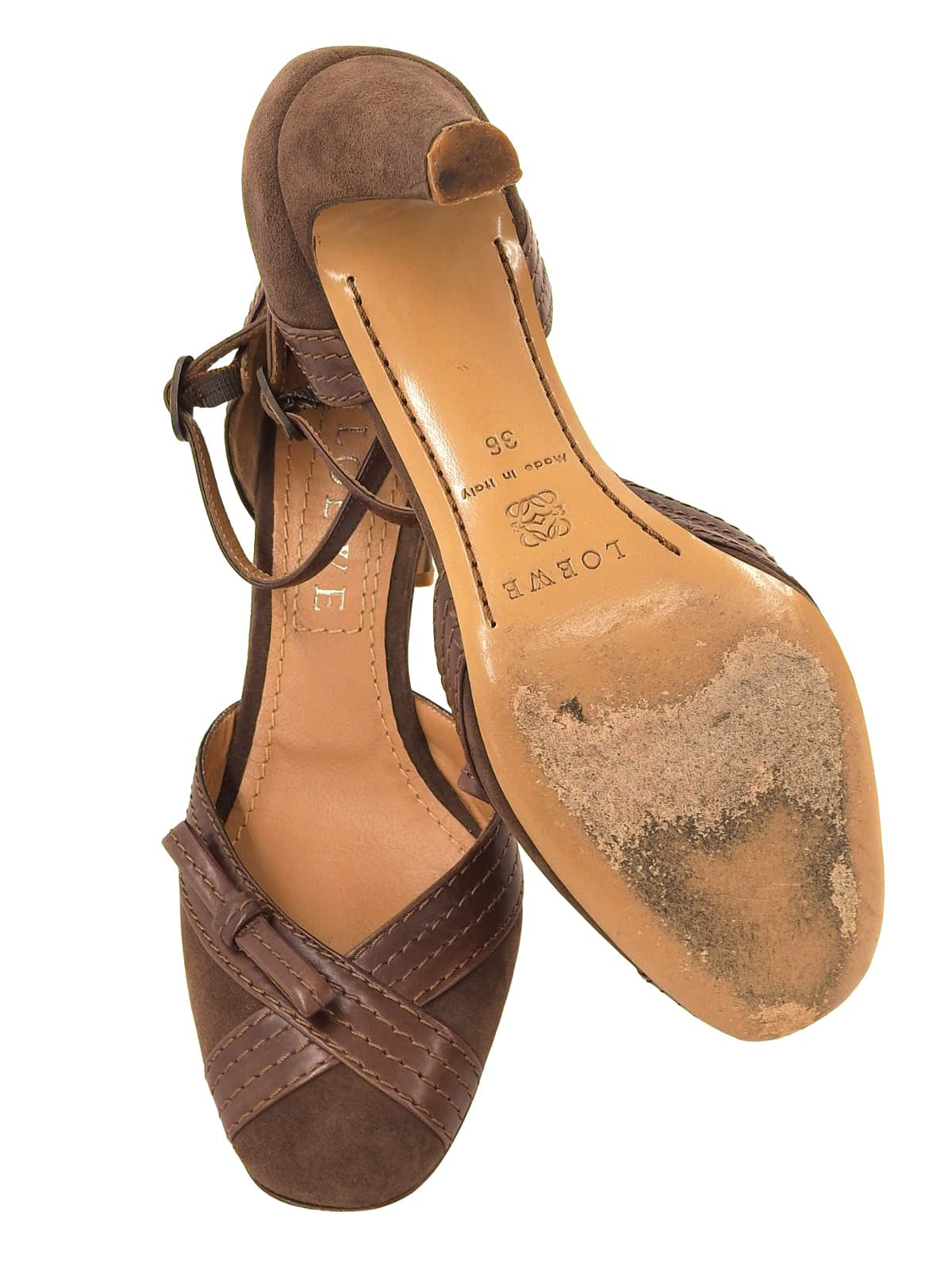 スエードレザーコンビリボンストラップパンプス ブラウン