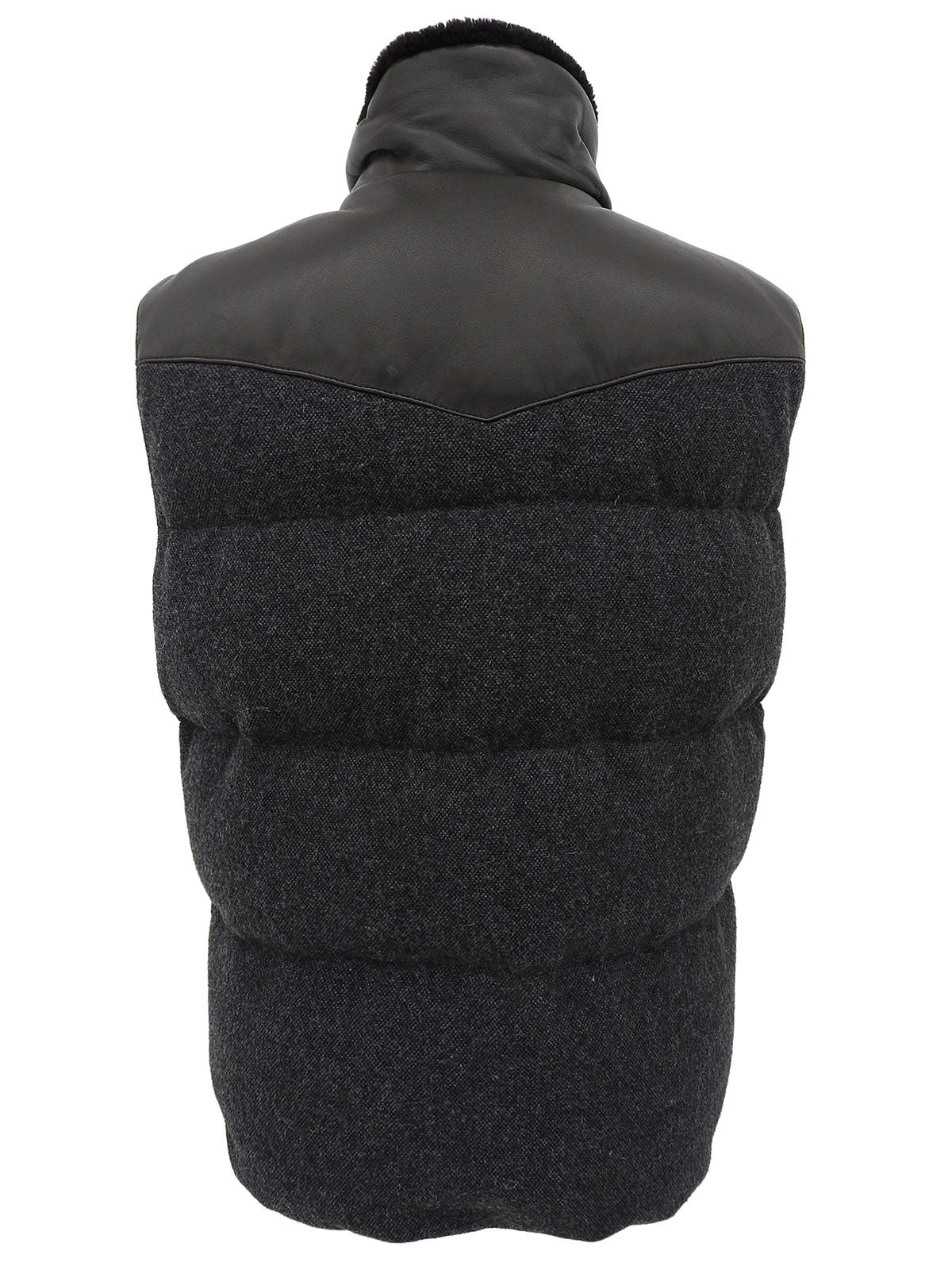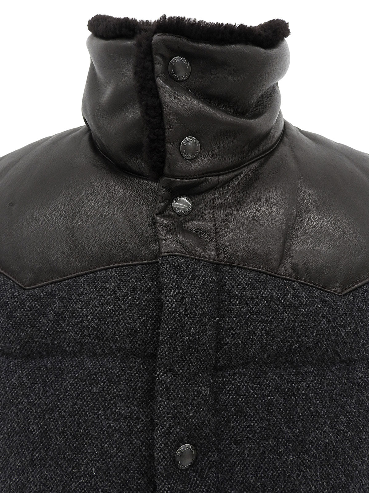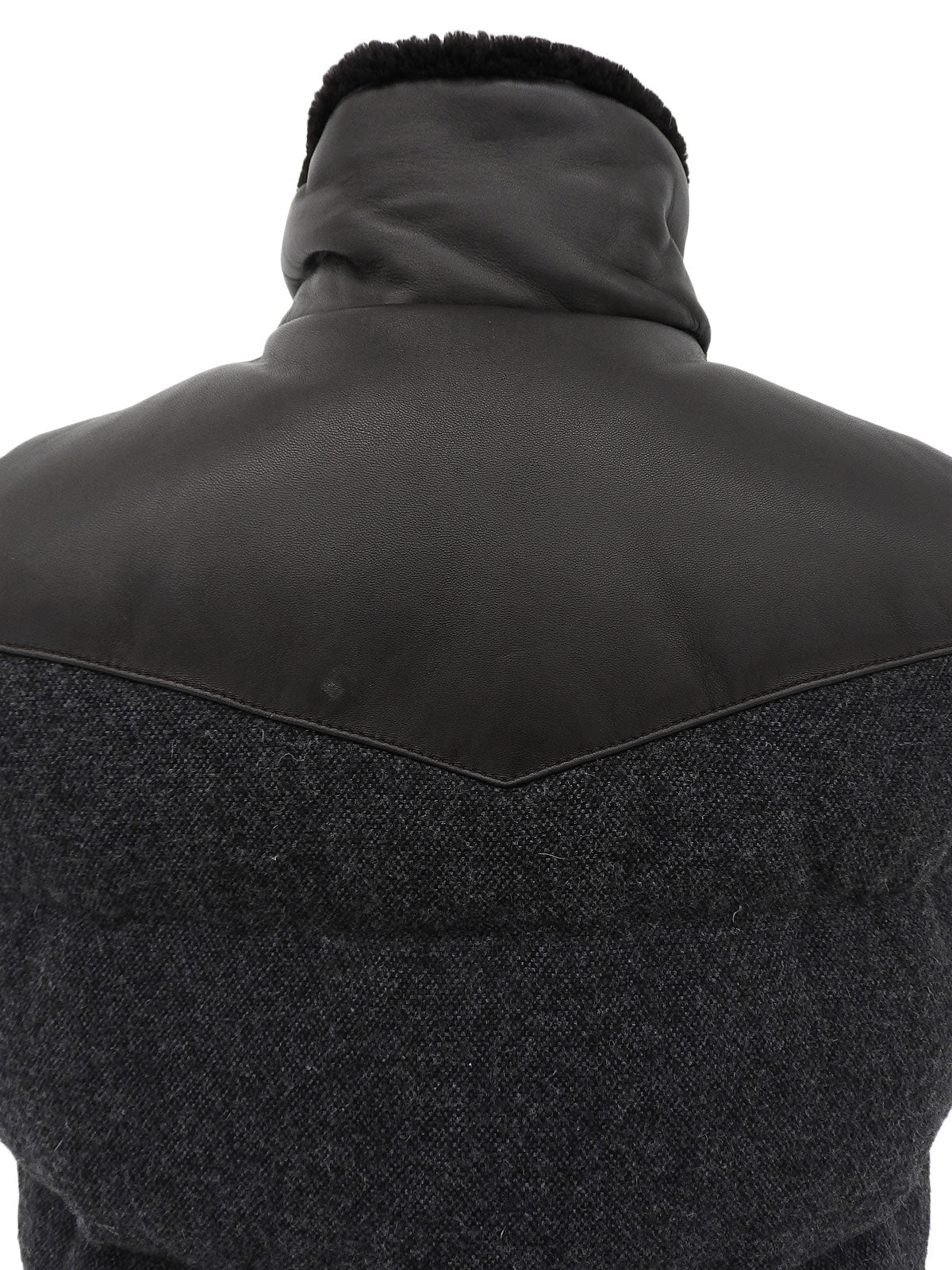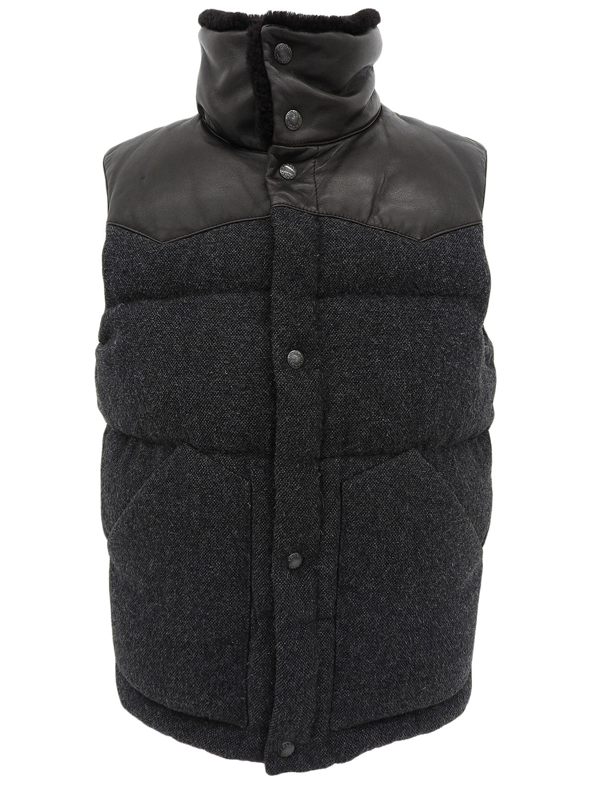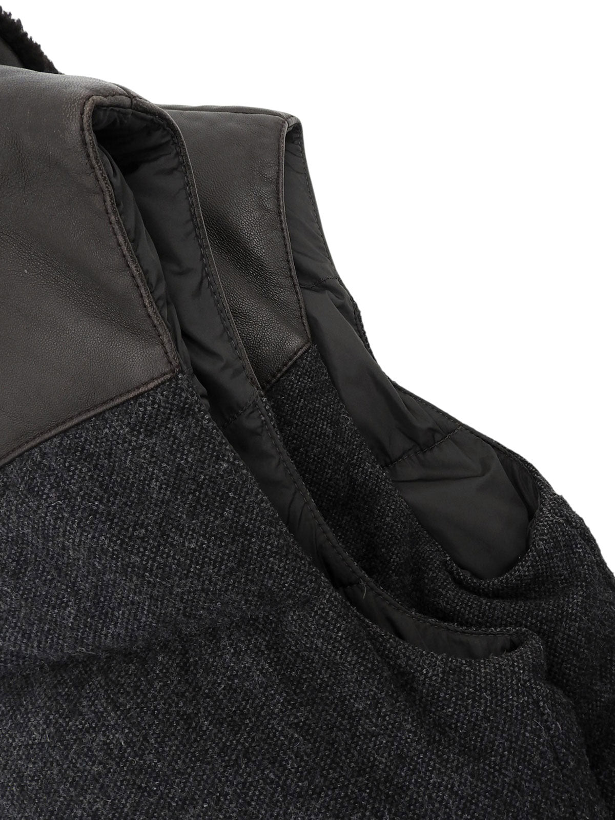 ツイードナイロンコンビダウンベスト グレー/ダークブラウン
