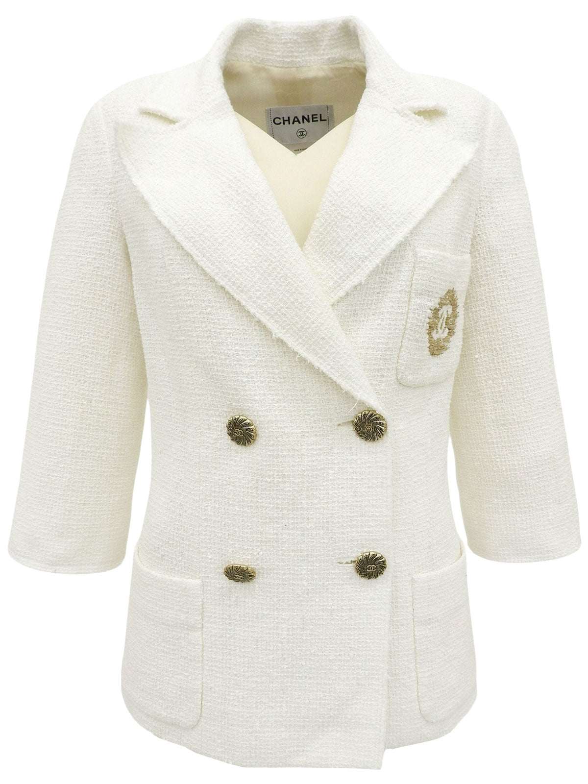ロゴ刺繍CCマークボタン七分袖ジャケット ホワイト