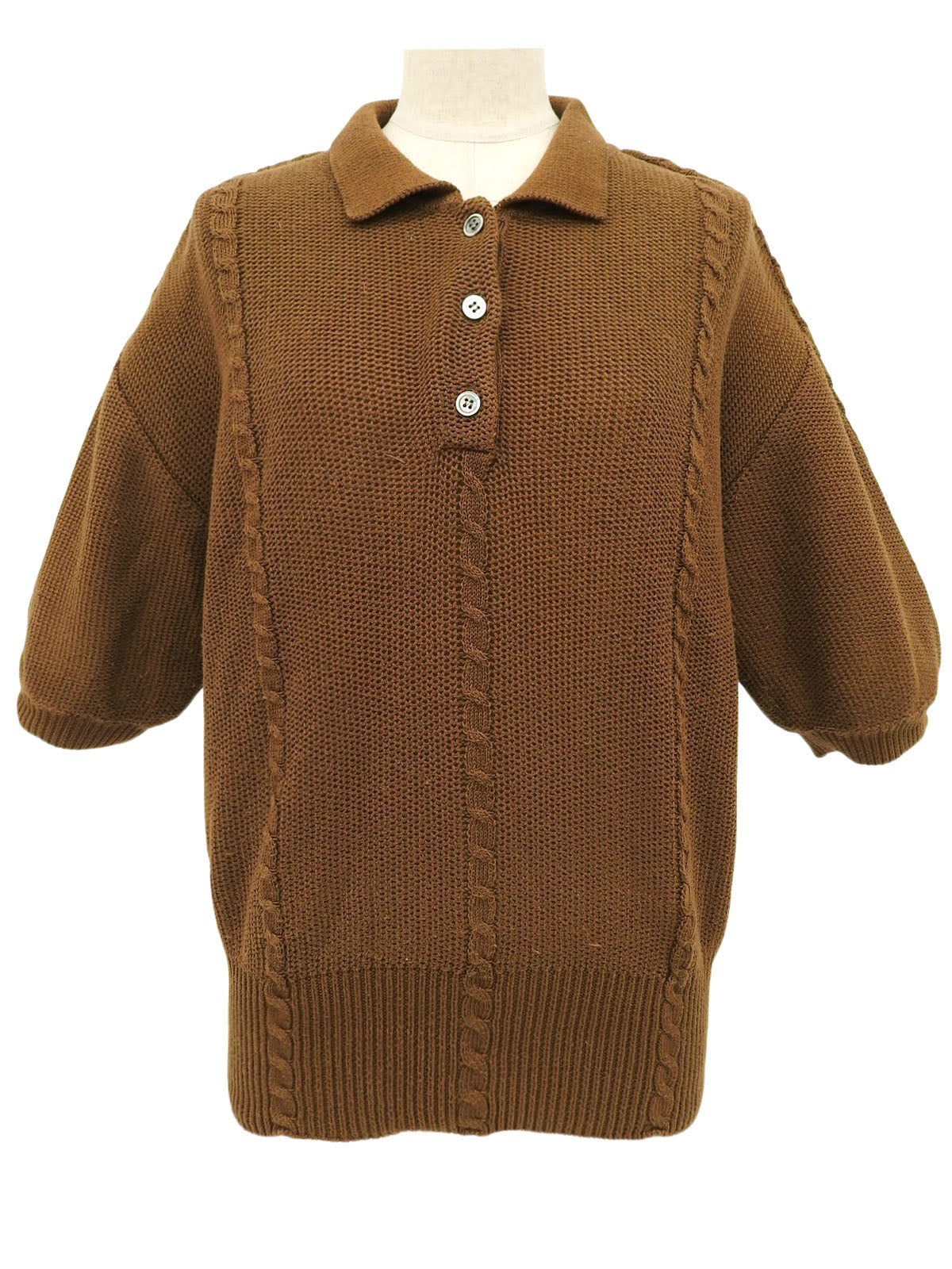 ハーフスリーブニットトップス ブラウン