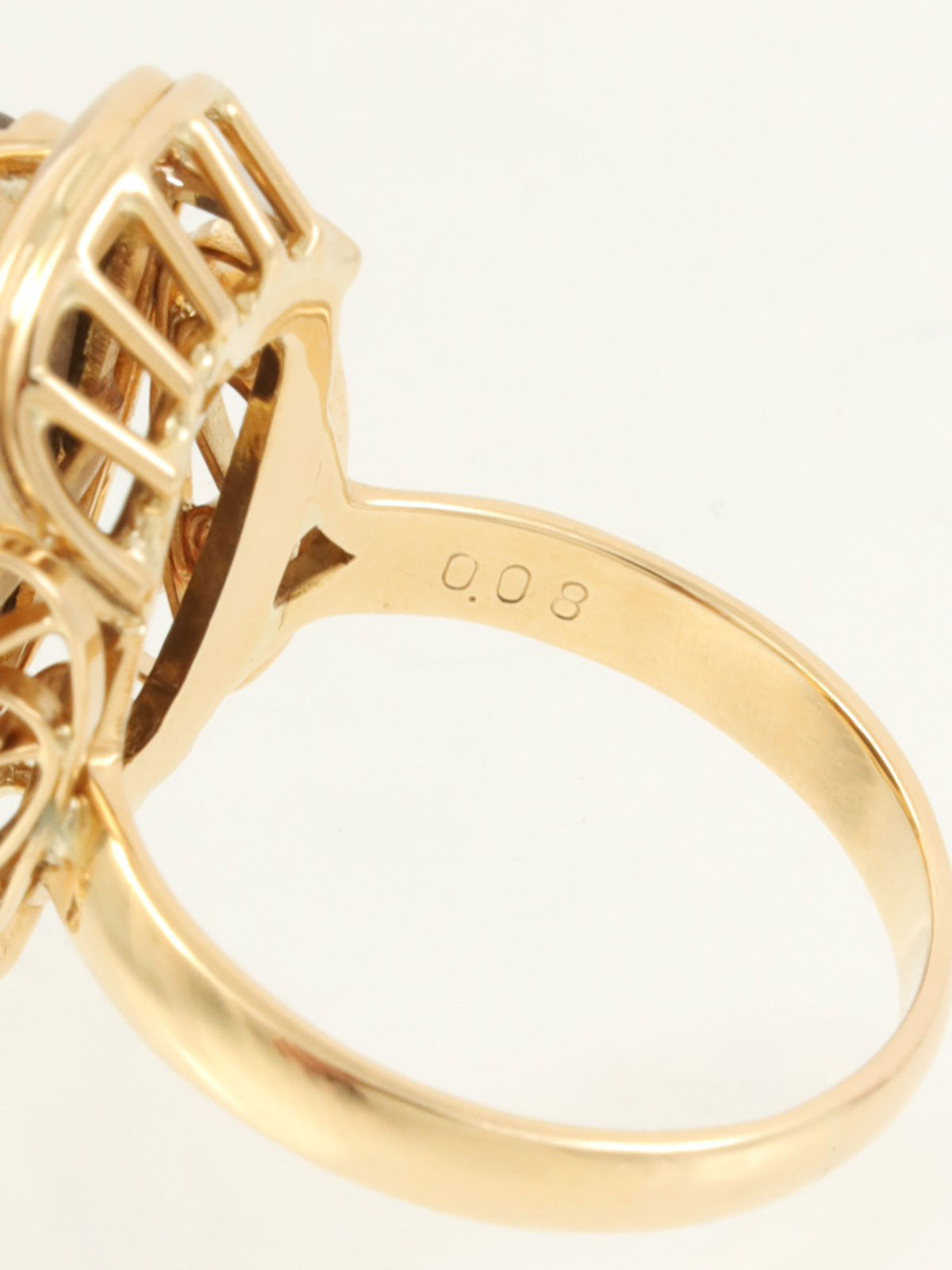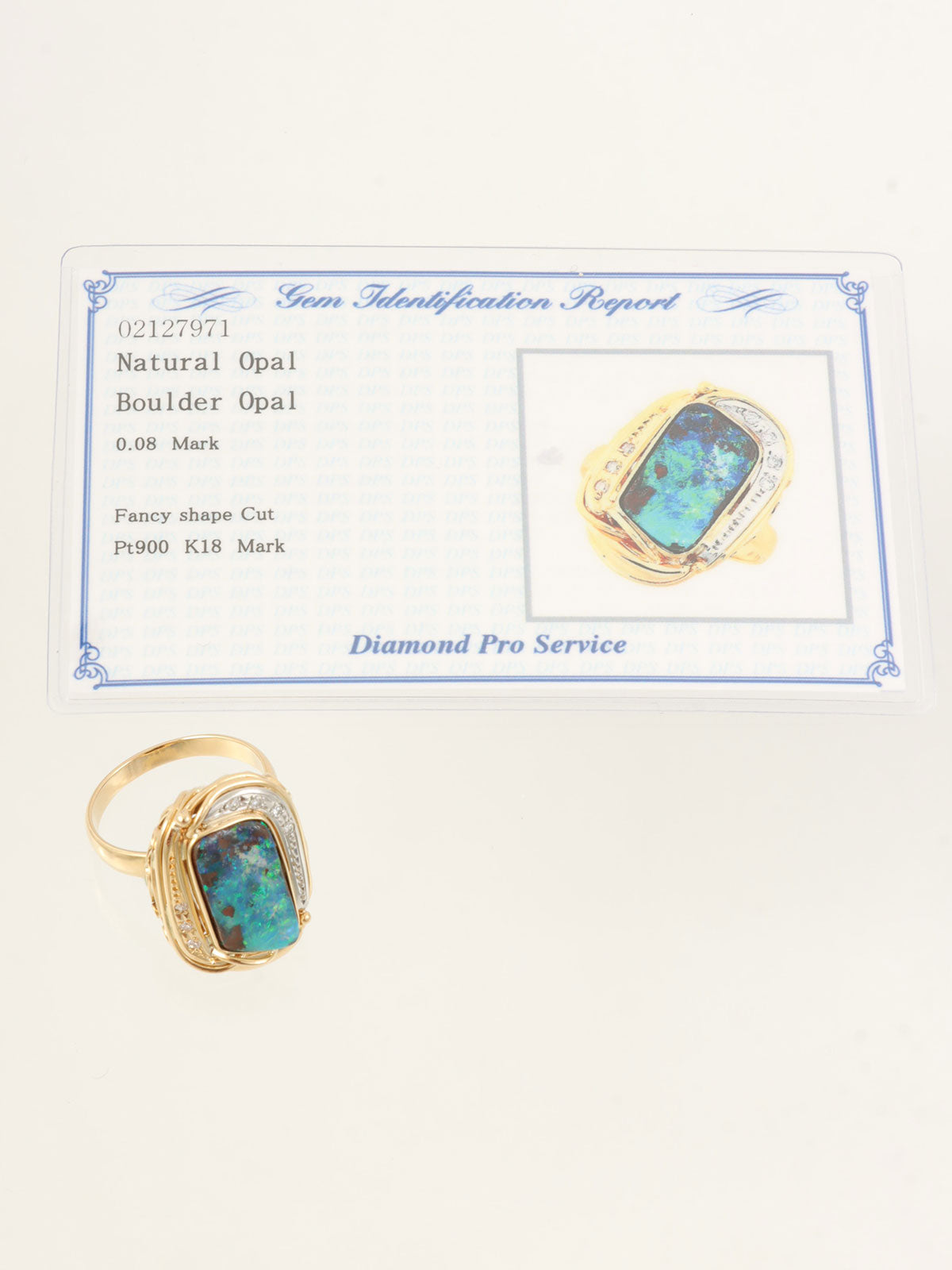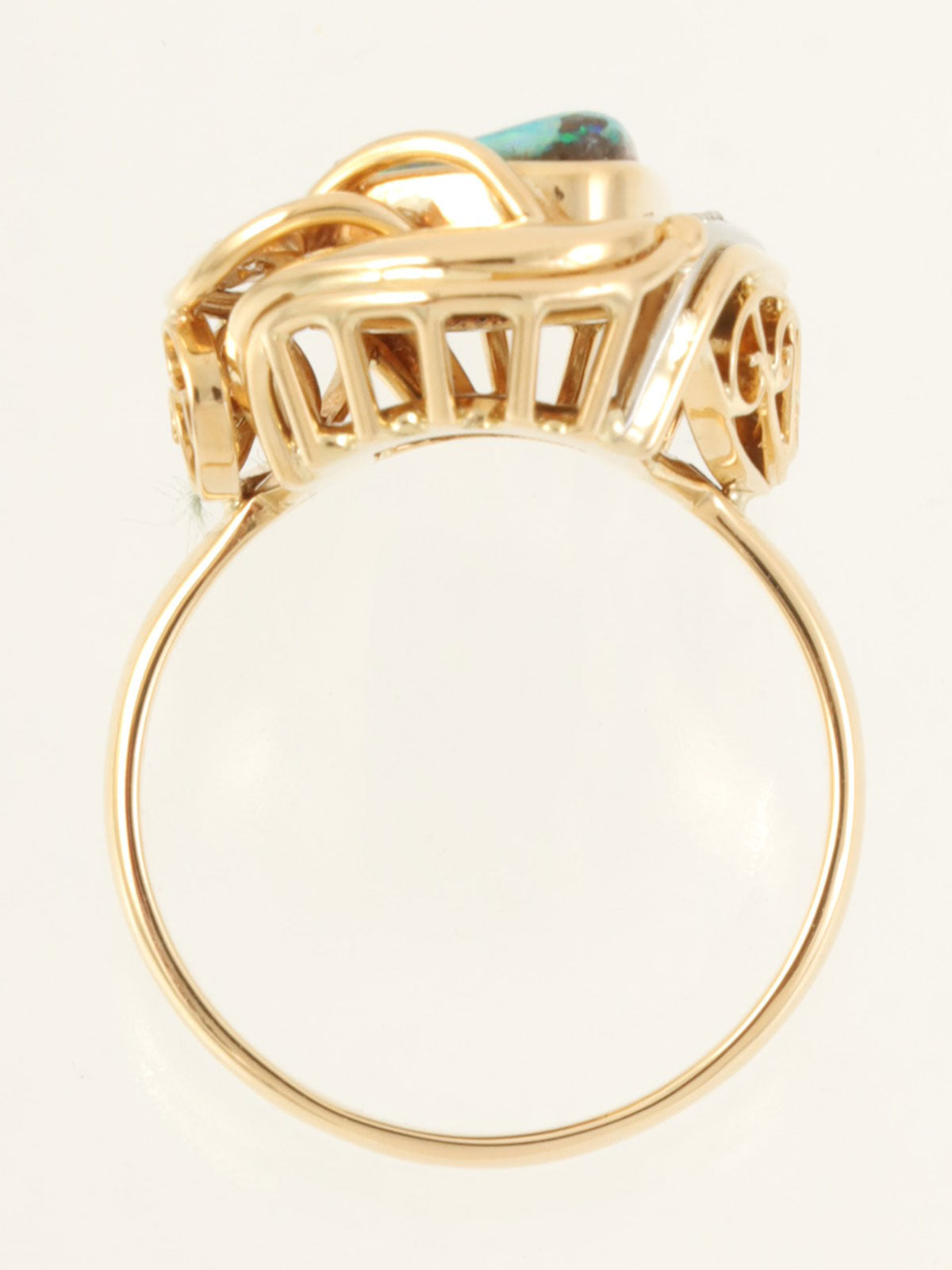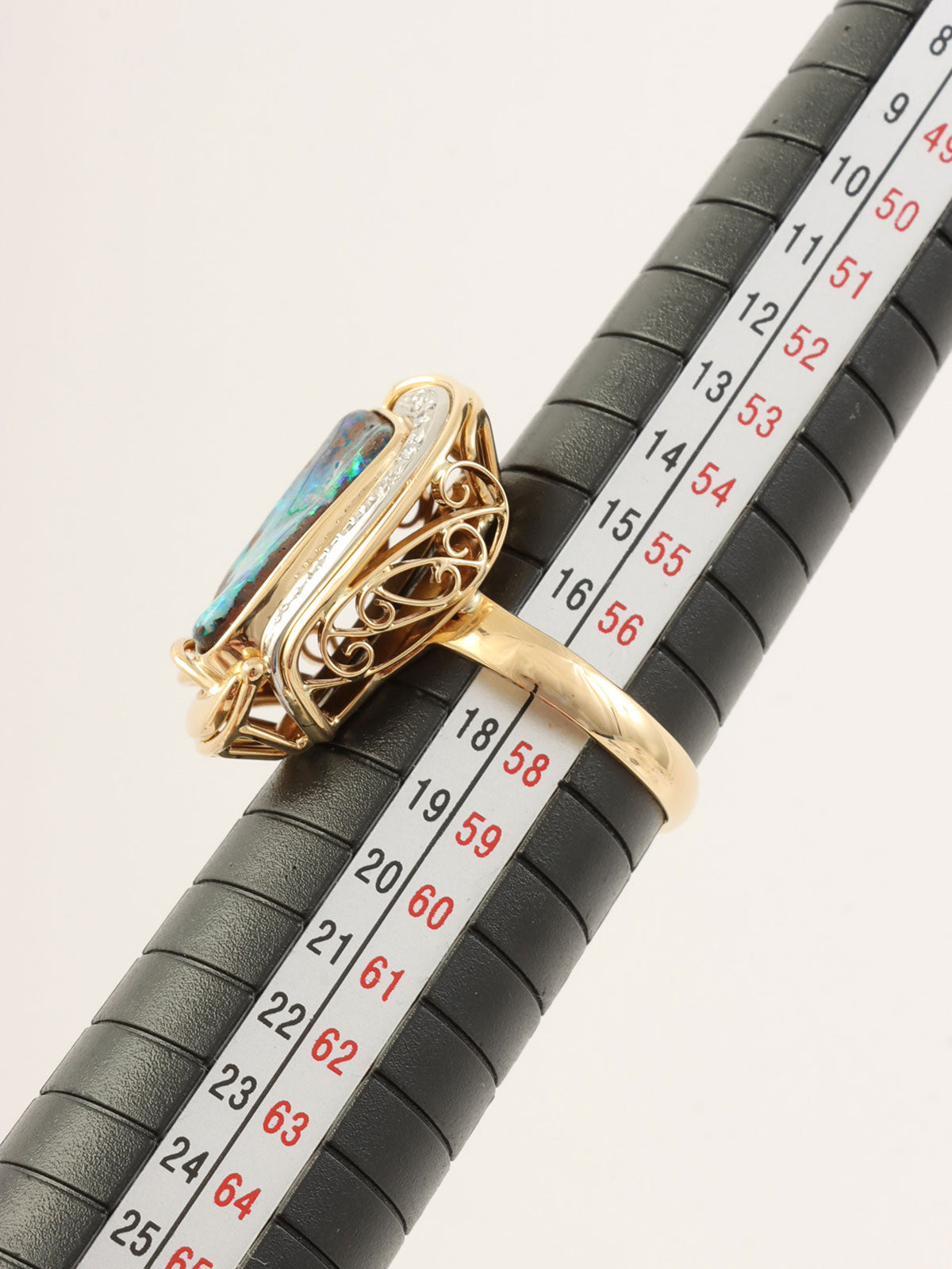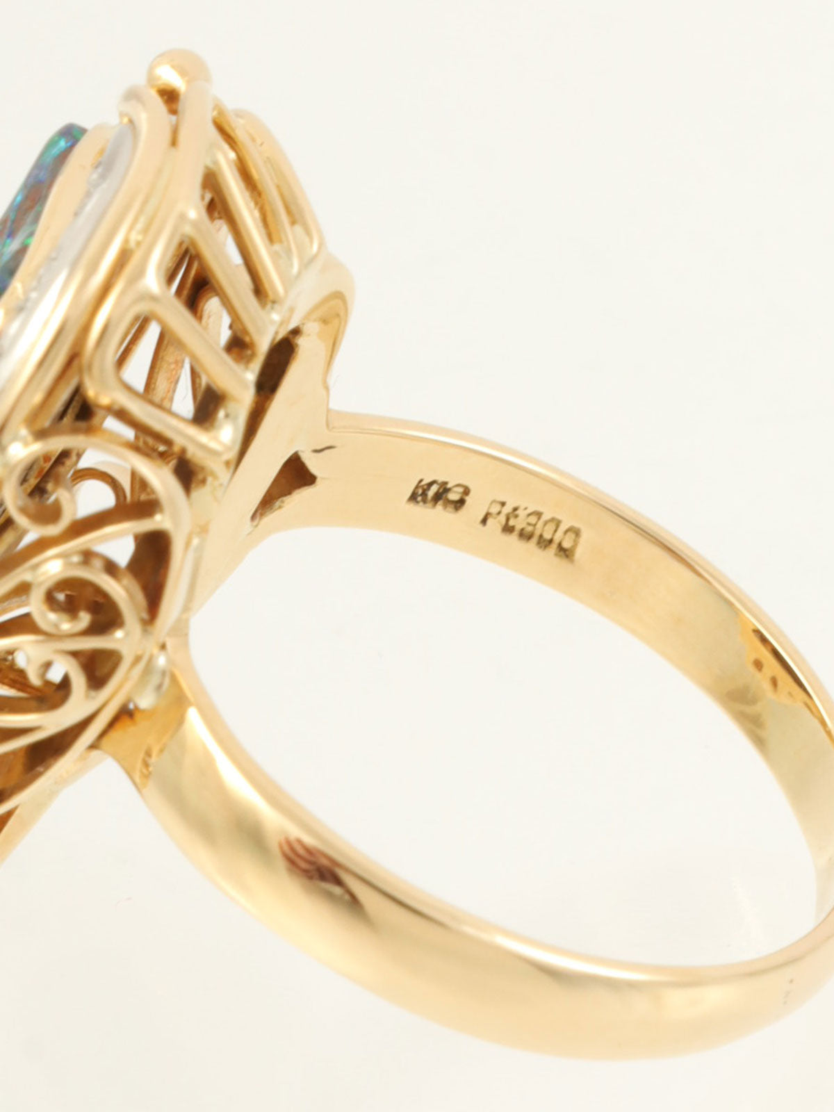 18Kダイヤモンドブラックオパールデザインリング ゴールド/グリーン