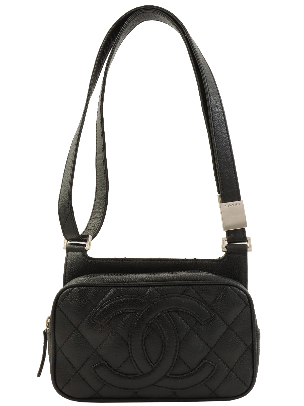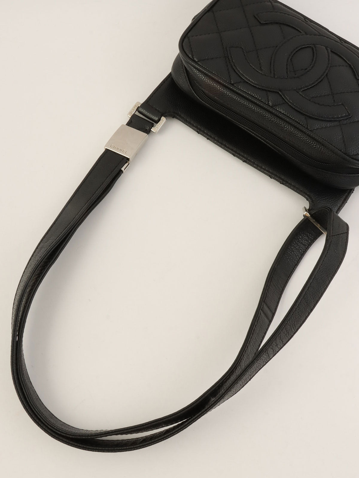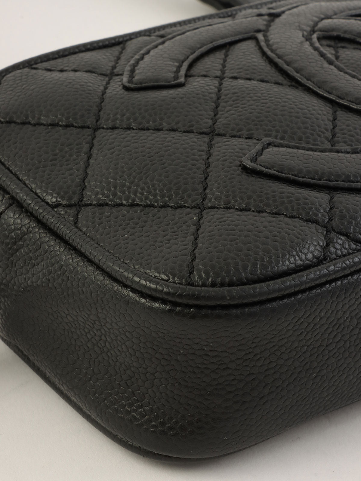 2005年頃製 キャビアスキンCCマークステッチショルダーバッグ ブラック