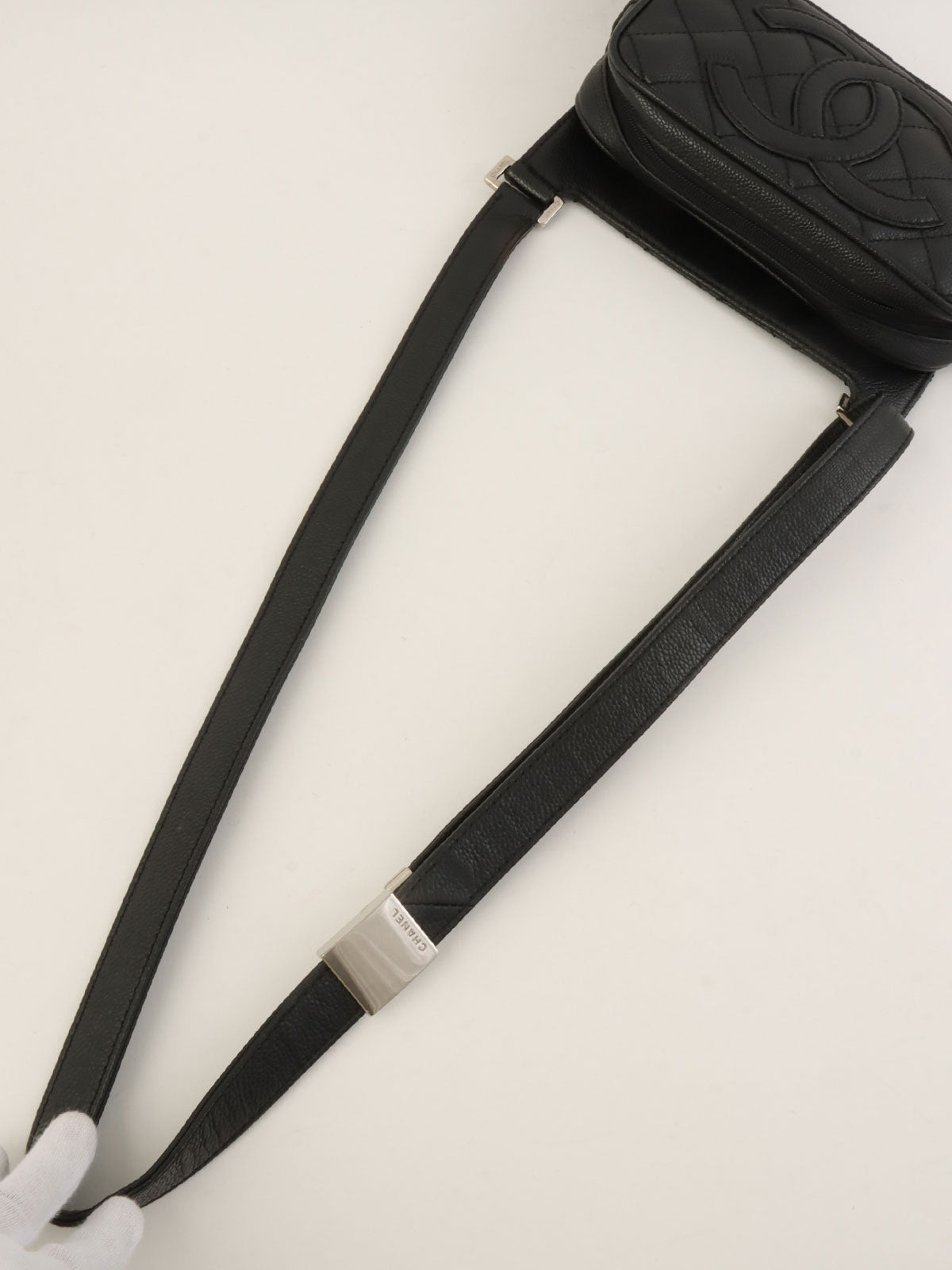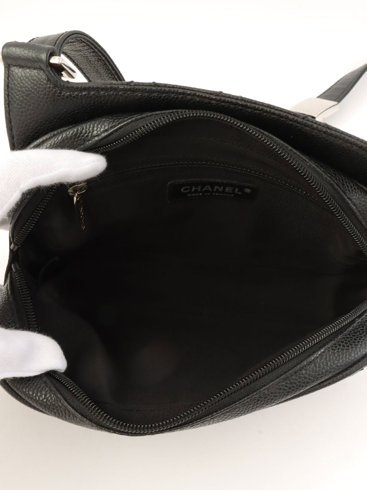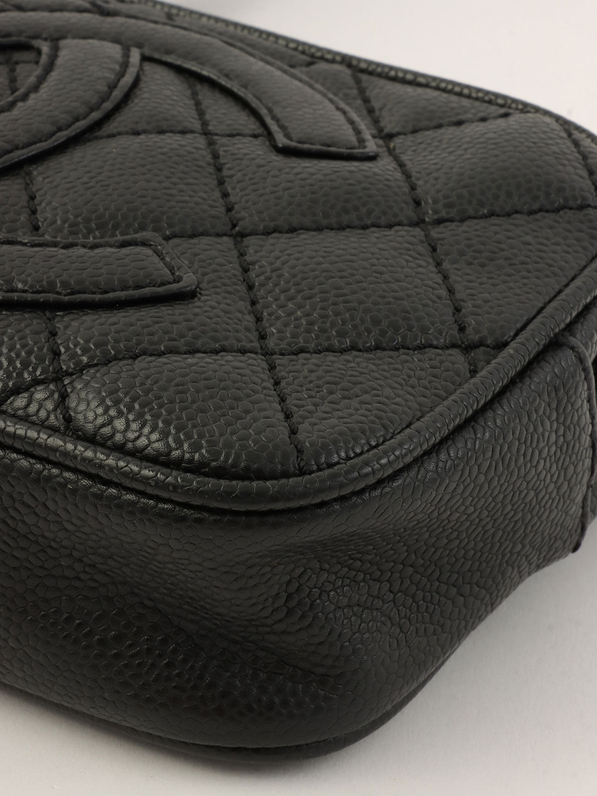 2005年頃製 キャビアスキンCCマークステッチショルダーバッグ ブラック