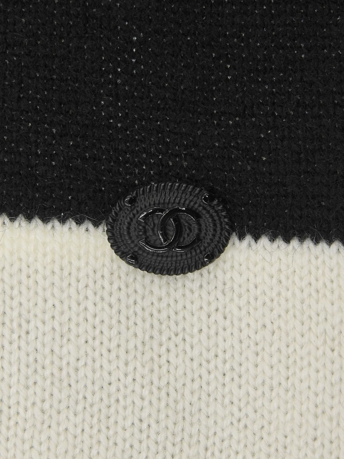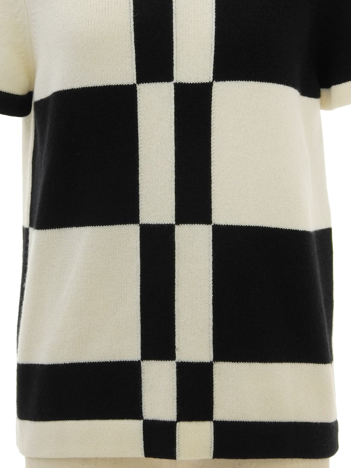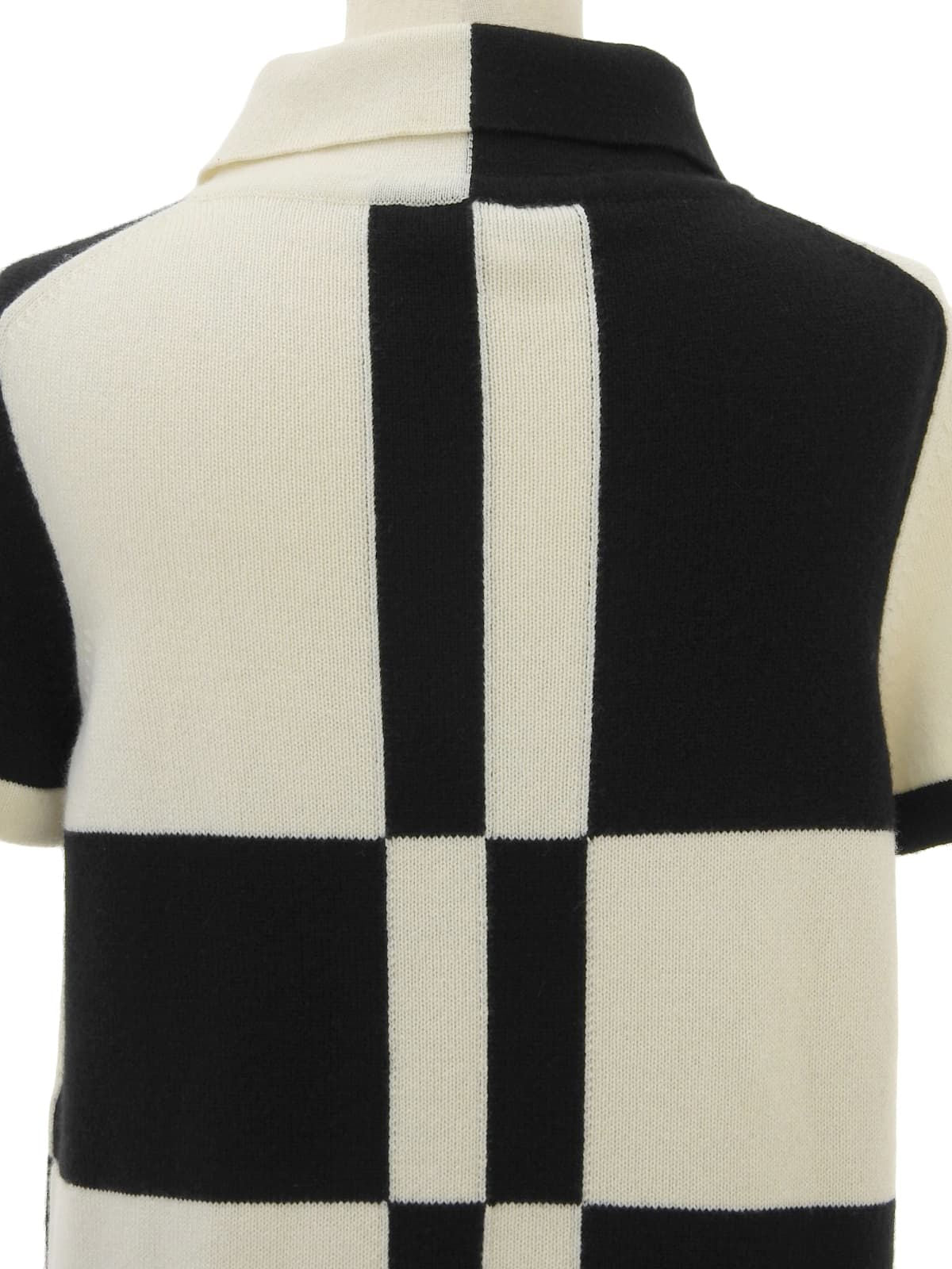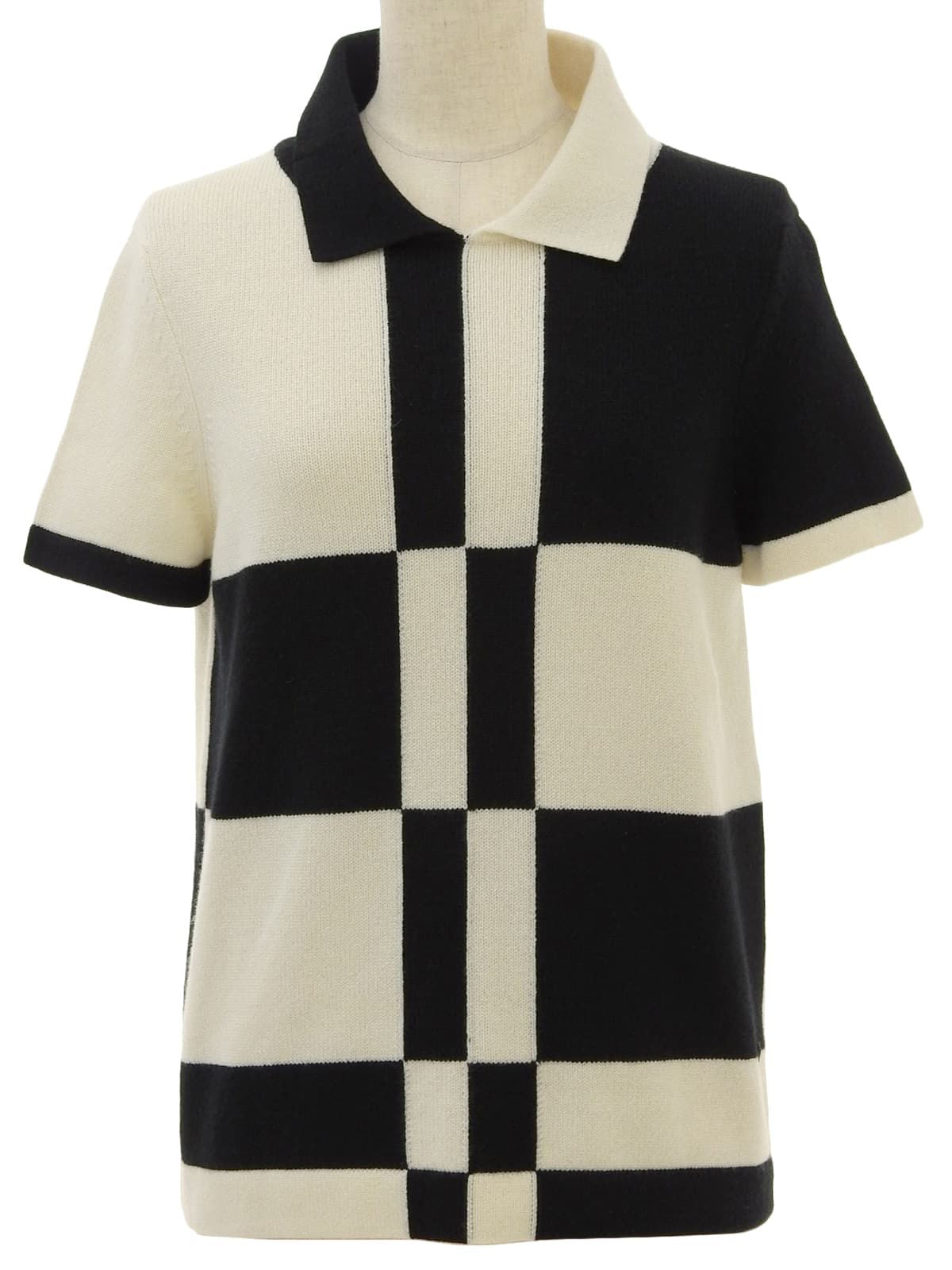 カシミアCCマークオーバルプレート半袖ニット ブラック/ホワイト