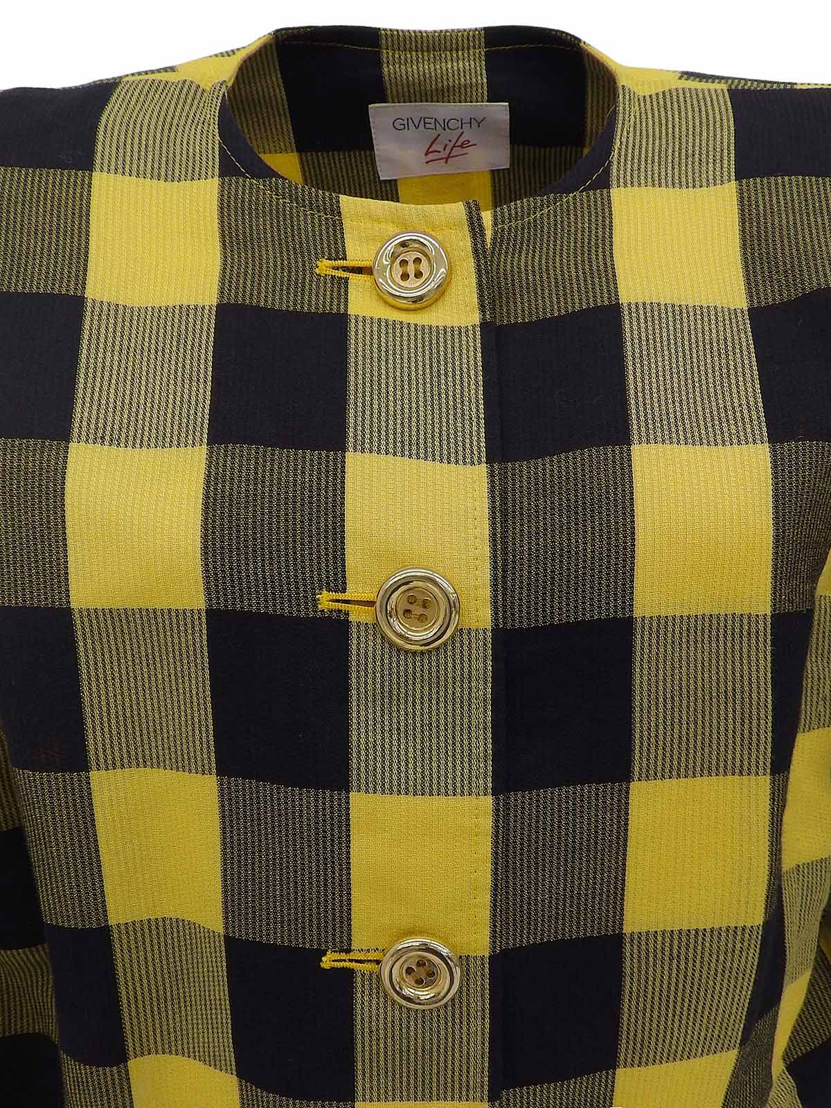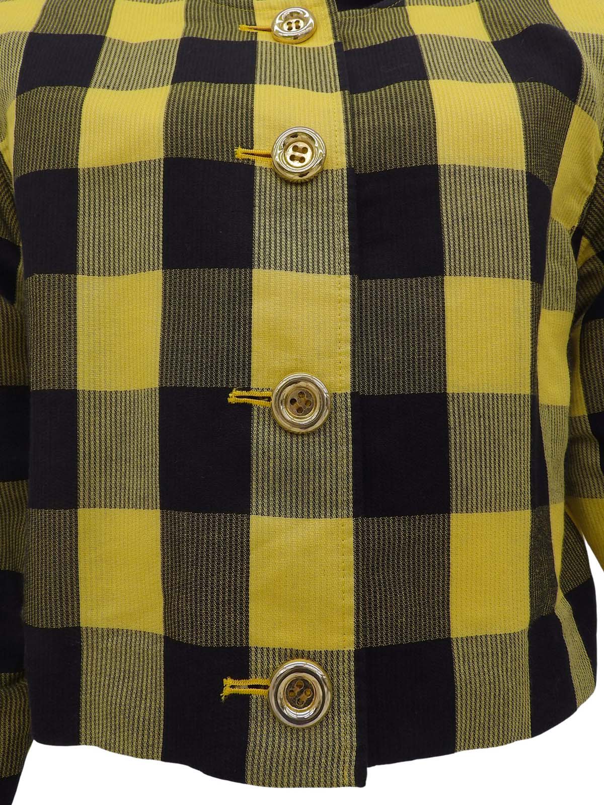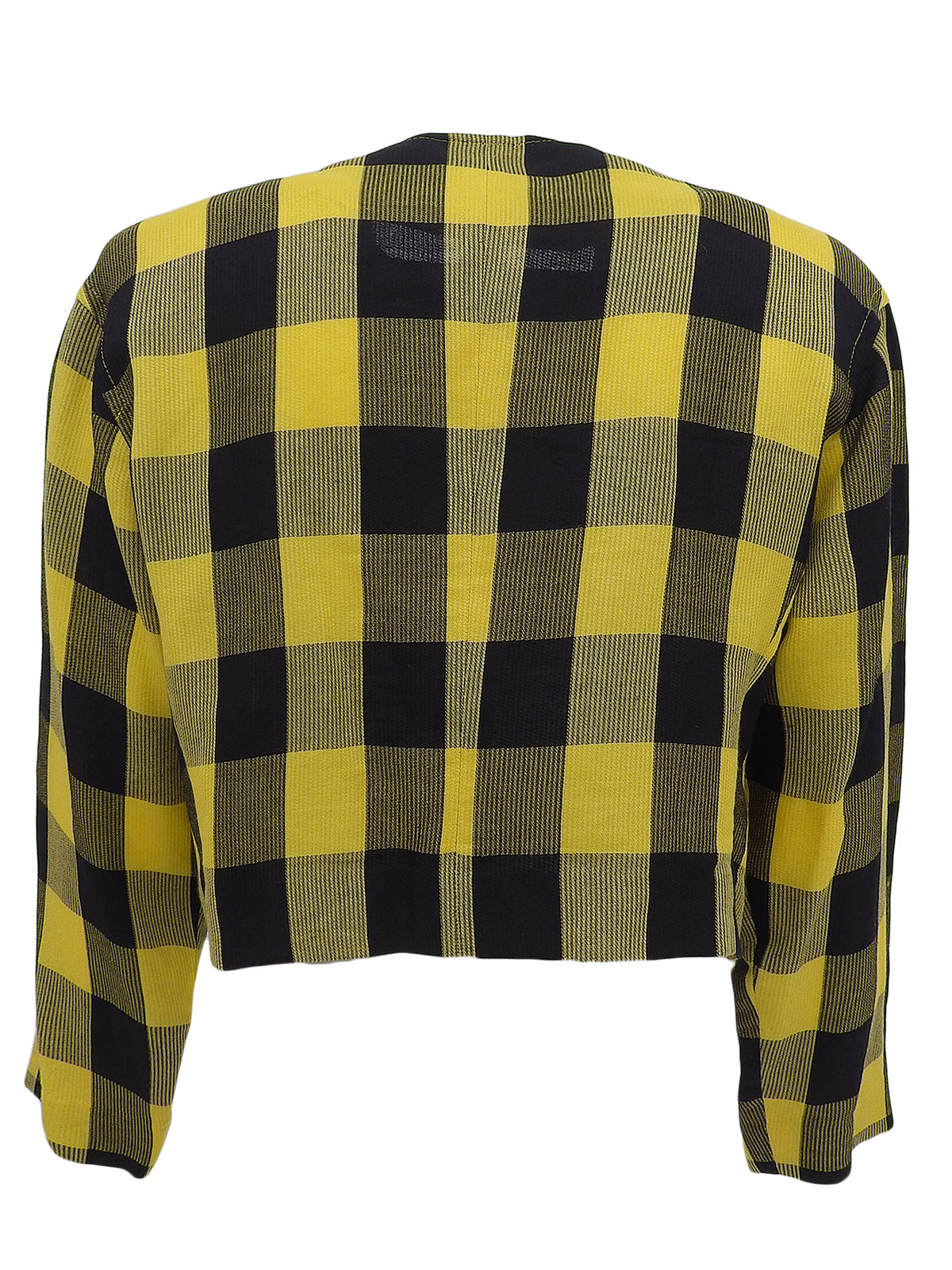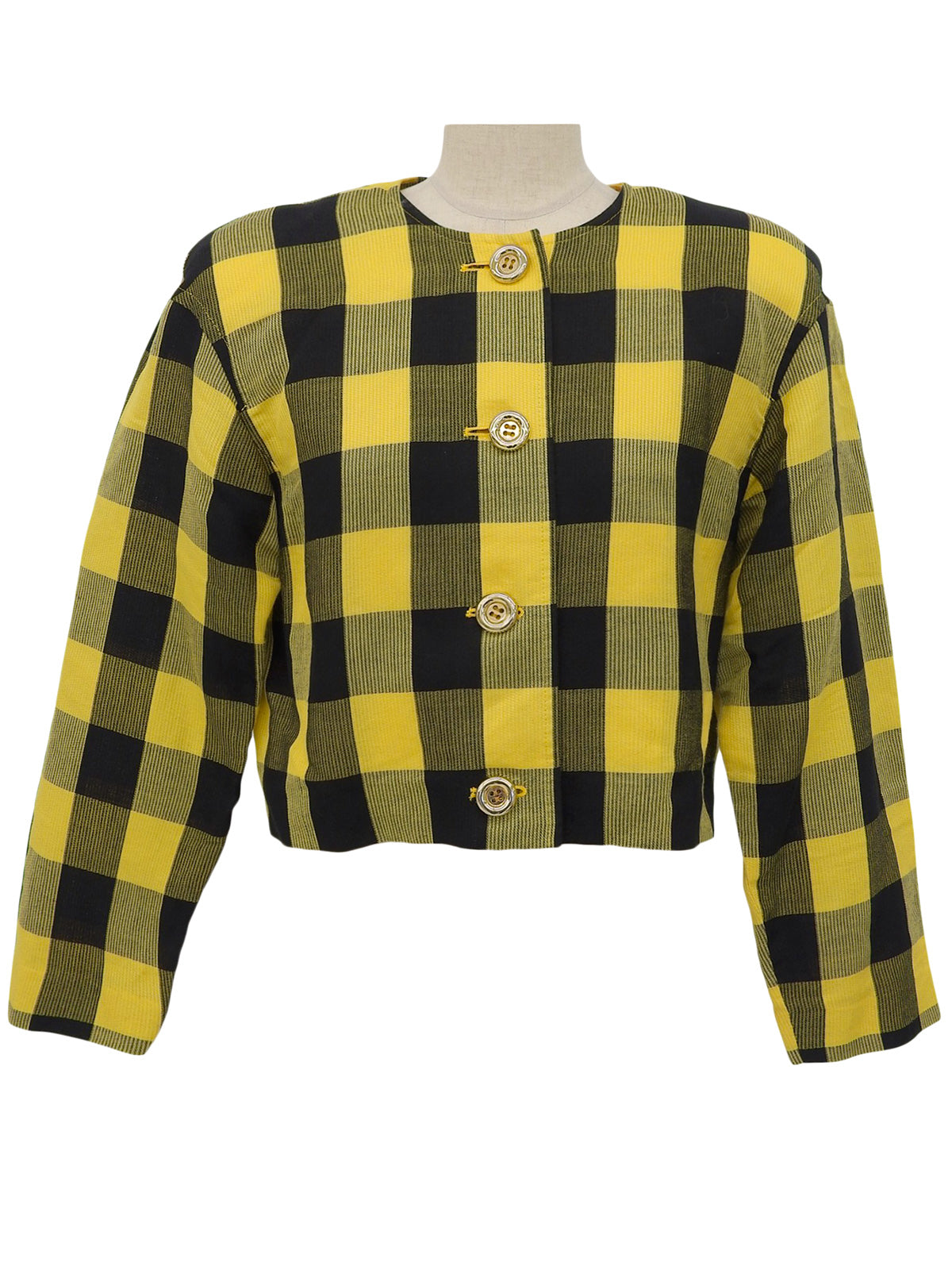 リネンブロックチェックパターンショートジャケット イエロー/ブラック