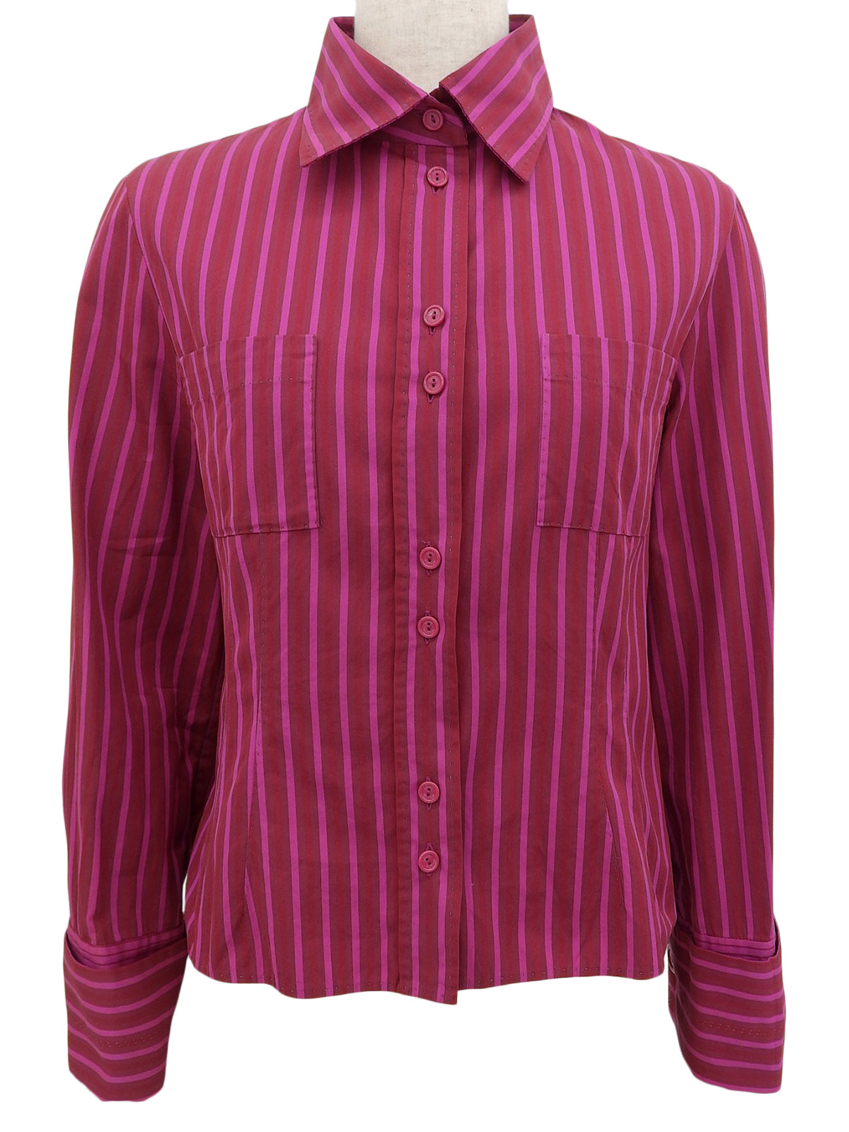 ストライプパターン長袖シャツ ピンク