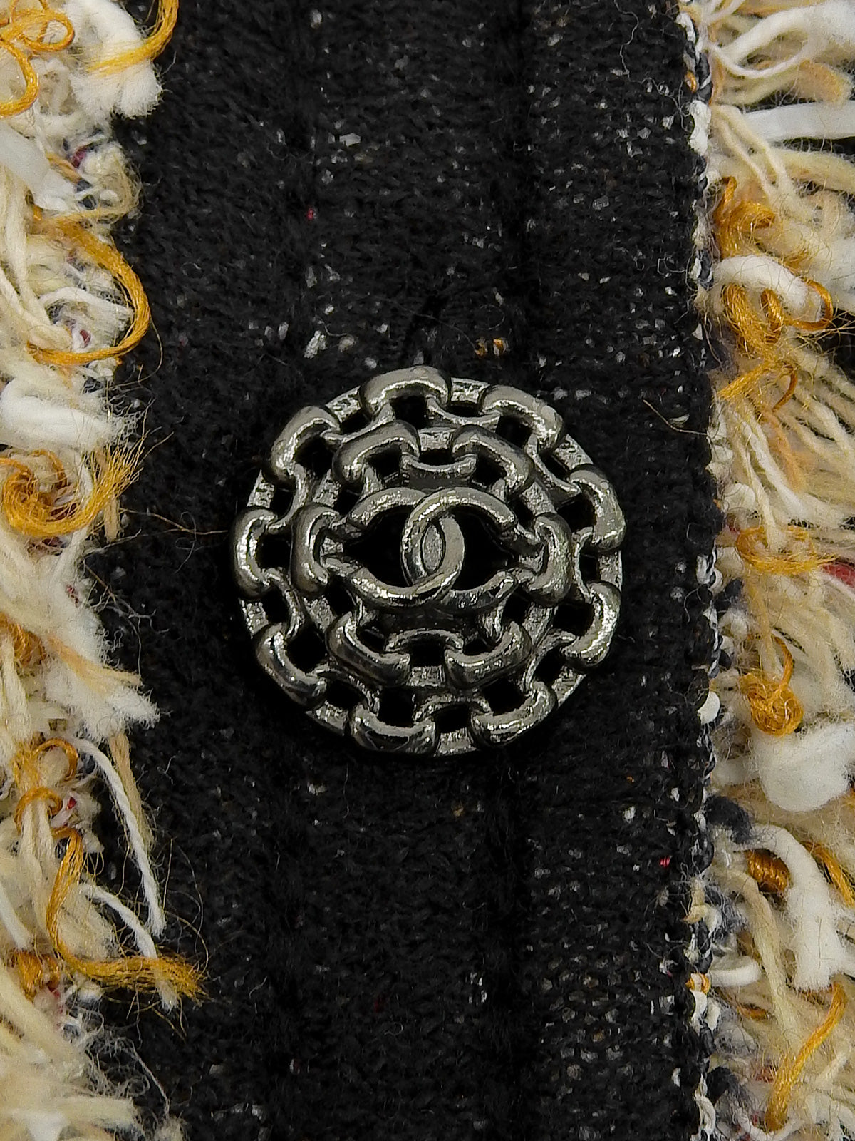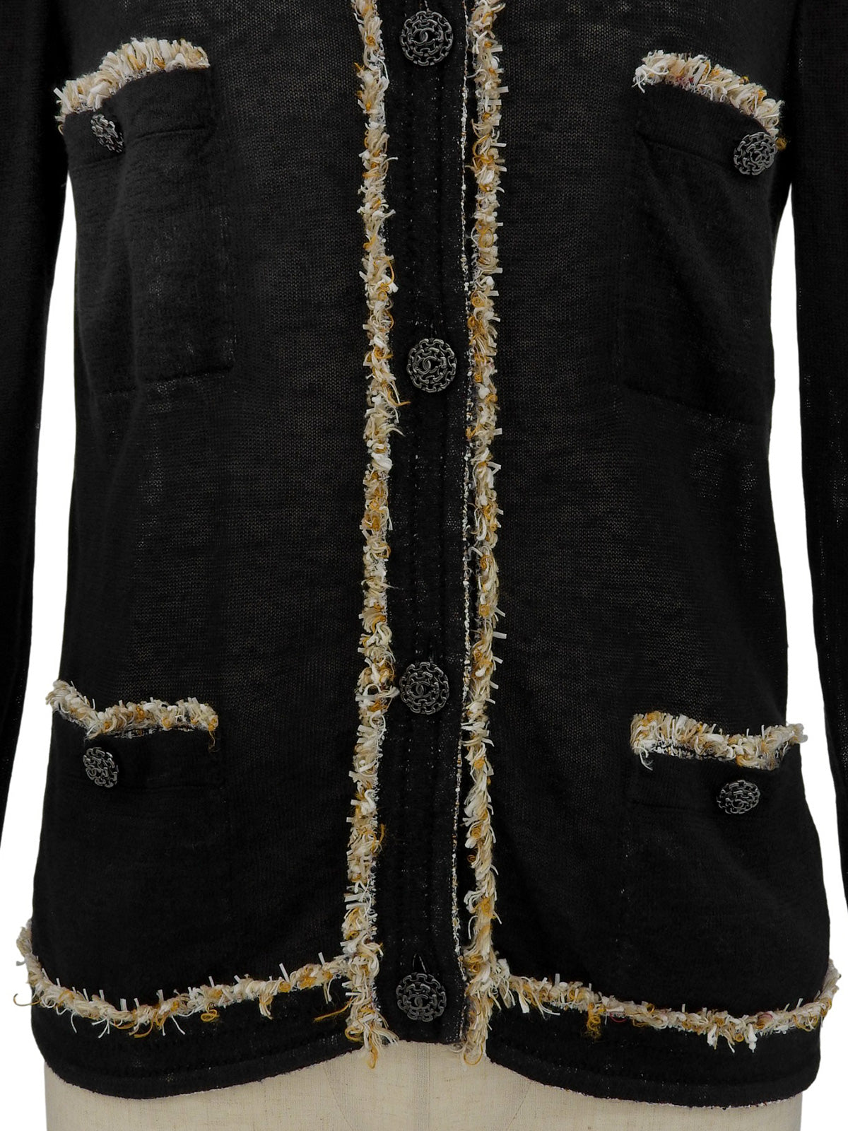 CCマークチェーンボタンデザインカーディガン ブラック/ベージュ