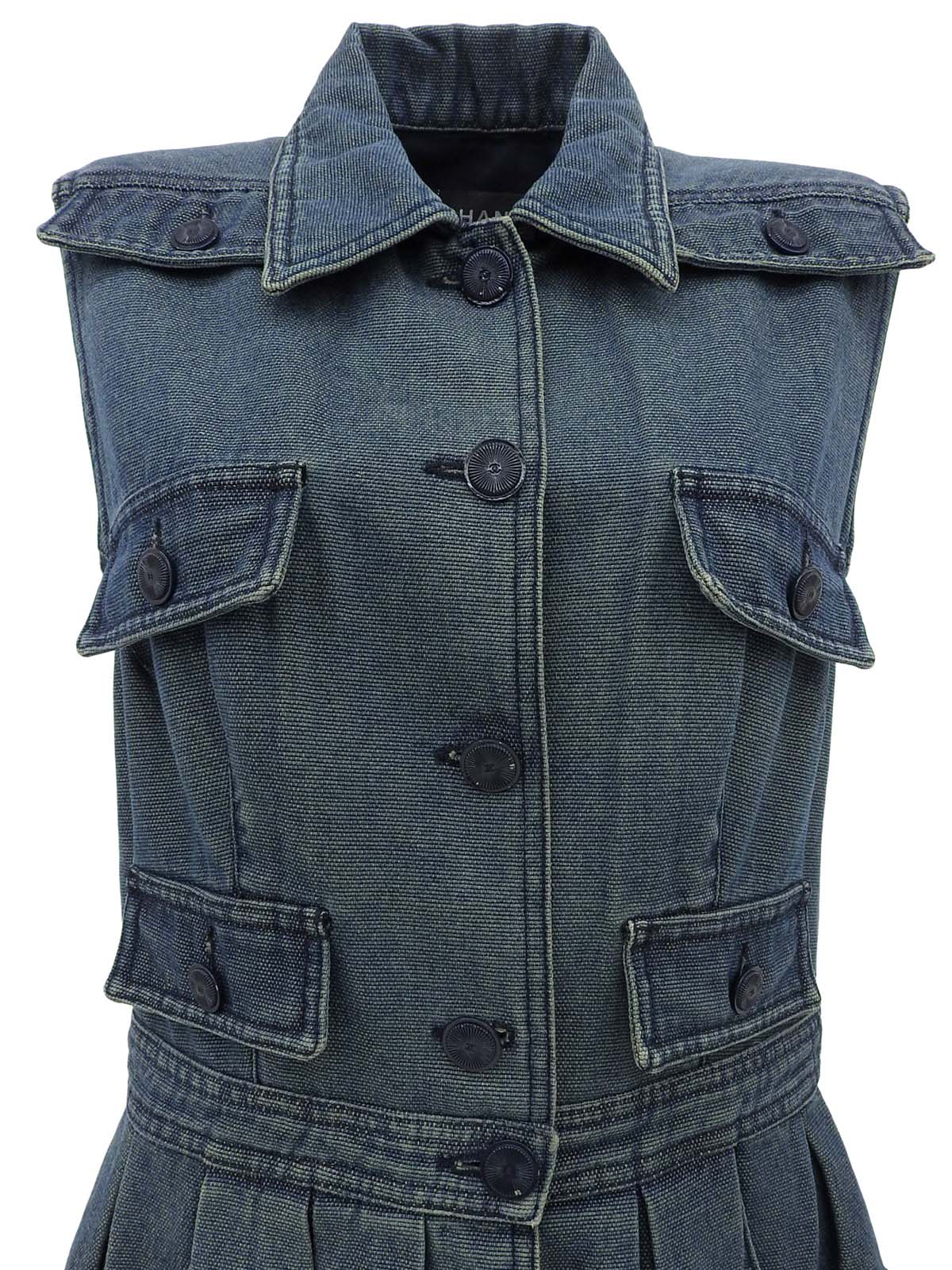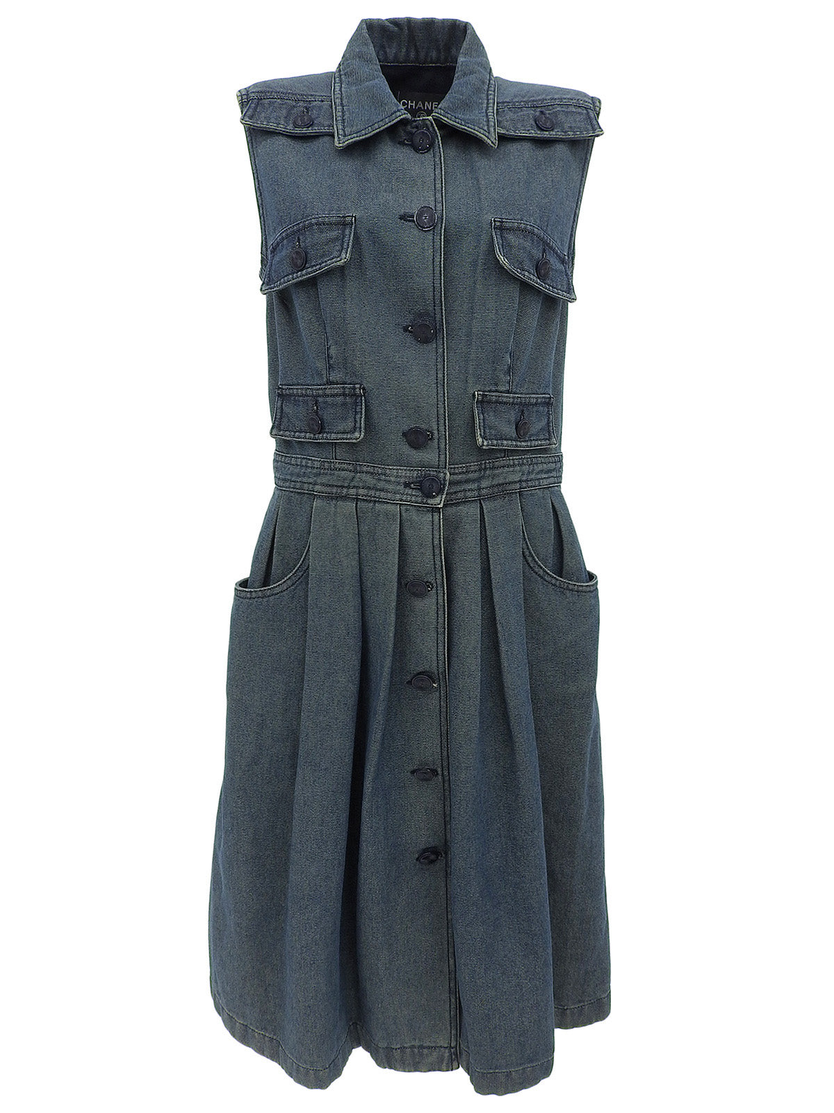 2001年製 デニムCCマークボタンノースリーブワンピース ブルー