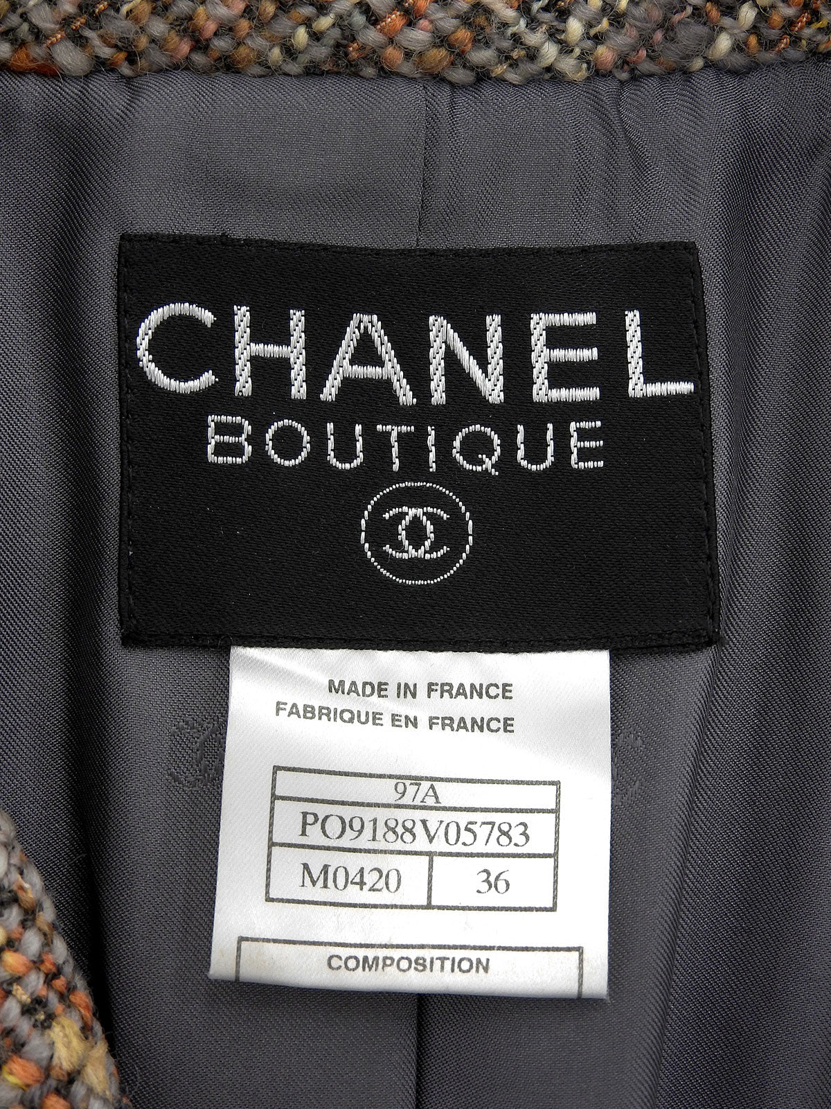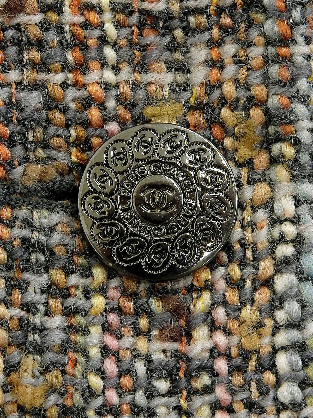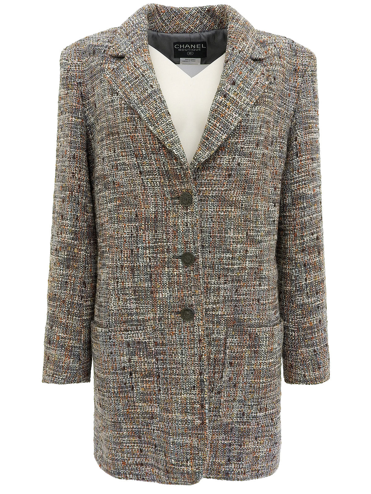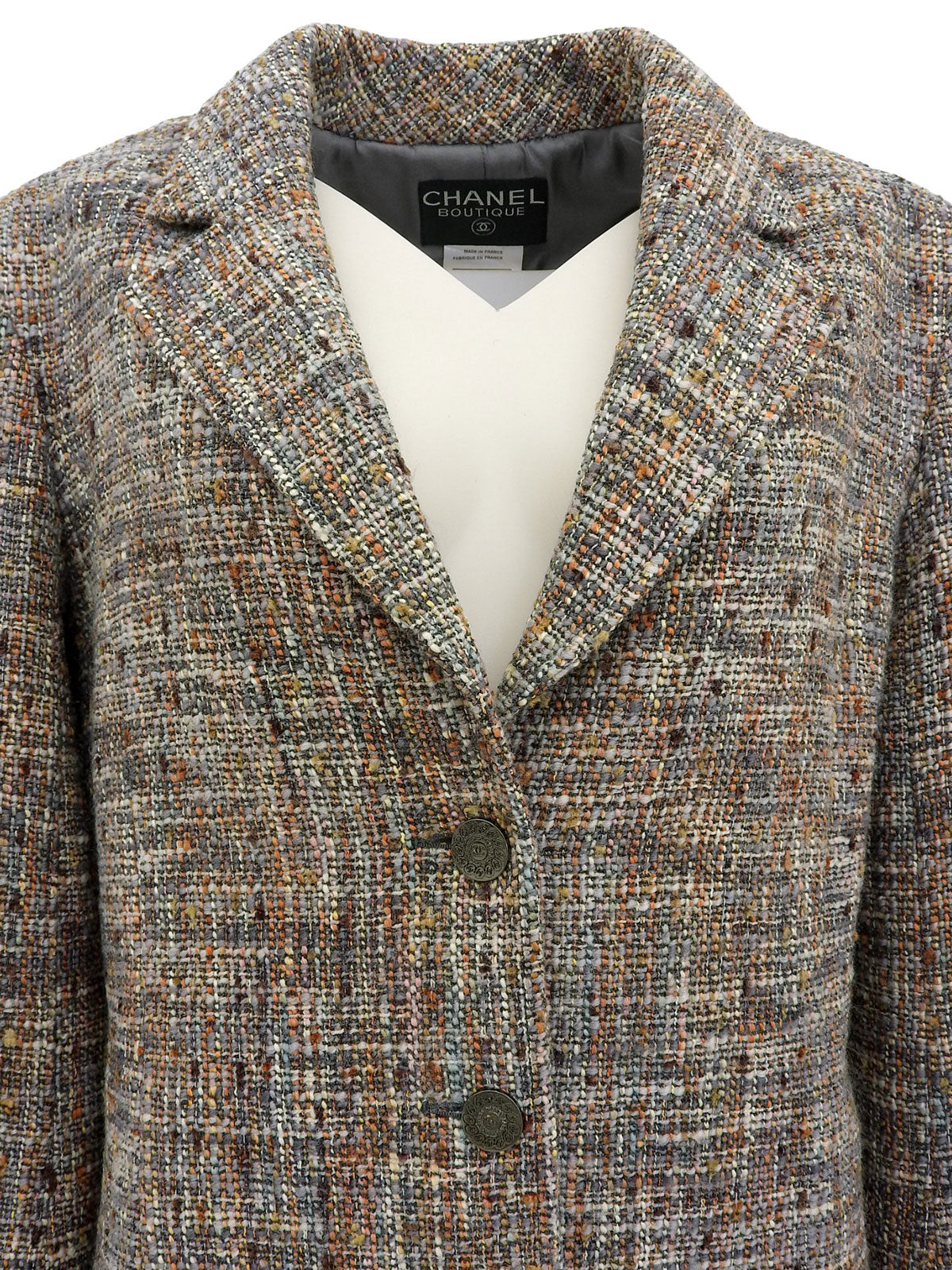 1997年頃製 ツイードCCマークボタンロングジャケット グレー/マルチ