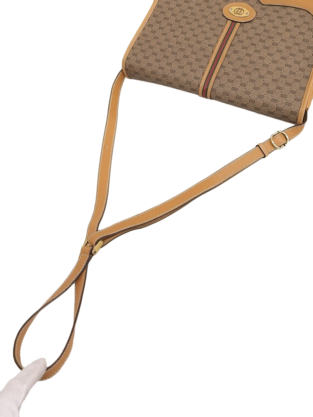 キャンバスGGパターンシェリーラインフラップショルダーバッグ ベージュ