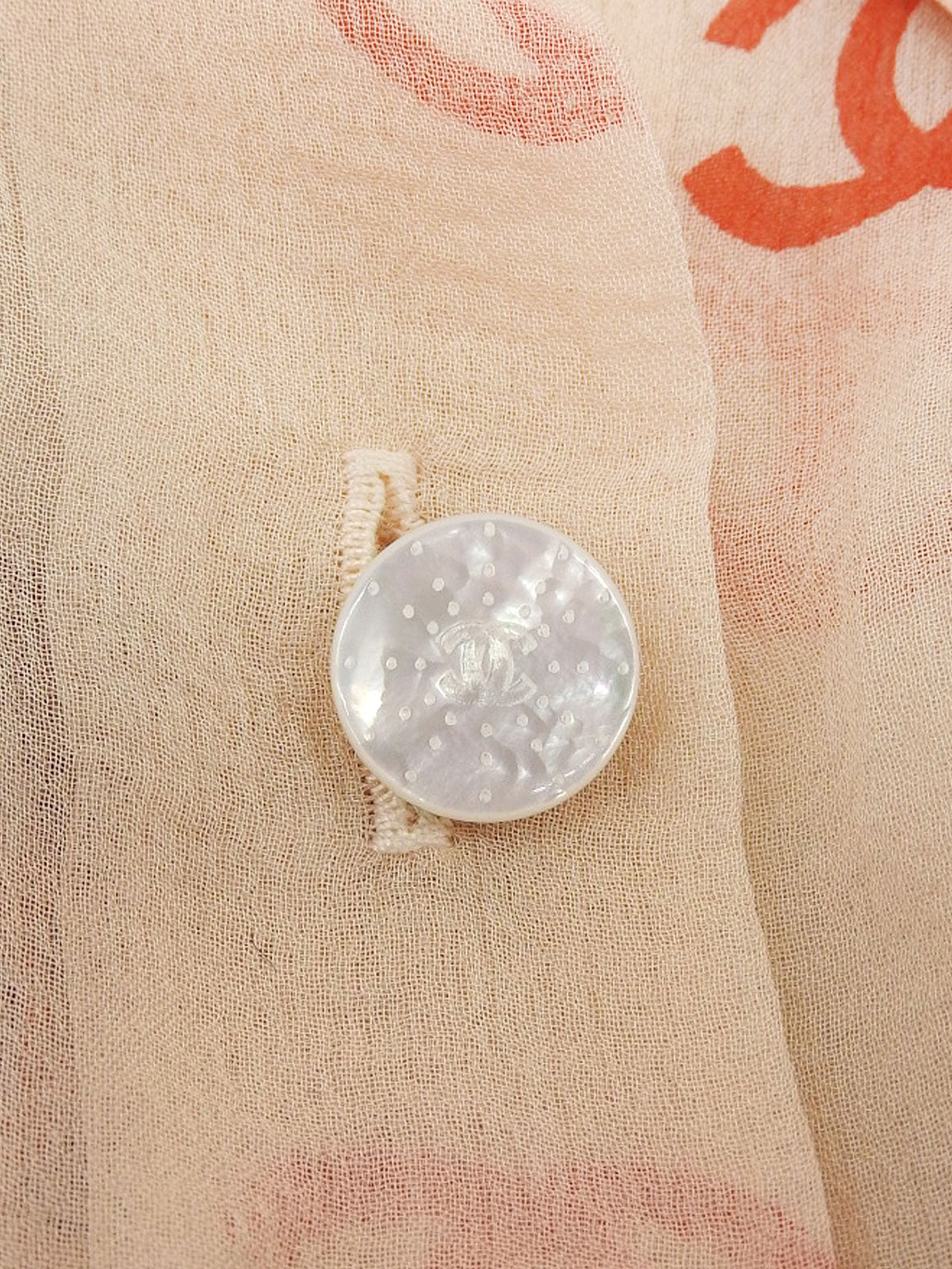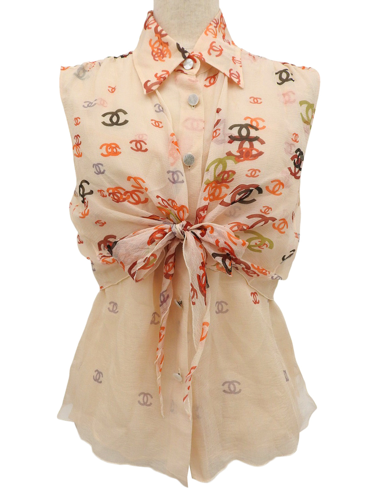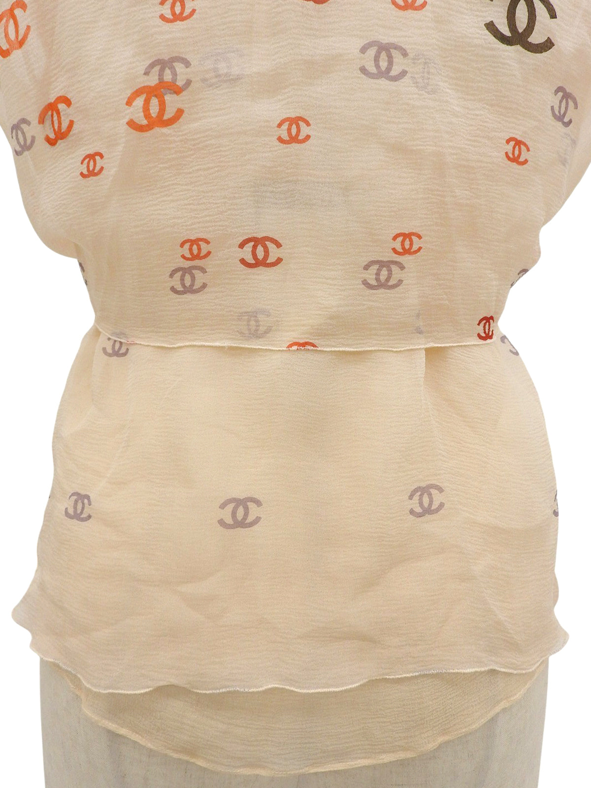 2001年製 シルクCCマークパターンシースルーノースリーブブラウス オレンジ/ベージュ