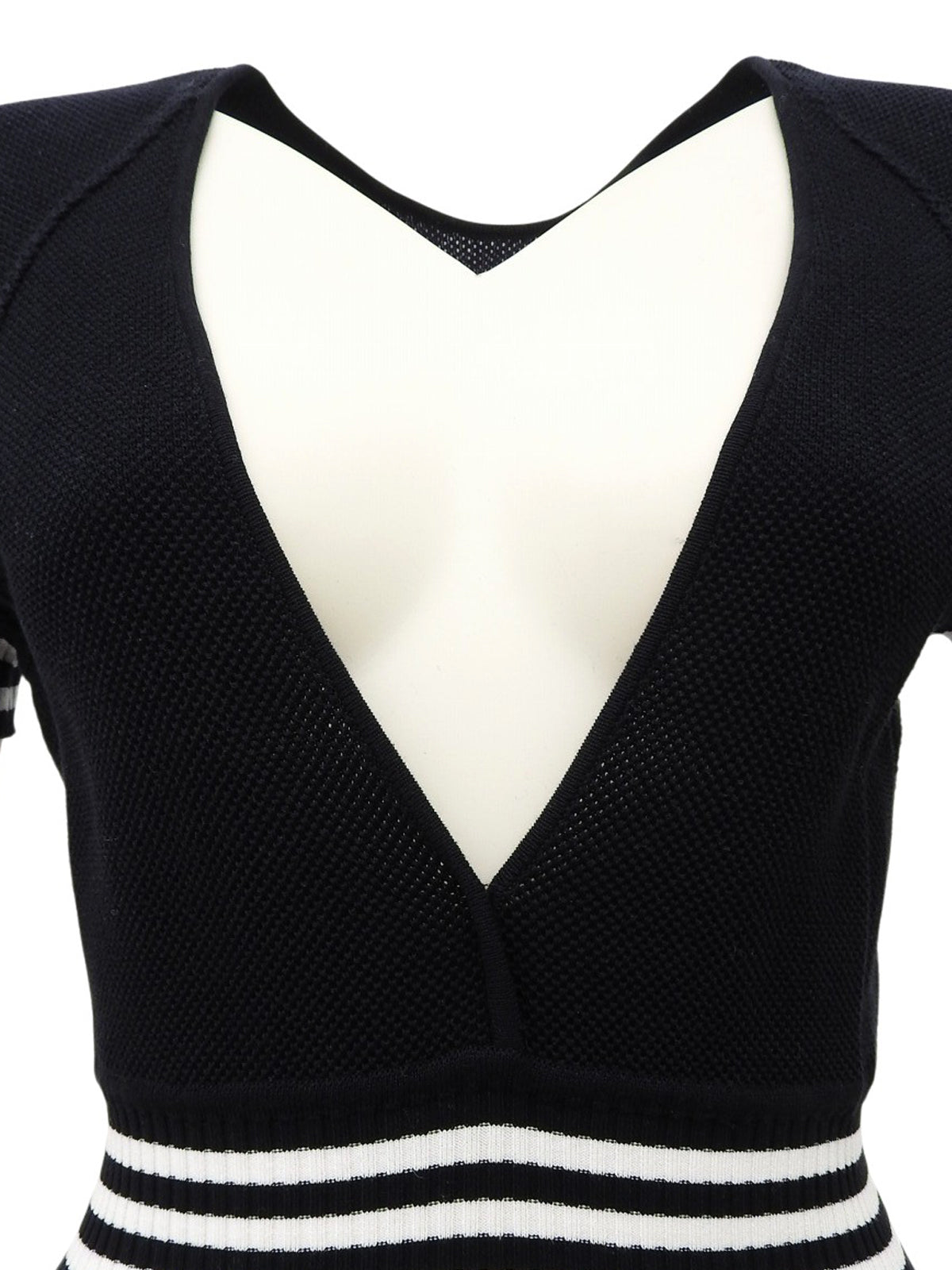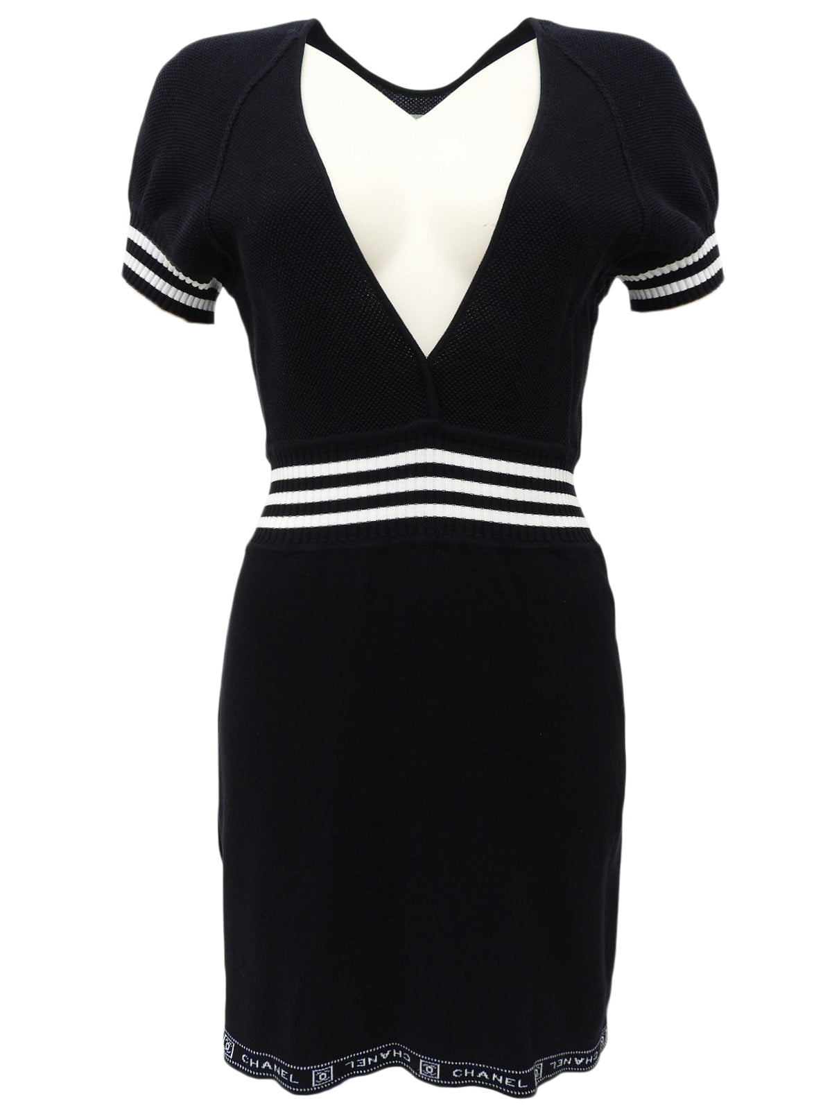 2004年製 スポーツラインロゴCCマークVネック半袖ワンピース ブラック
