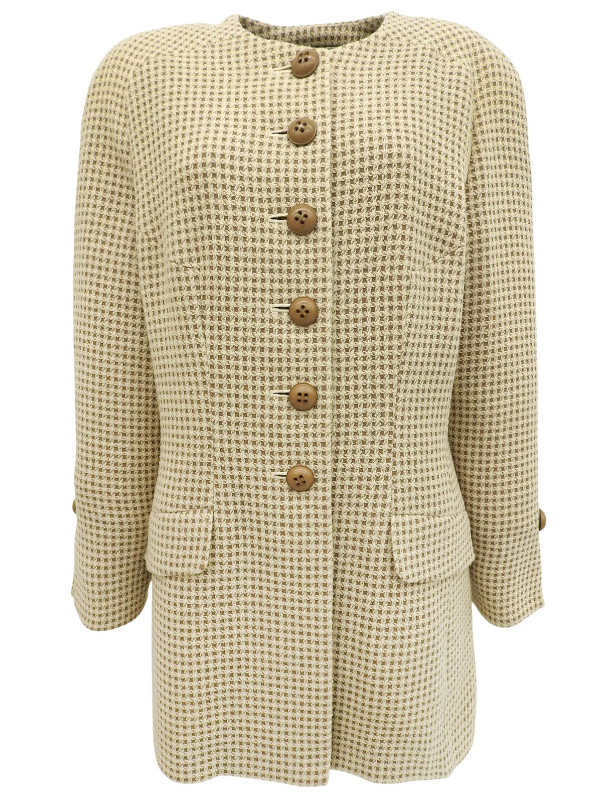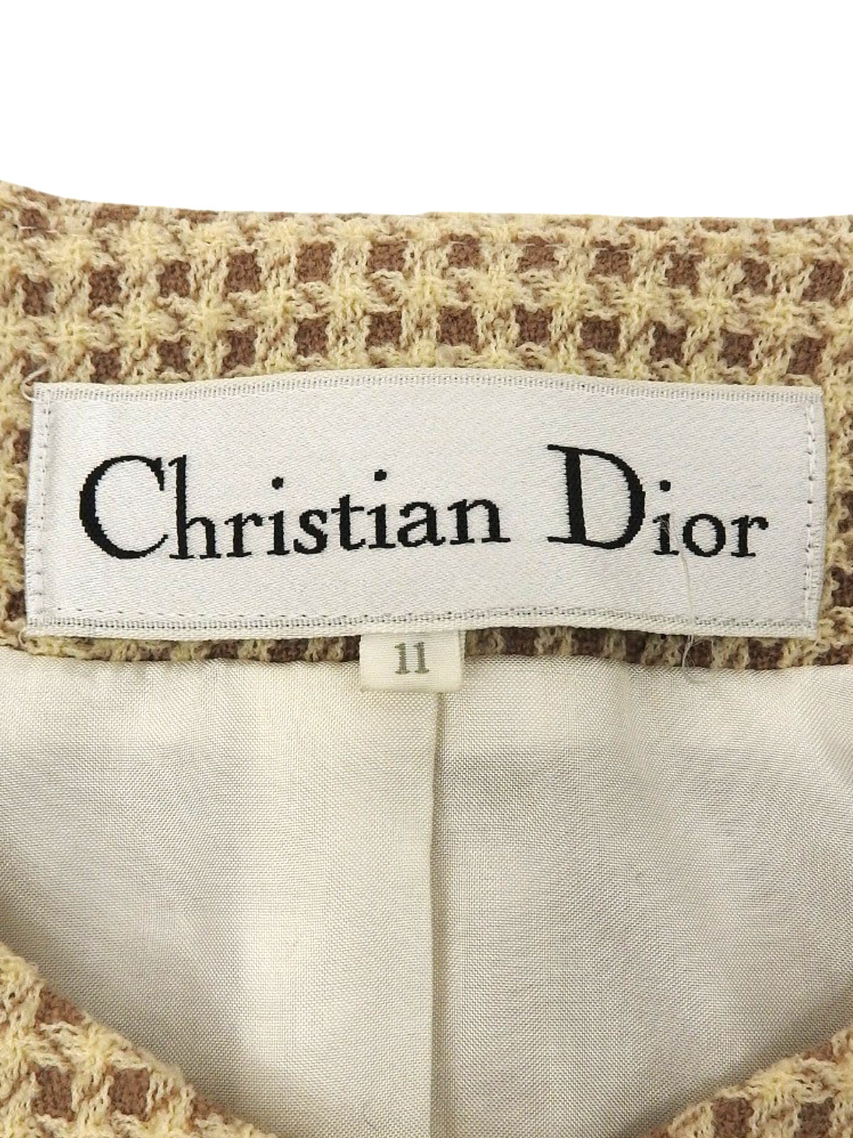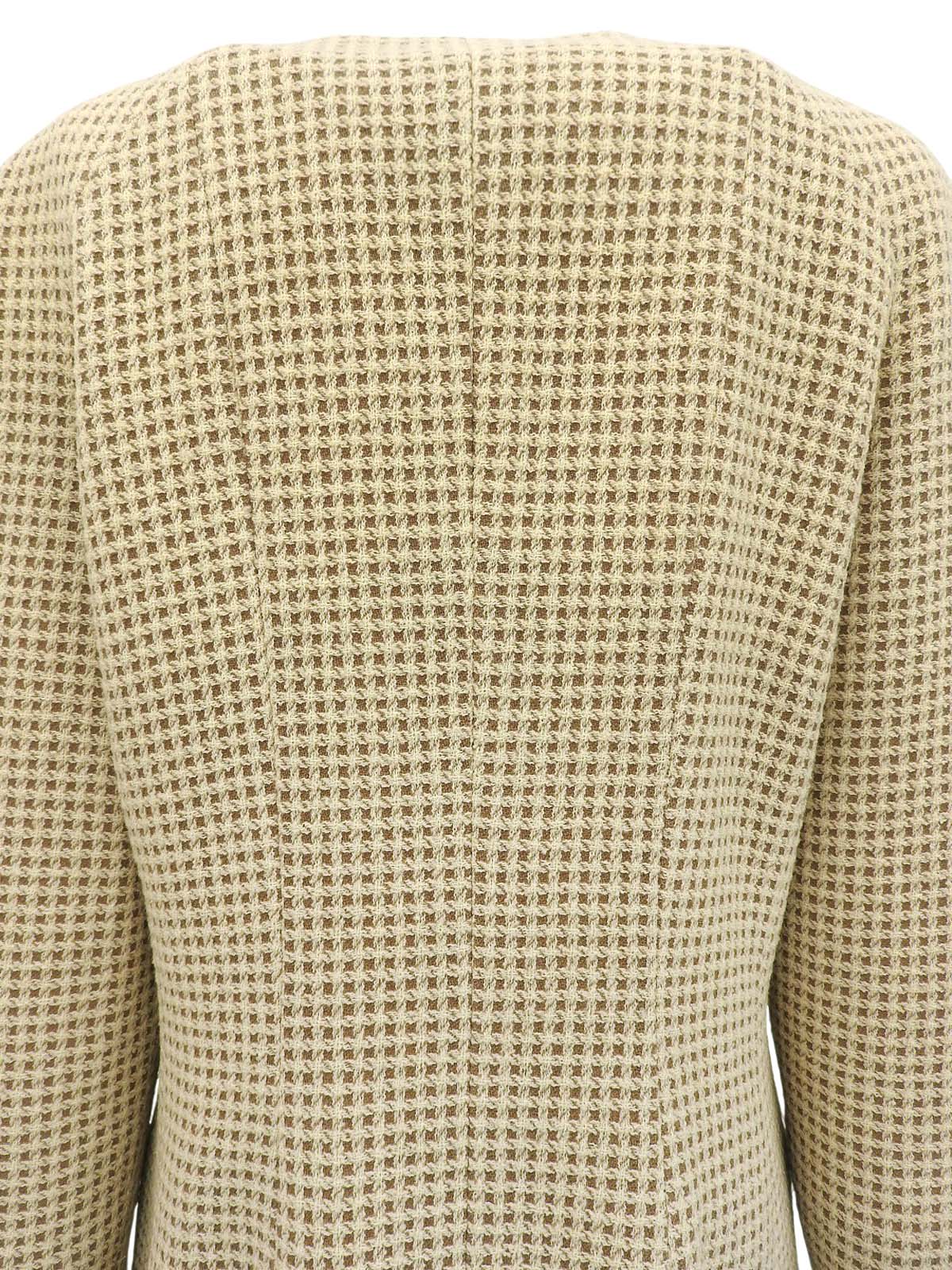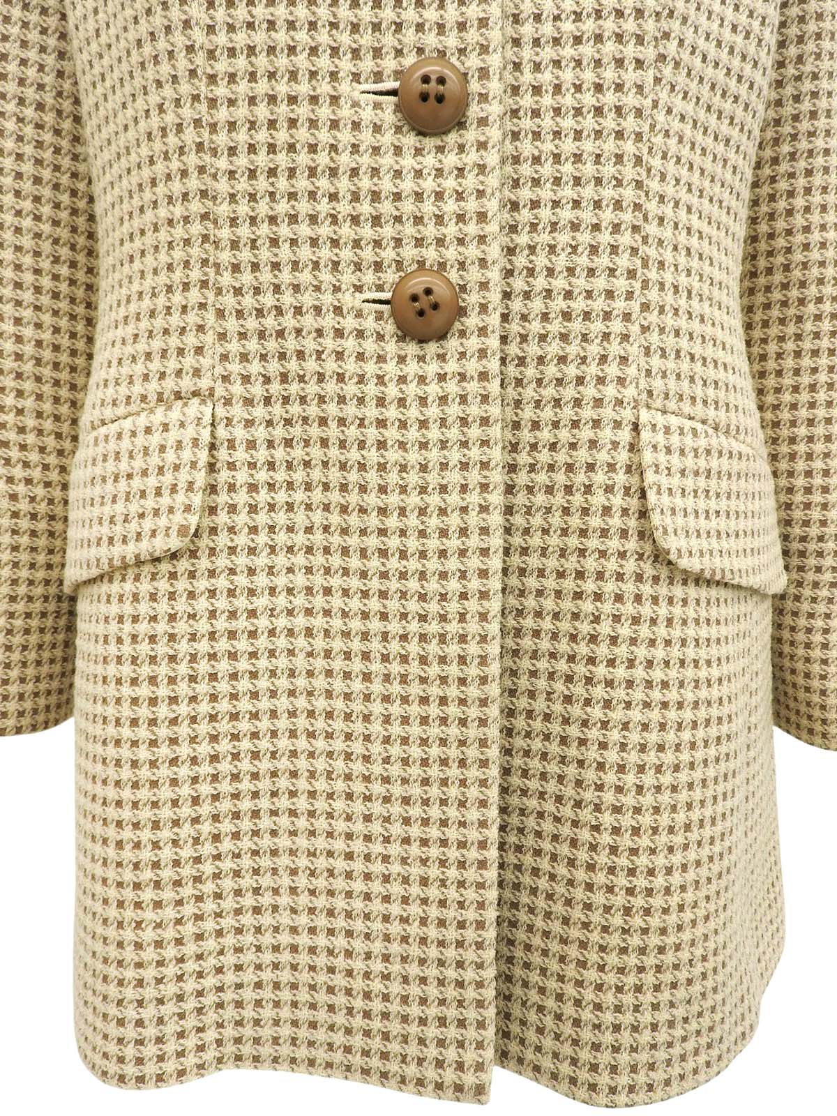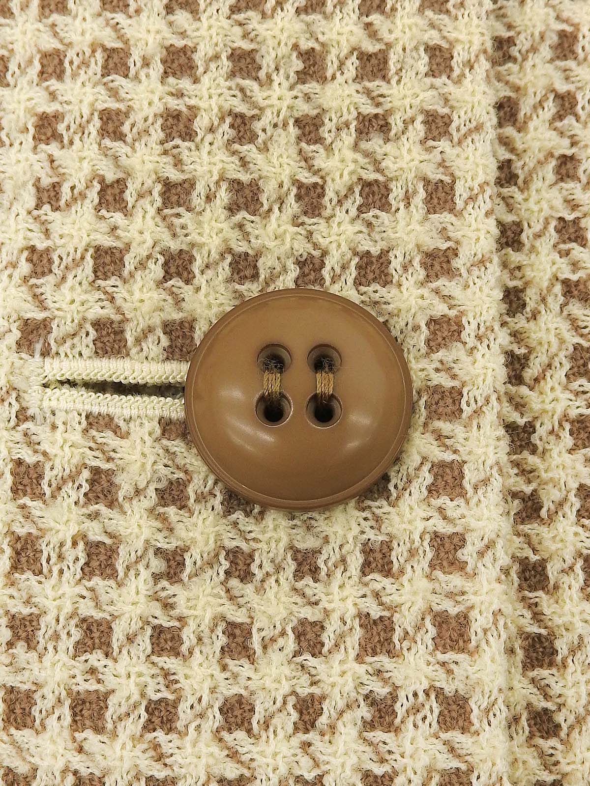 チェックパターンノーカラージャケット アイボリー/ブラウン