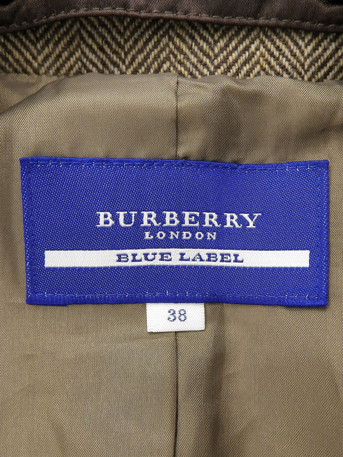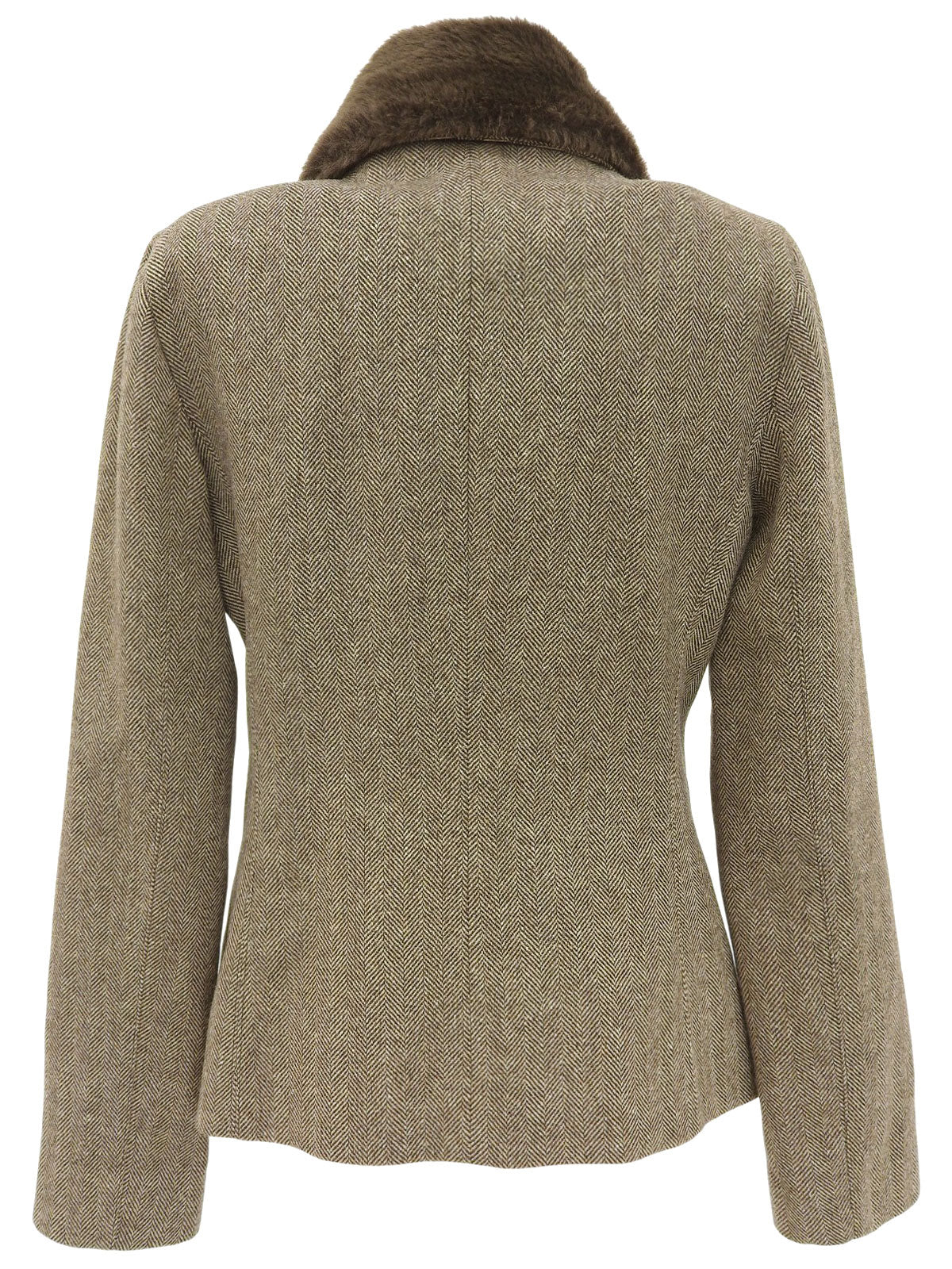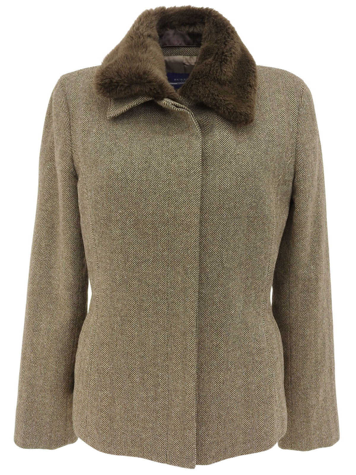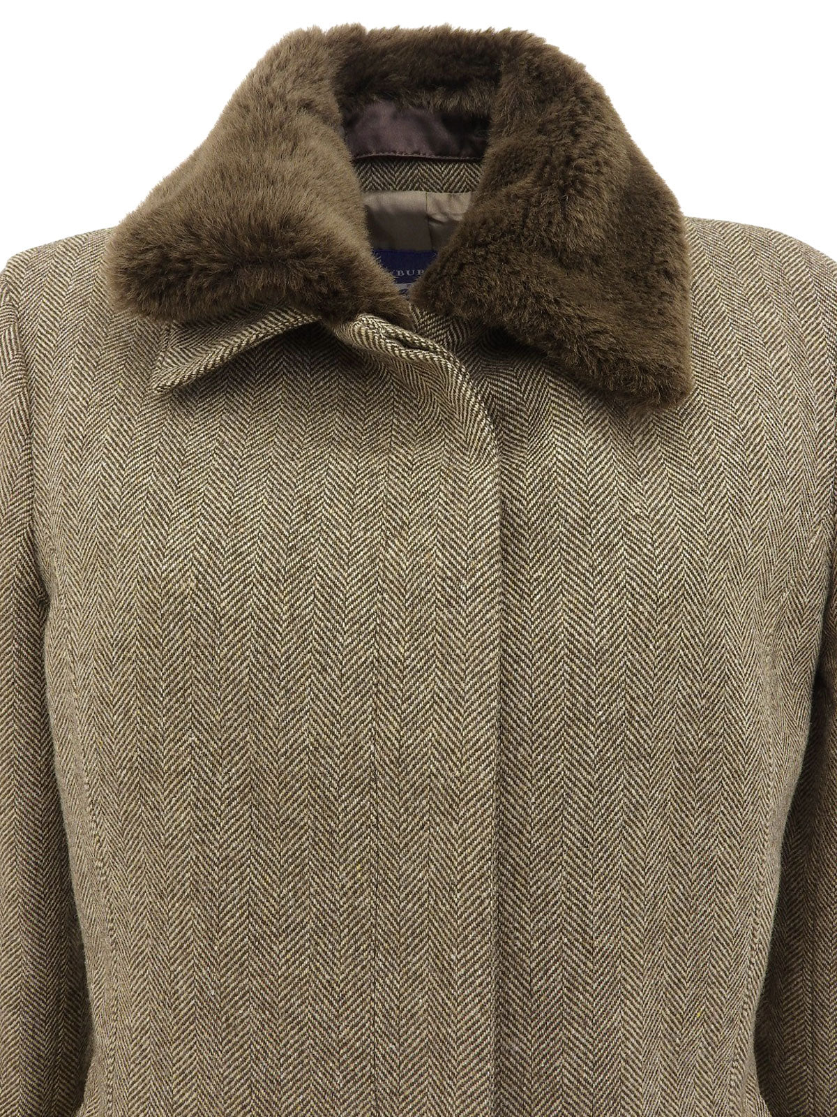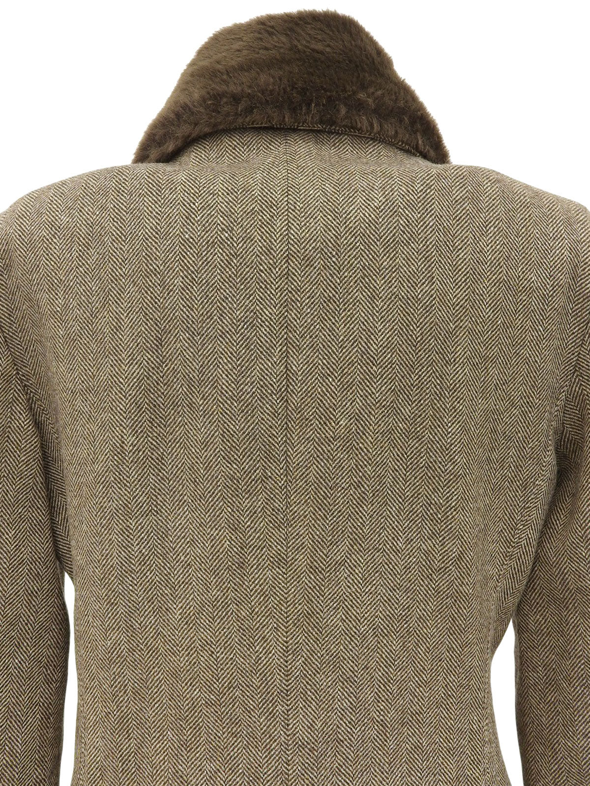 ファーカラーヘリンボーンパターンショートコート ブラウン