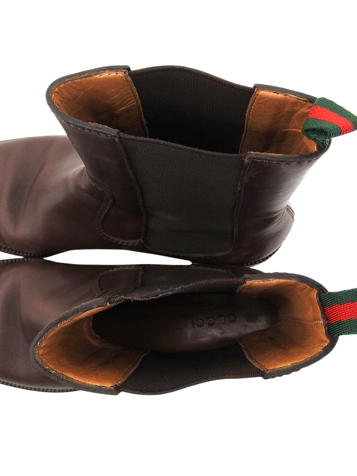 レザーシェリーラインサイドゴアブーツ ダークブラウン