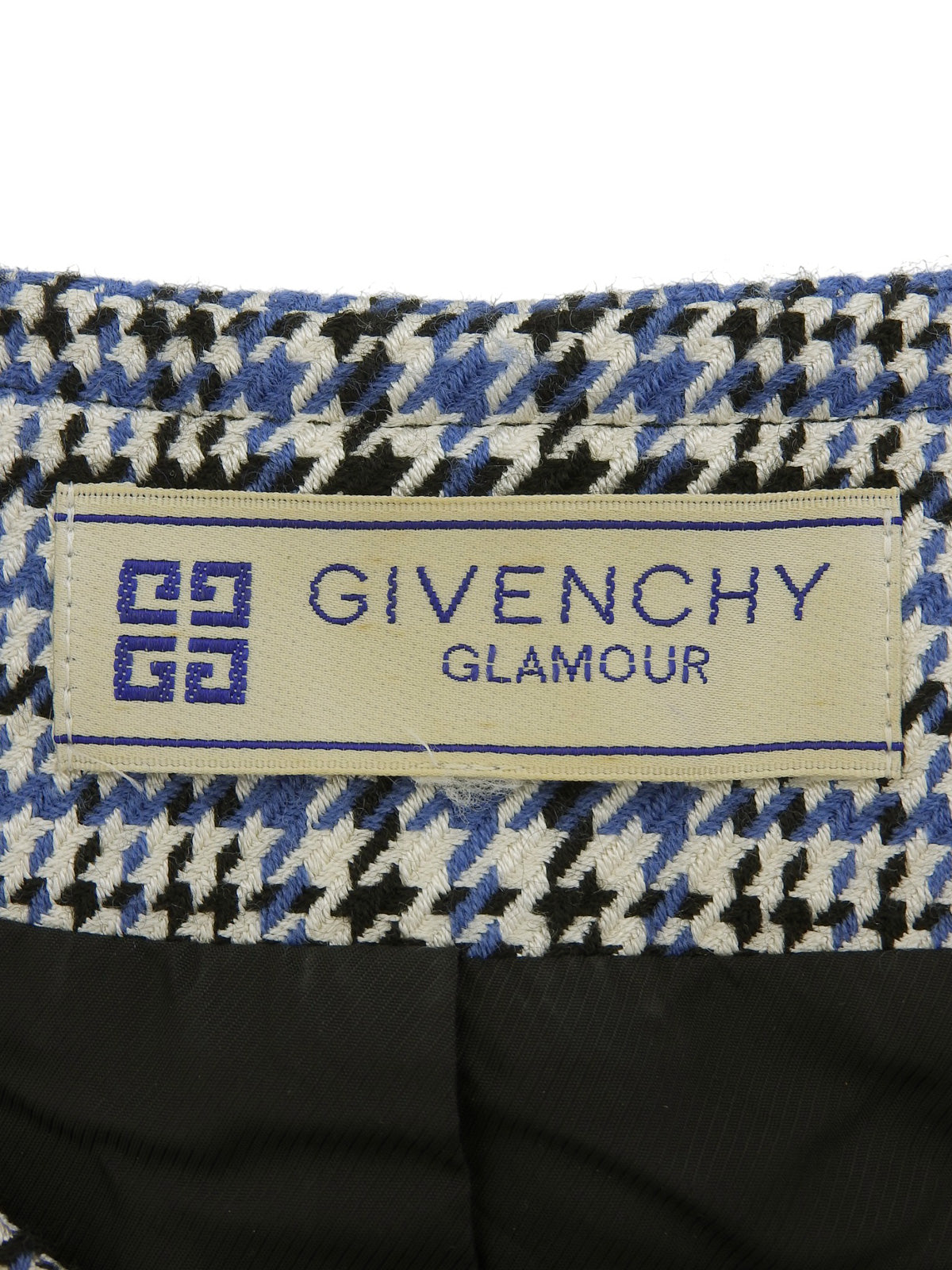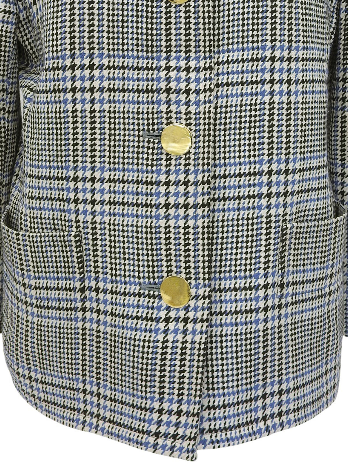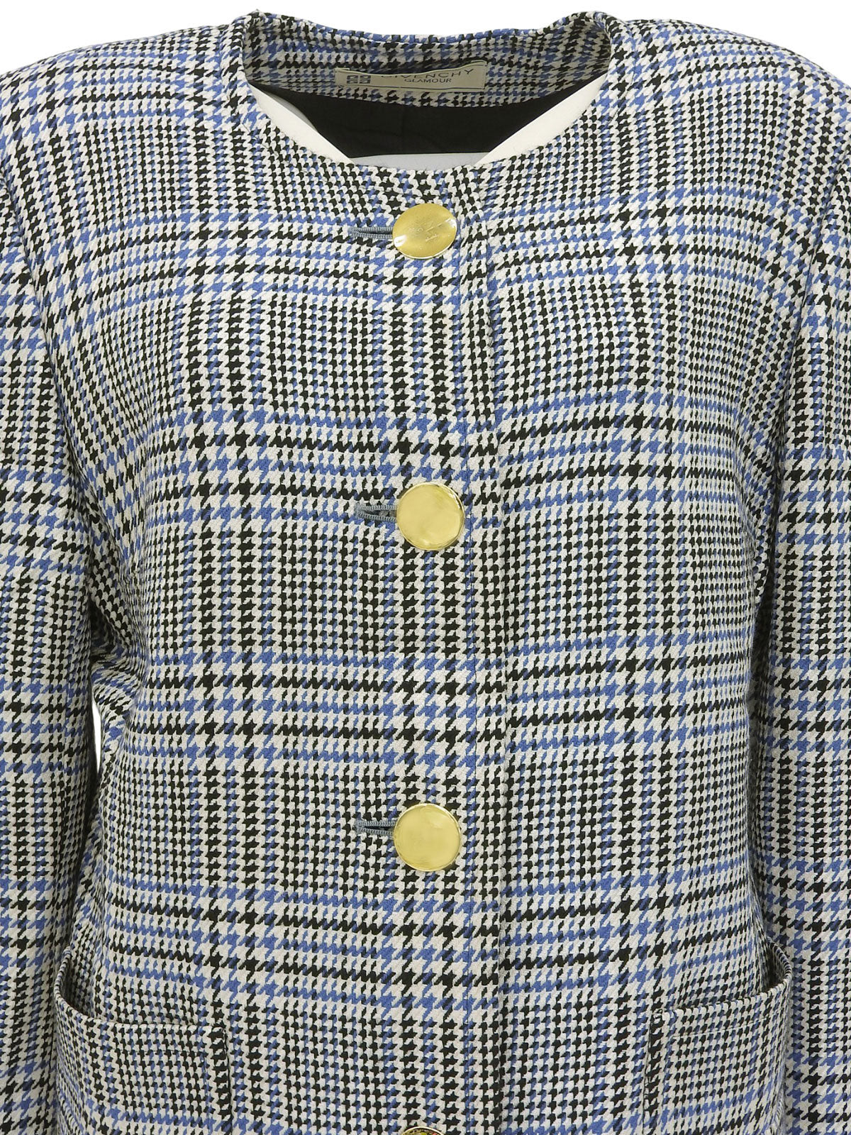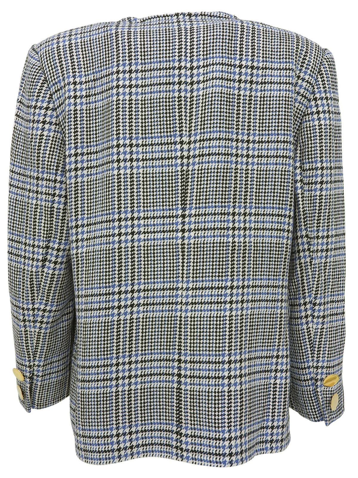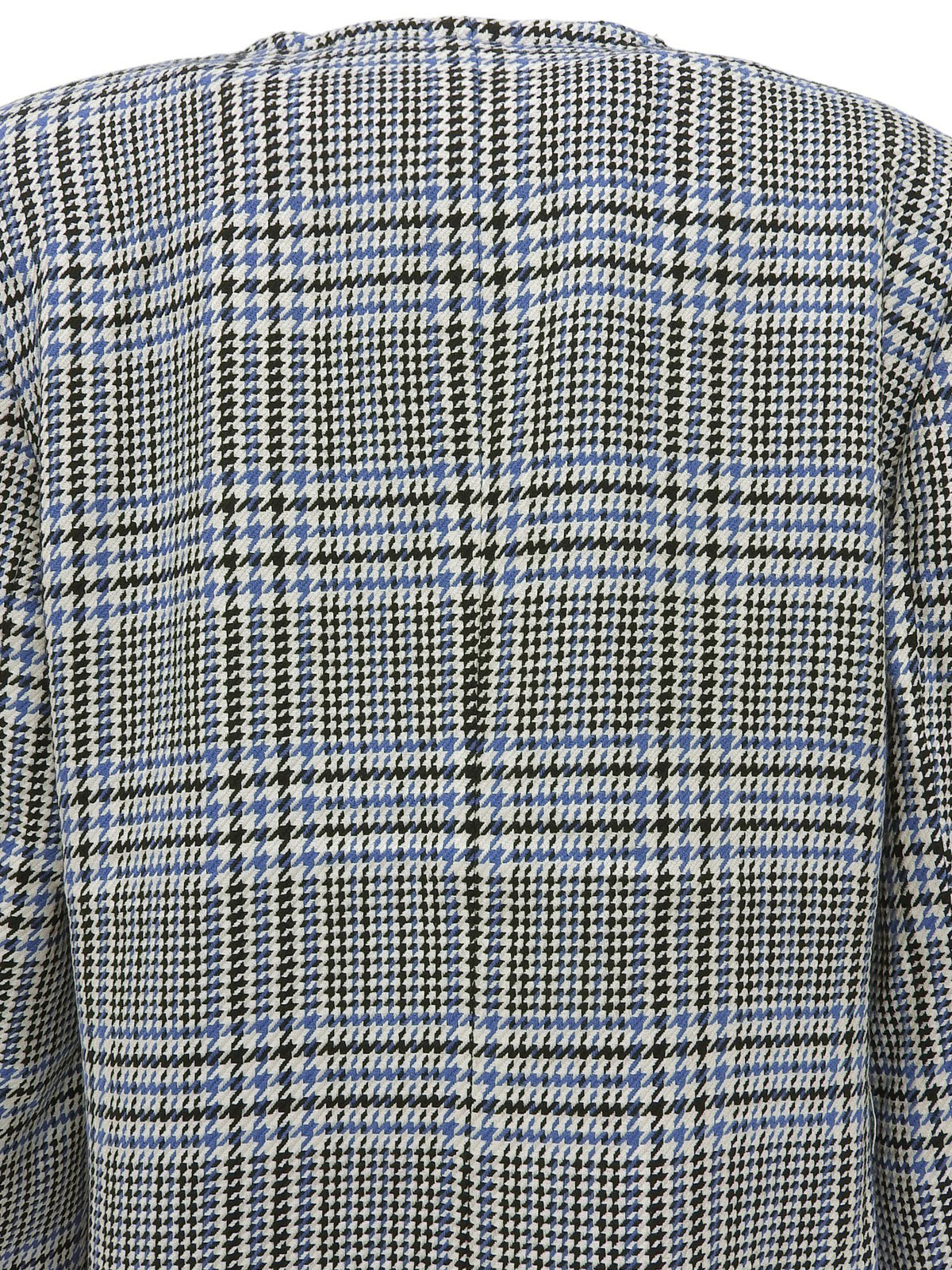 グレンチェックパターンノーカラージャケット ホワイト/ブラック/ブルー