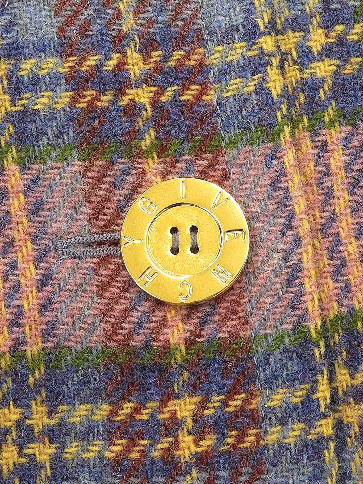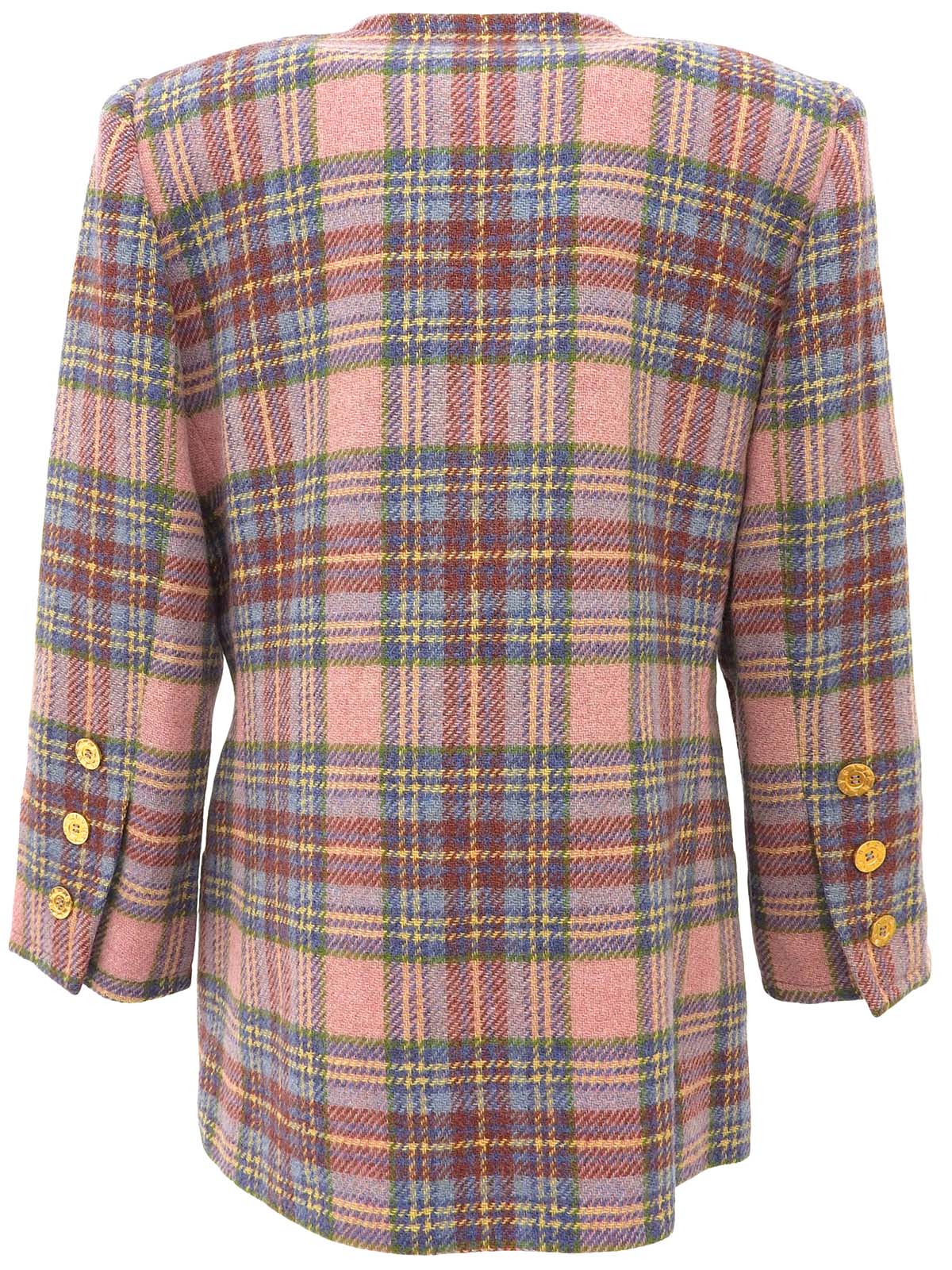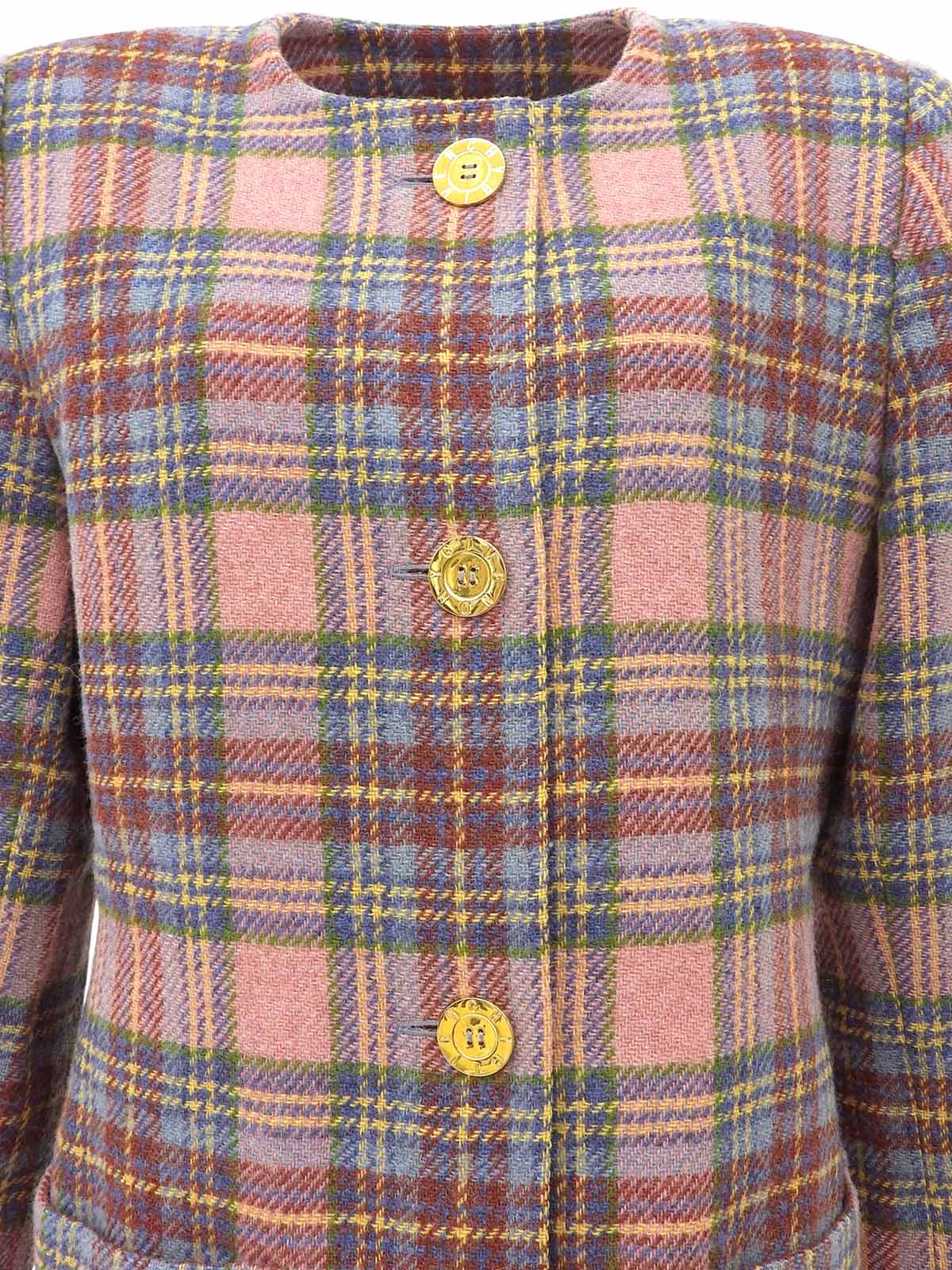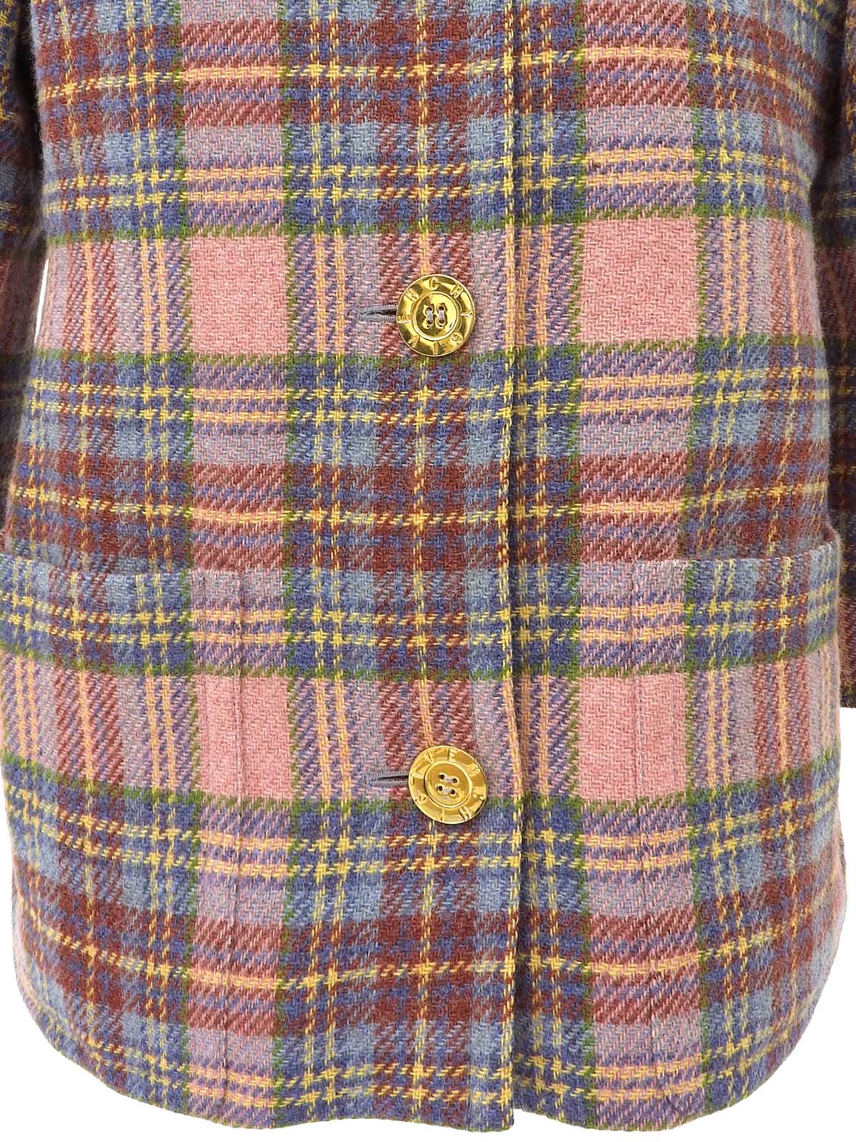チェックパターンロゴボタンノーカラージャケット ピンク/マルチ