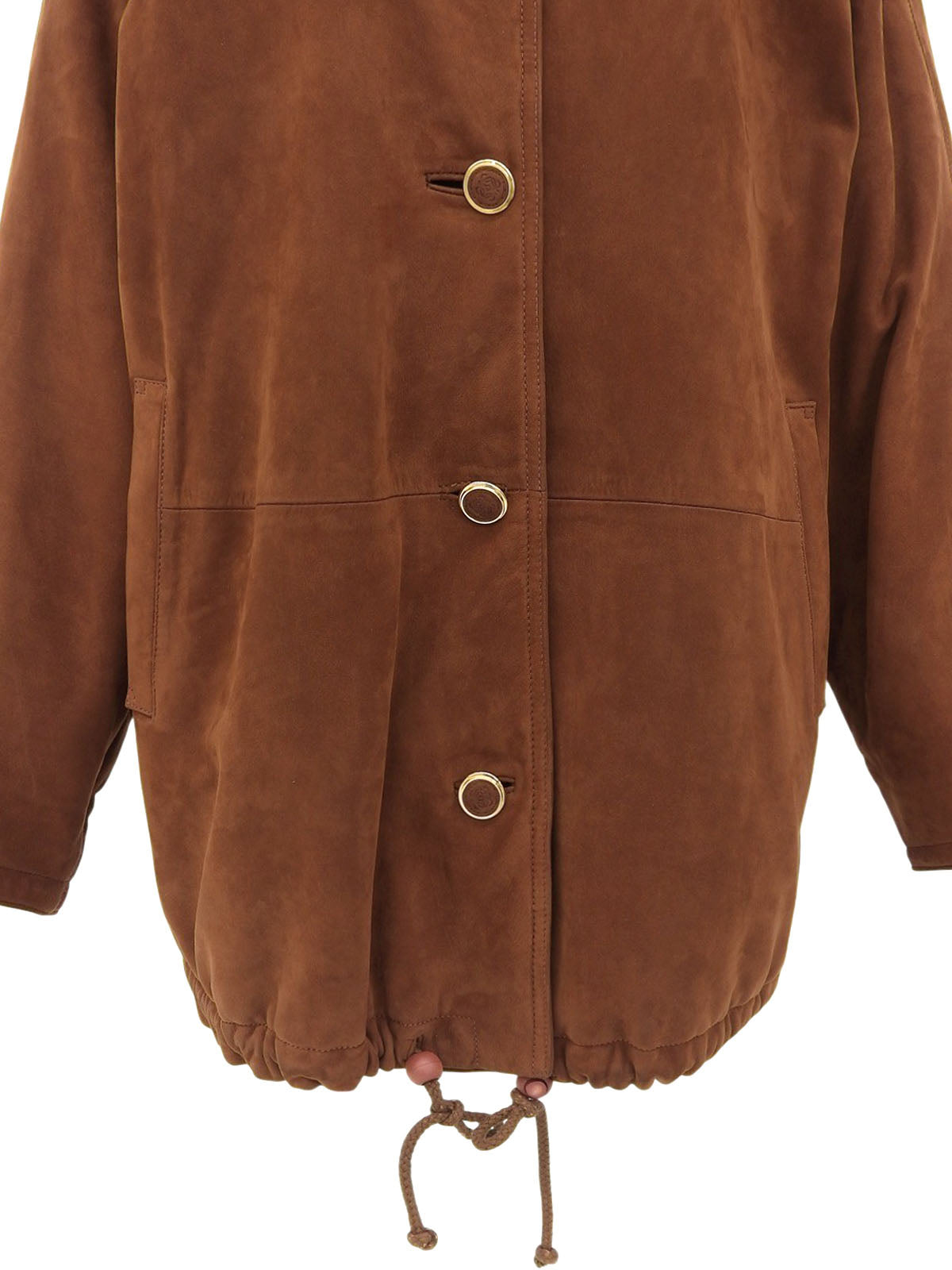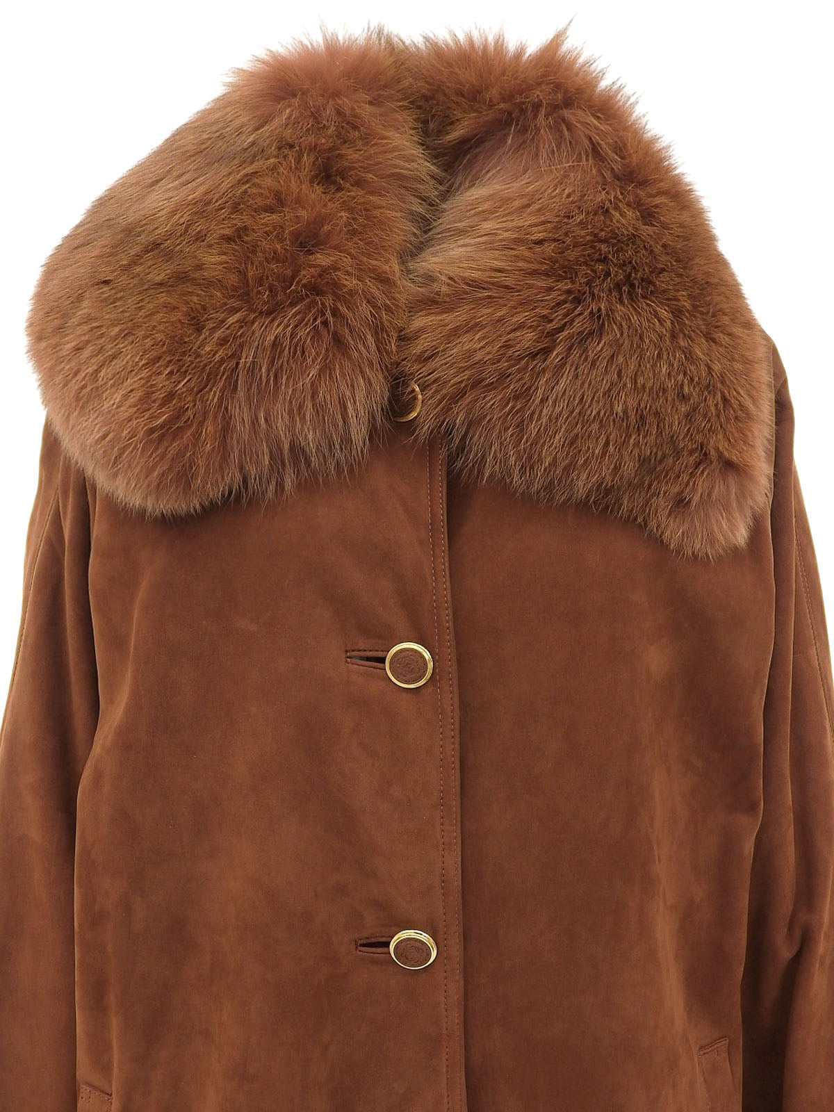 スエードロゴボタンファーカラーコート ブラウン