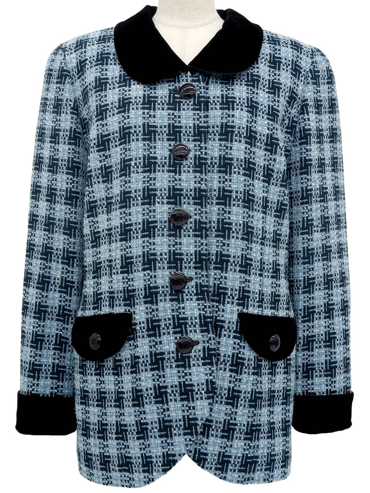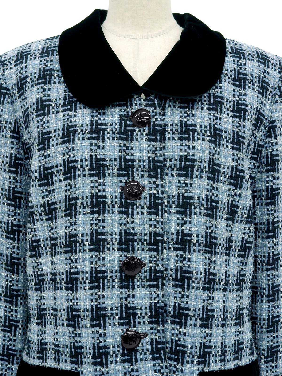 ツイードロゴボタンジャケット ライトブルー/ブラック