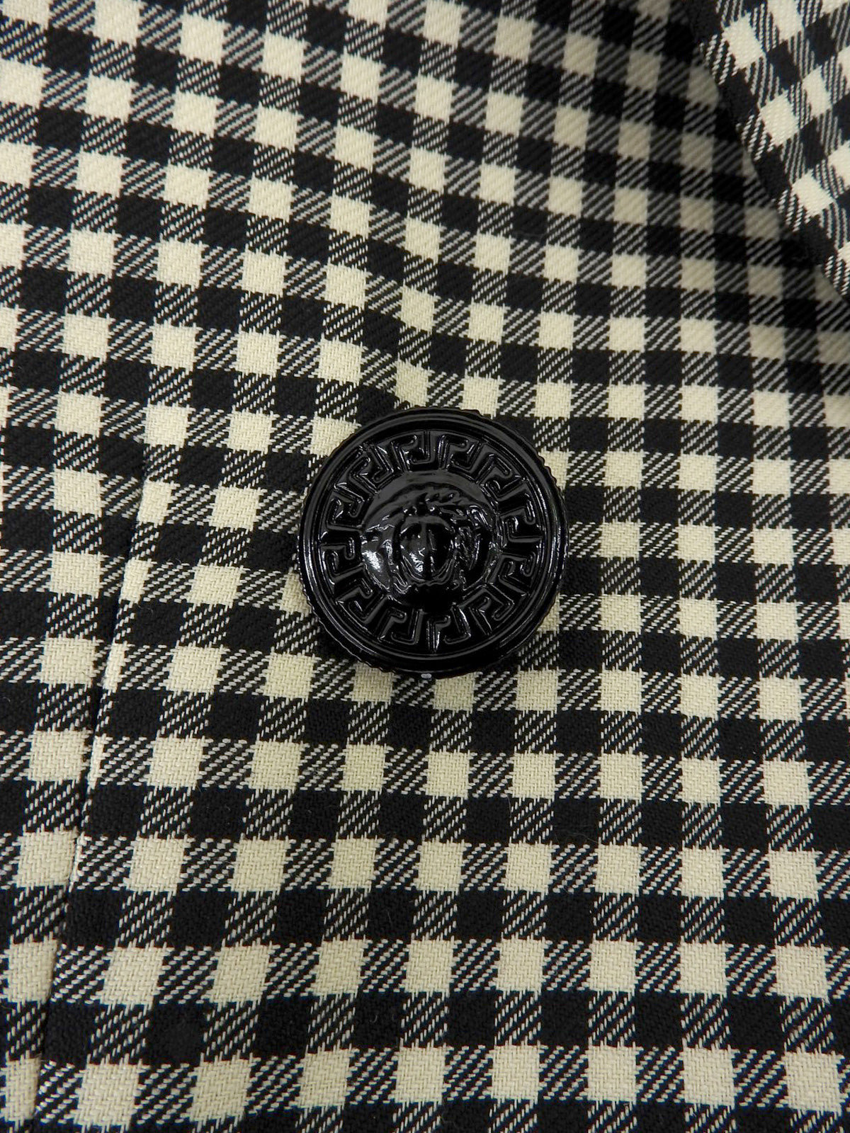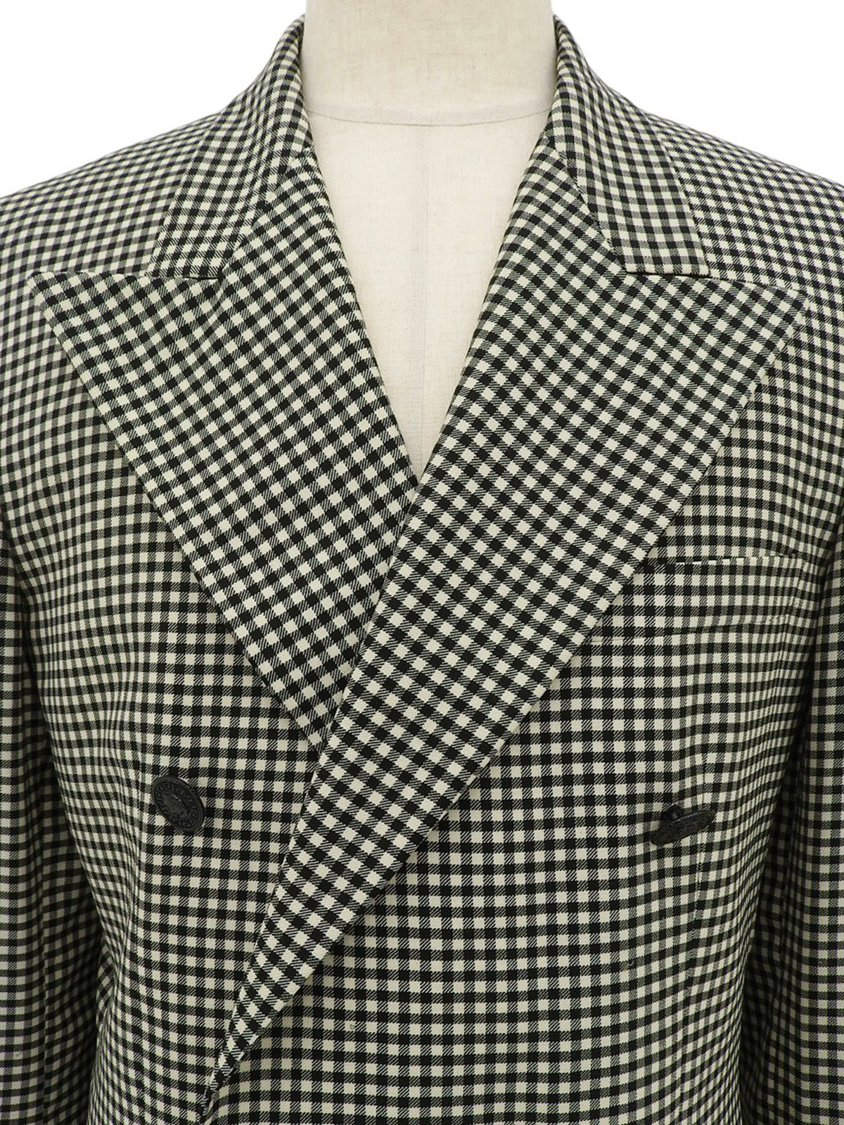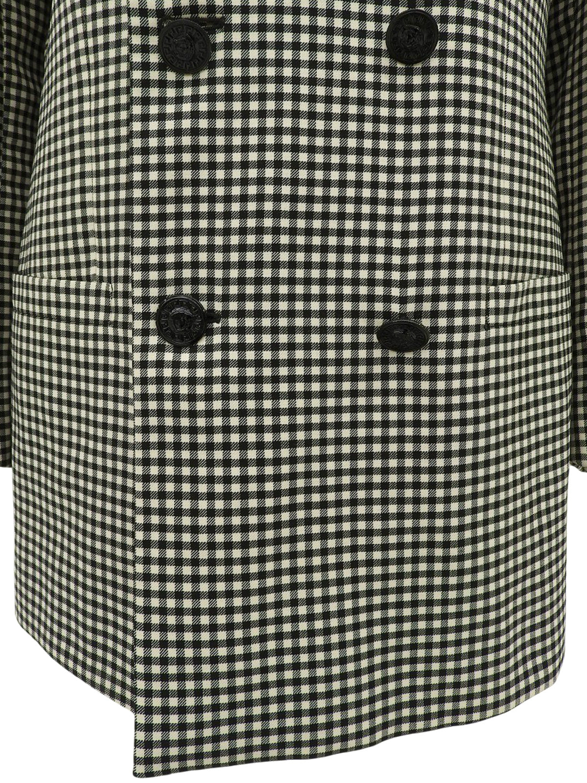 ウールチェックパターンロゴボタンジャケット ブラック/アイボリー