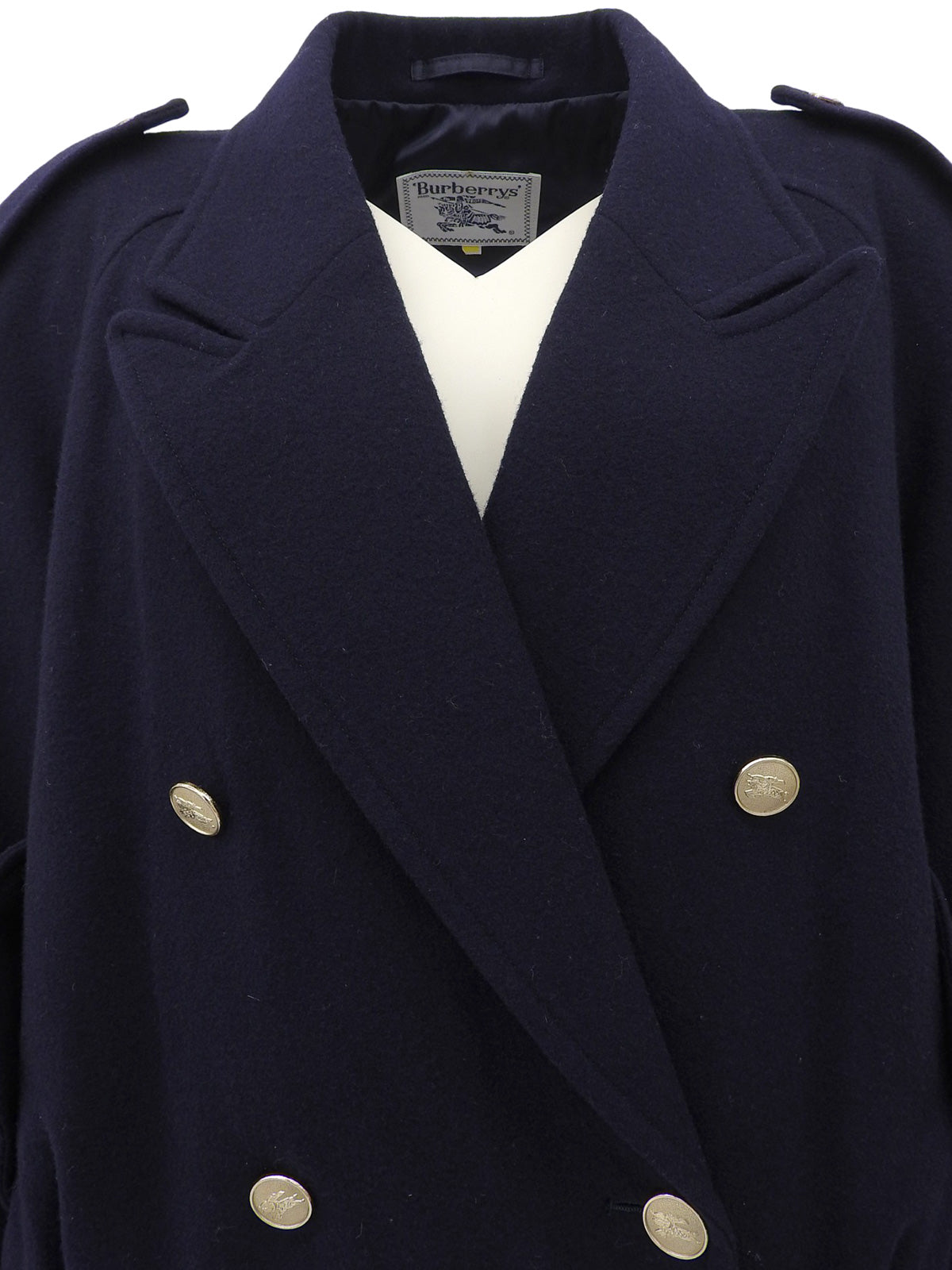 ウールロゴボタンダブルブレストショートコート ネイビー