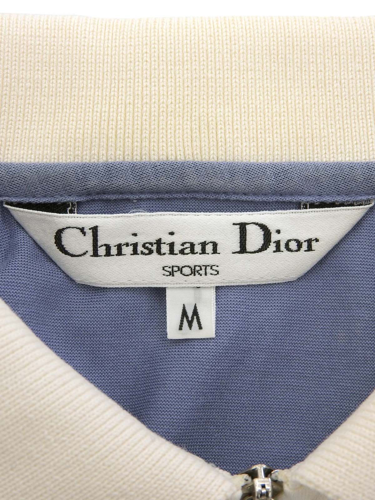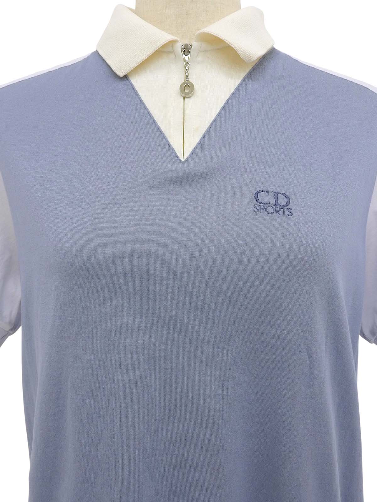 ロゴ刺繍ジップアップポロシャツ ブルー