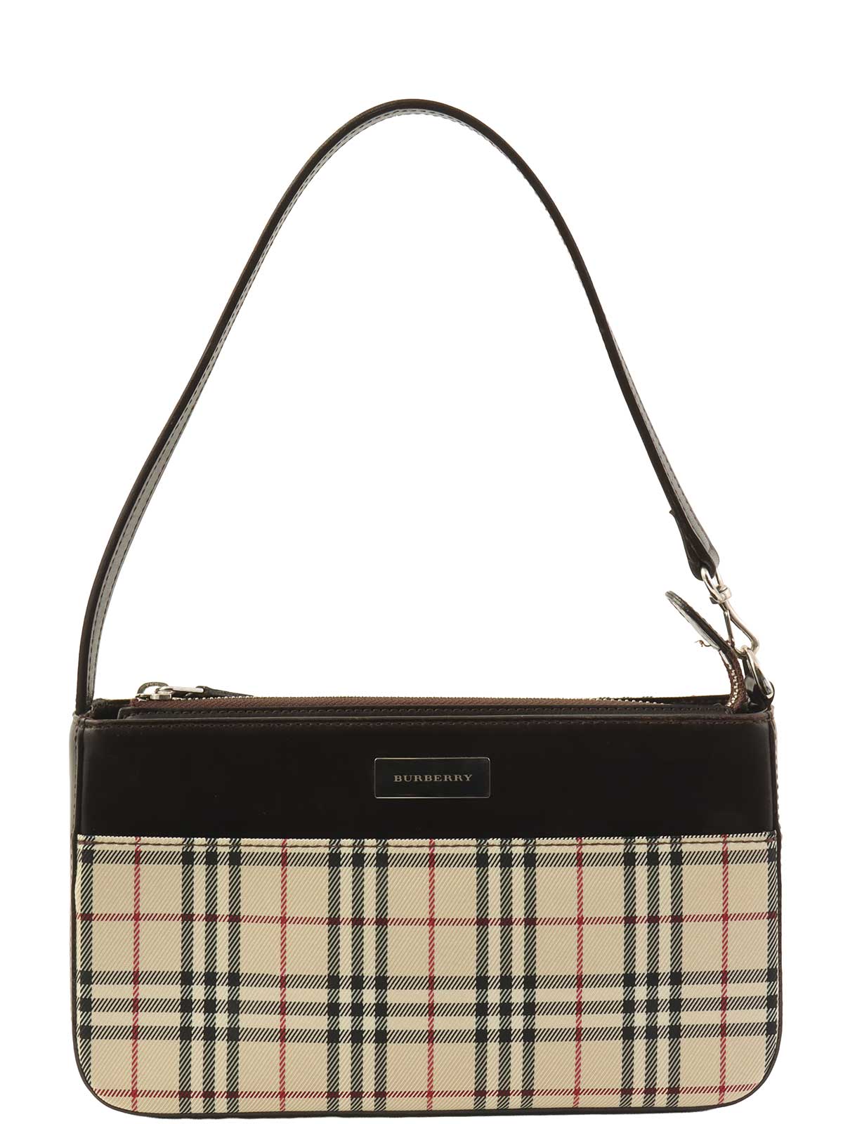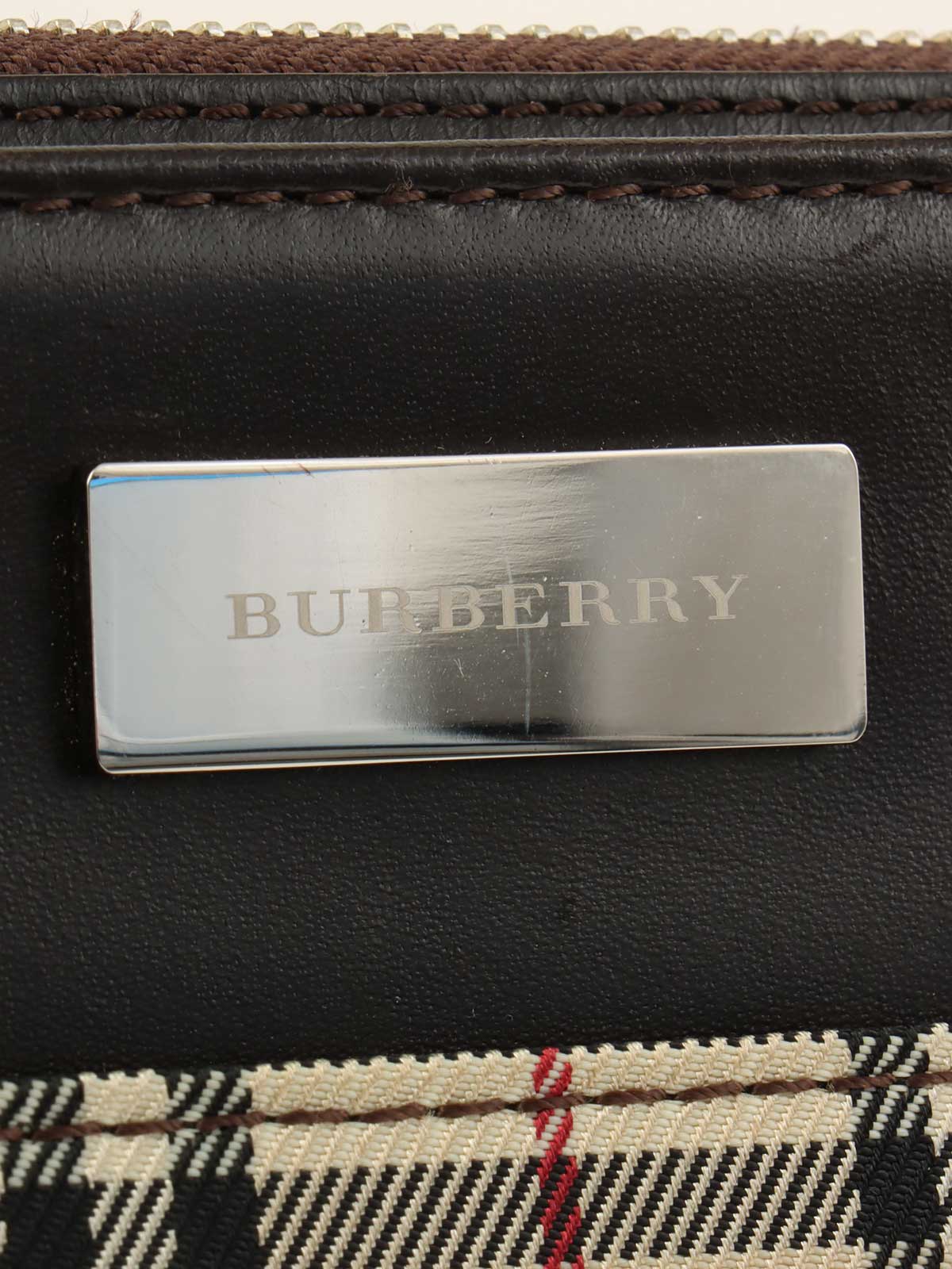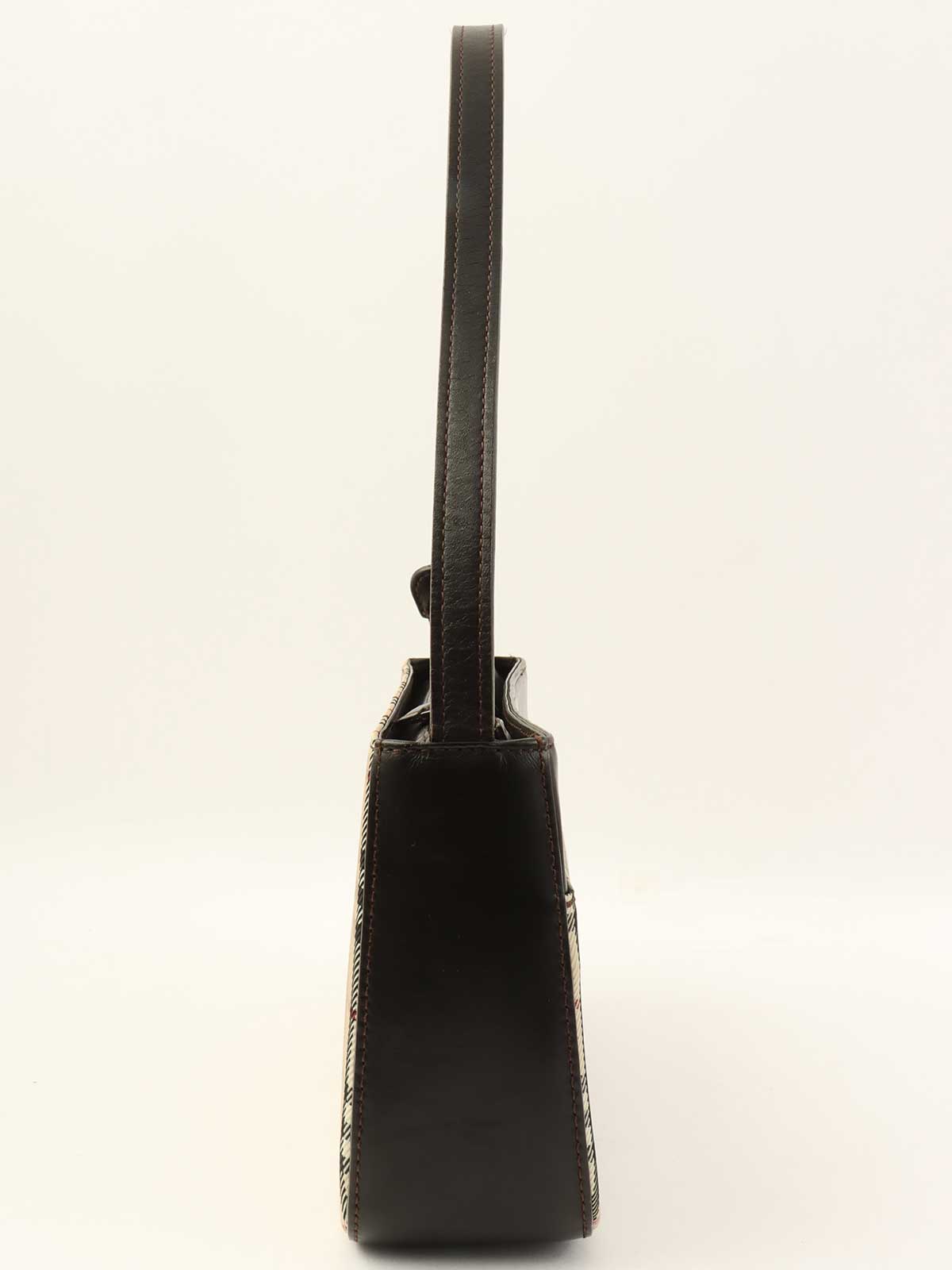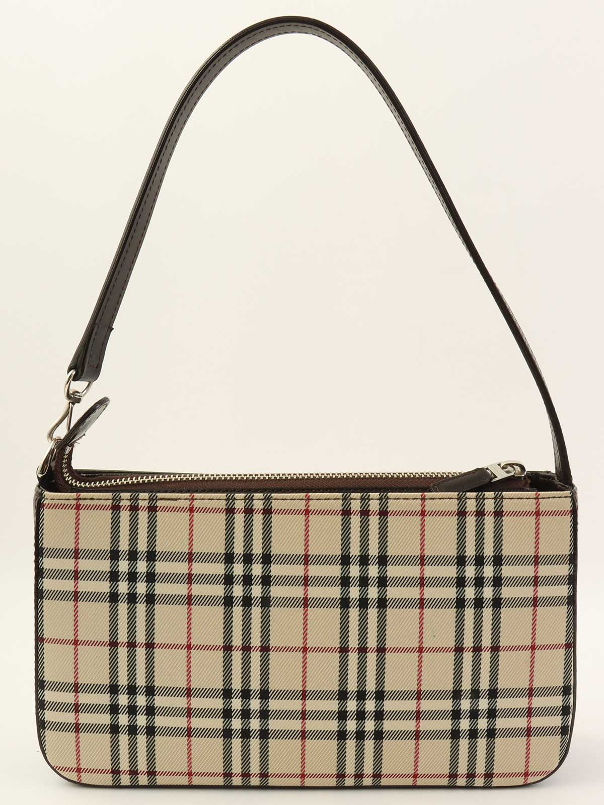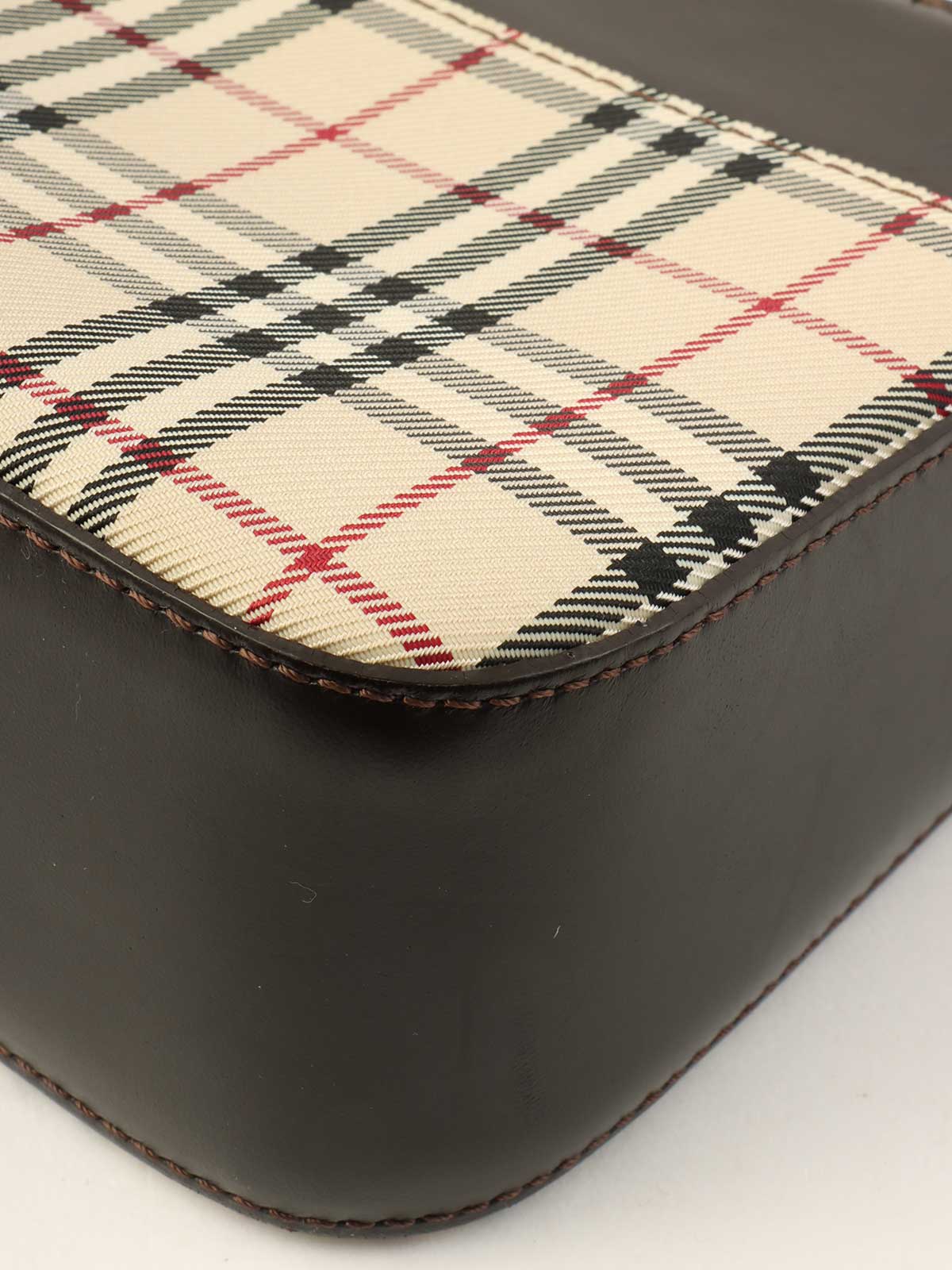 ノバチェックパターンロゴプレートショルダーバック ベージュ/ダークブラウン/マルチ