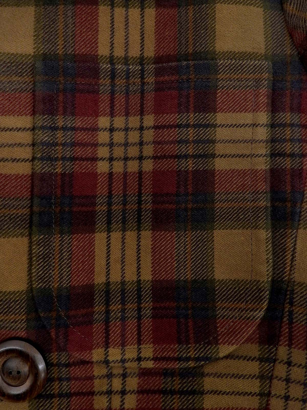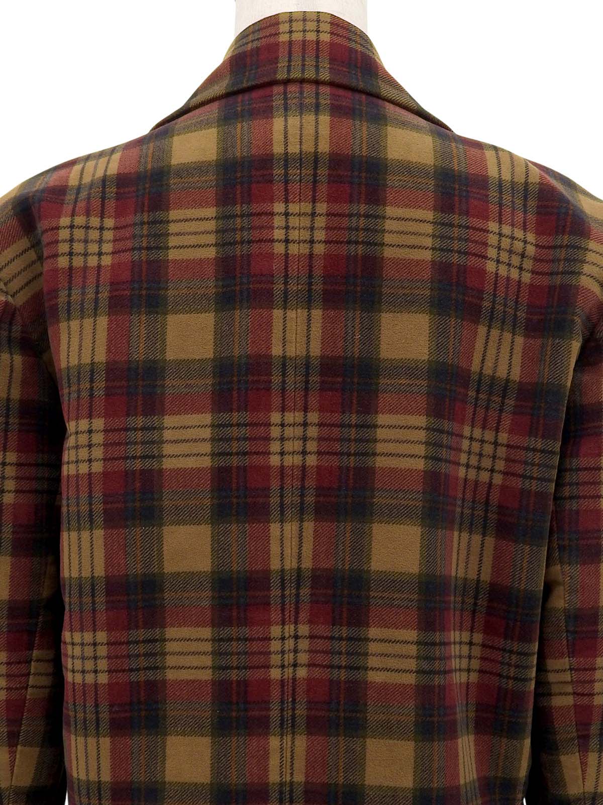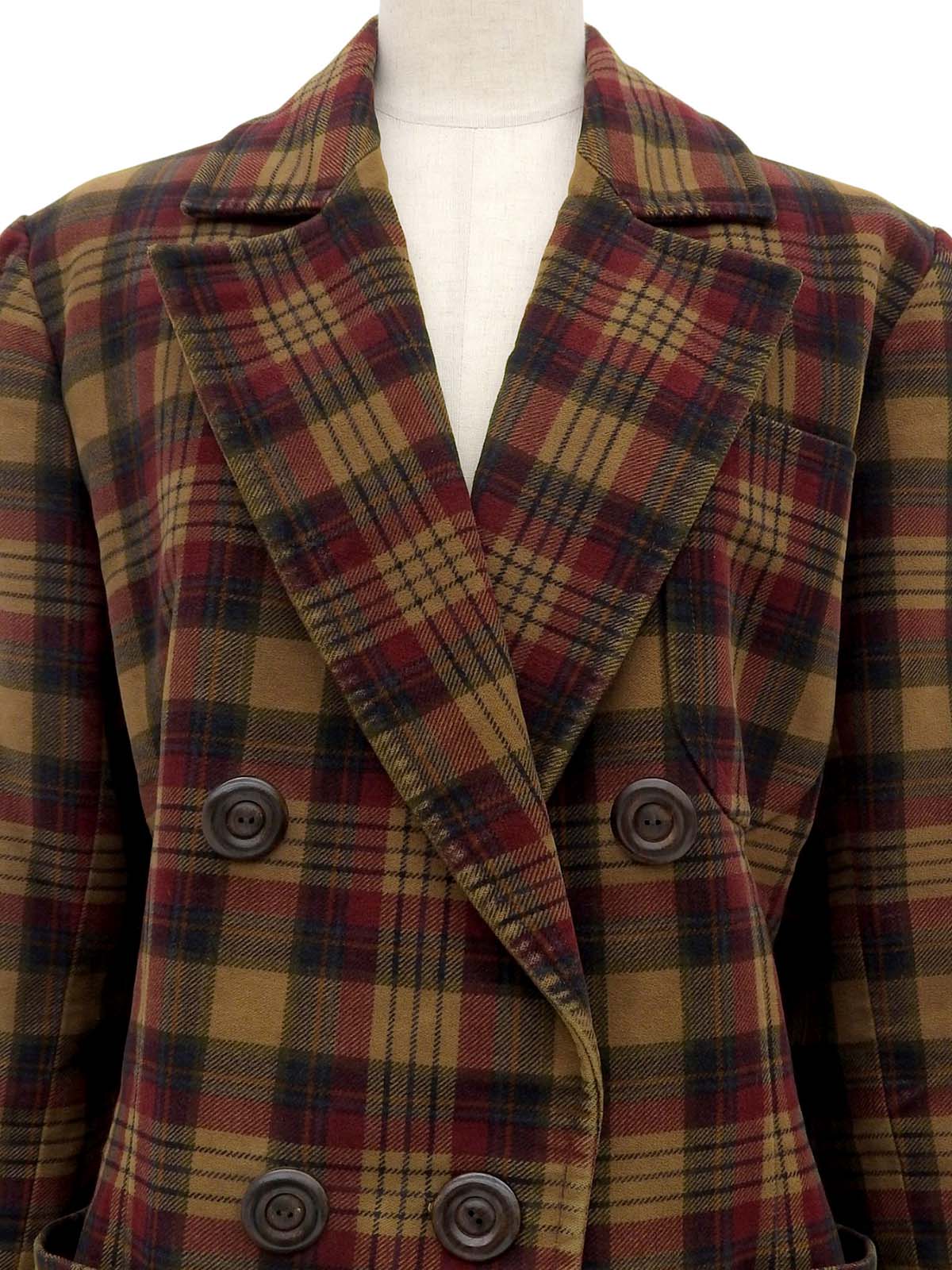 チェックパターンウッドボタンダブルブレストジャケット ブラウン/ボルドー/マルチ