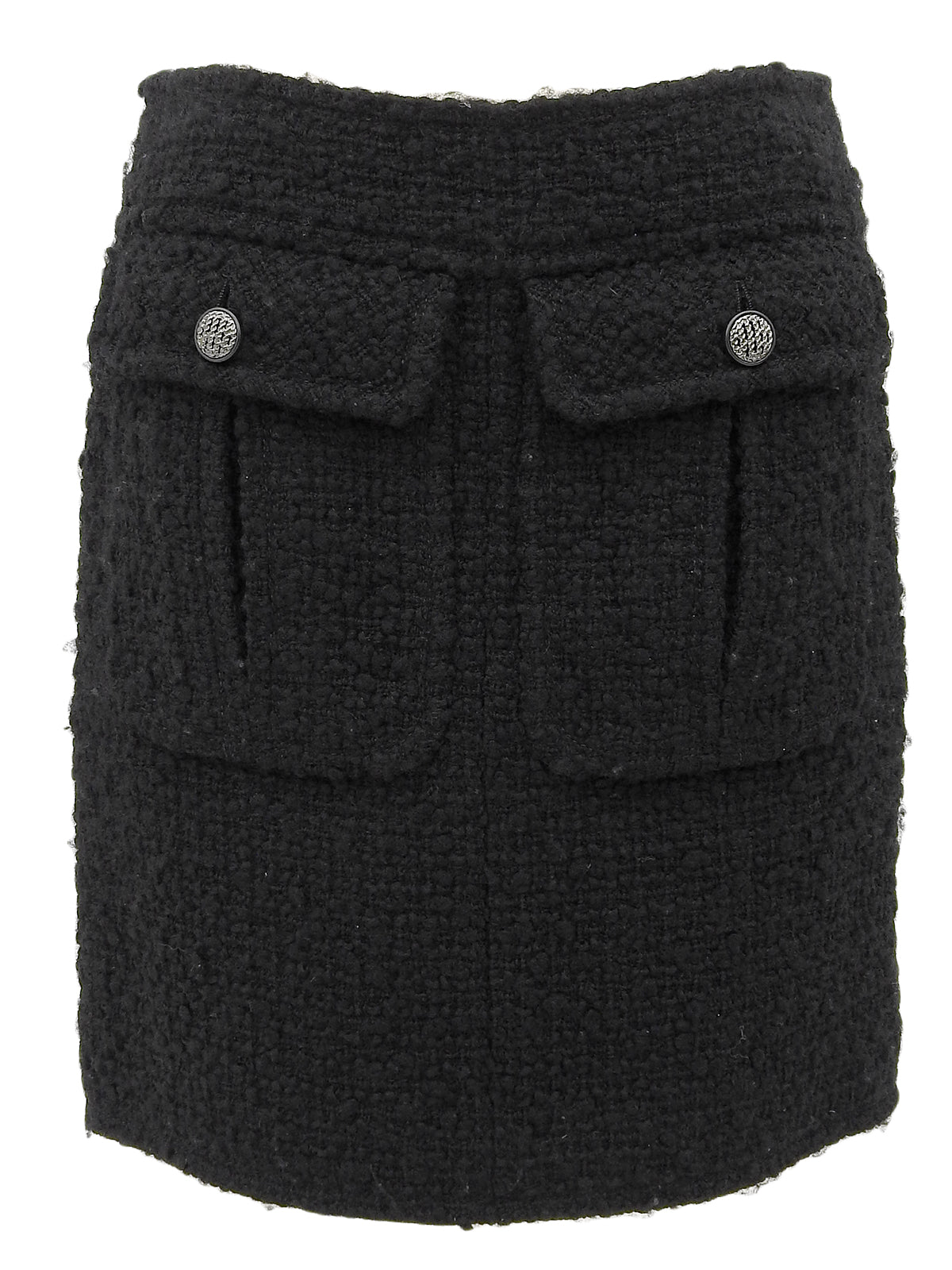 ツイードCCマークチェーンデザインボタンスカート ブラック