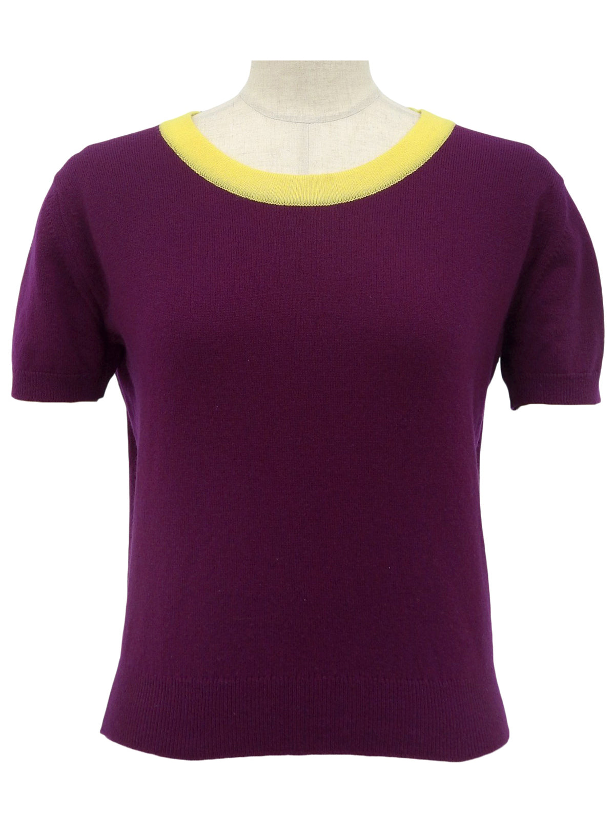 1995年製 バイカラーニット半袖トップス パープル/イエロー