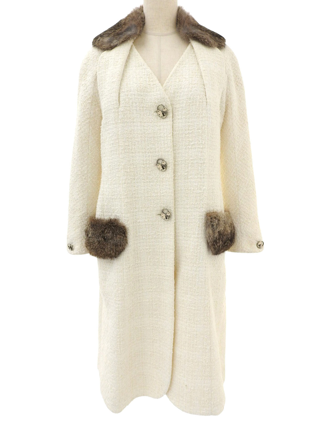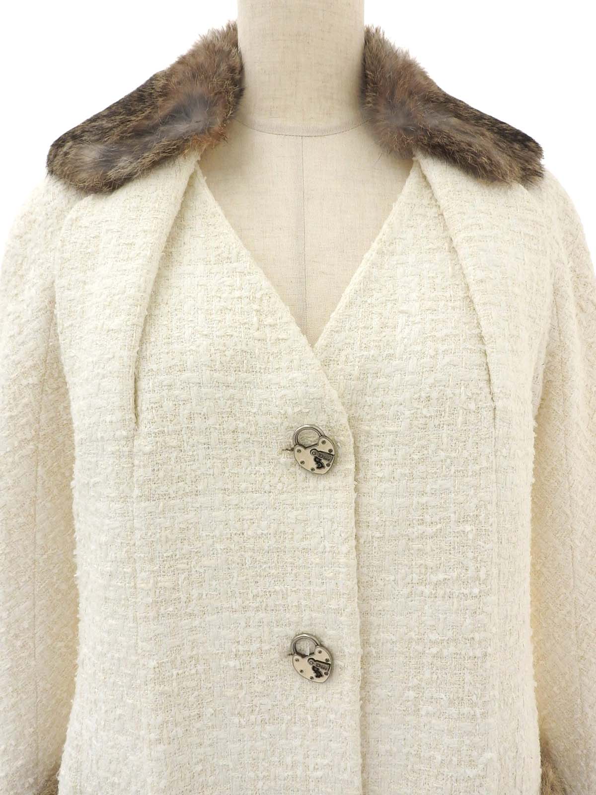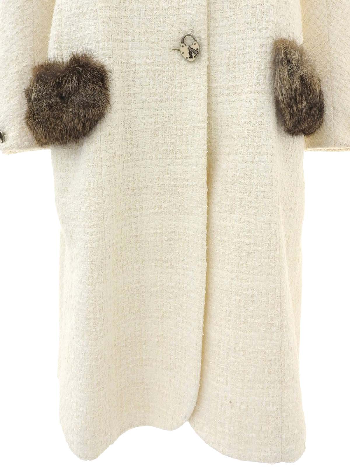 ファーパドロックロゴボタンロングコート ホワイト/ブラウン