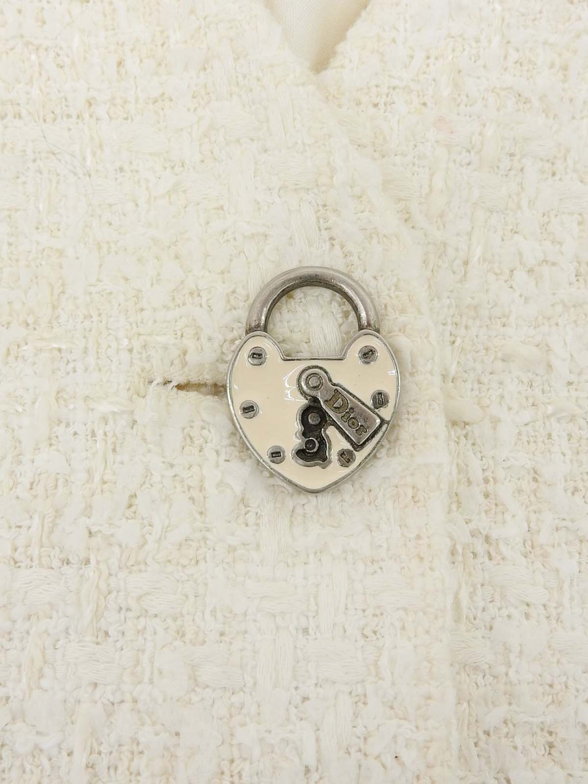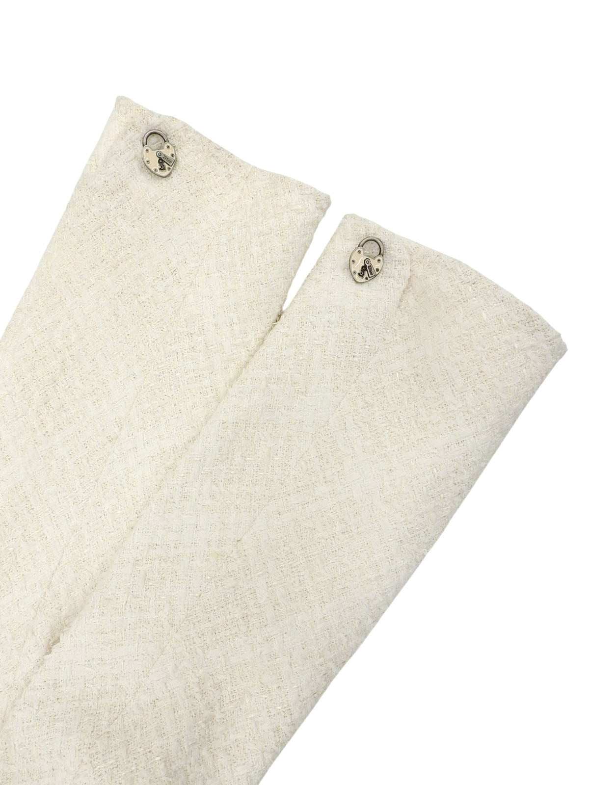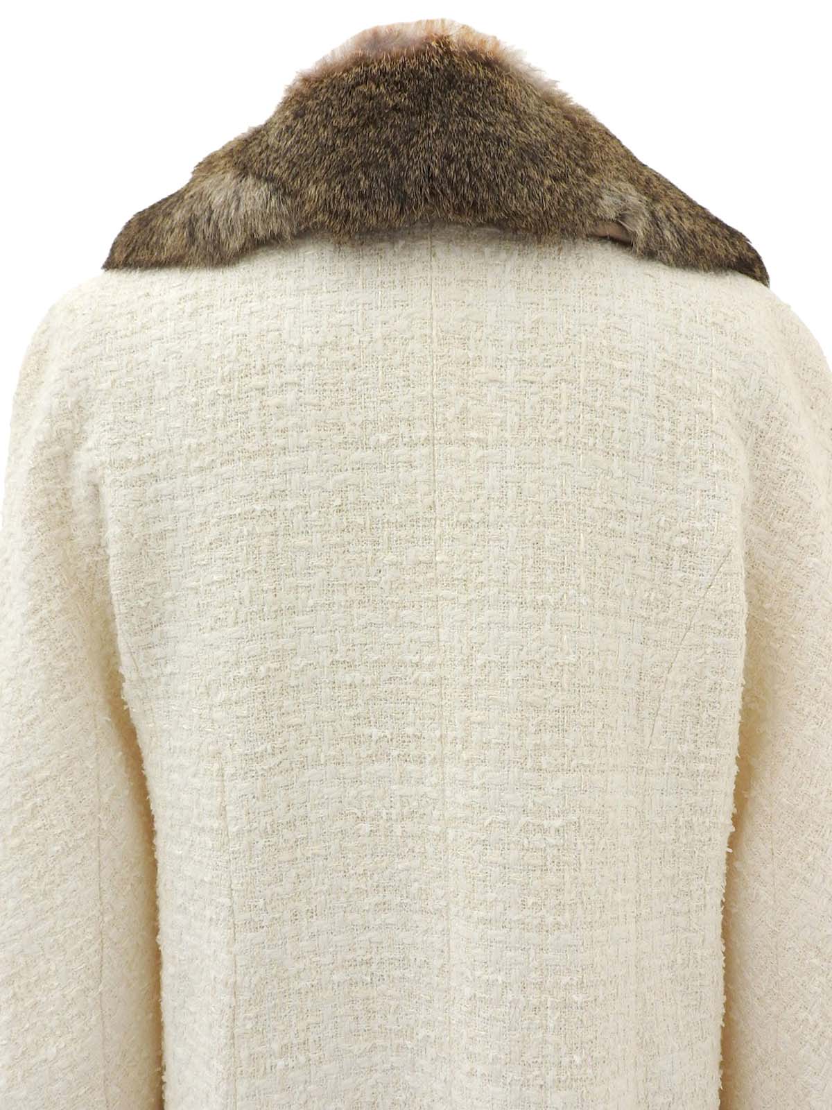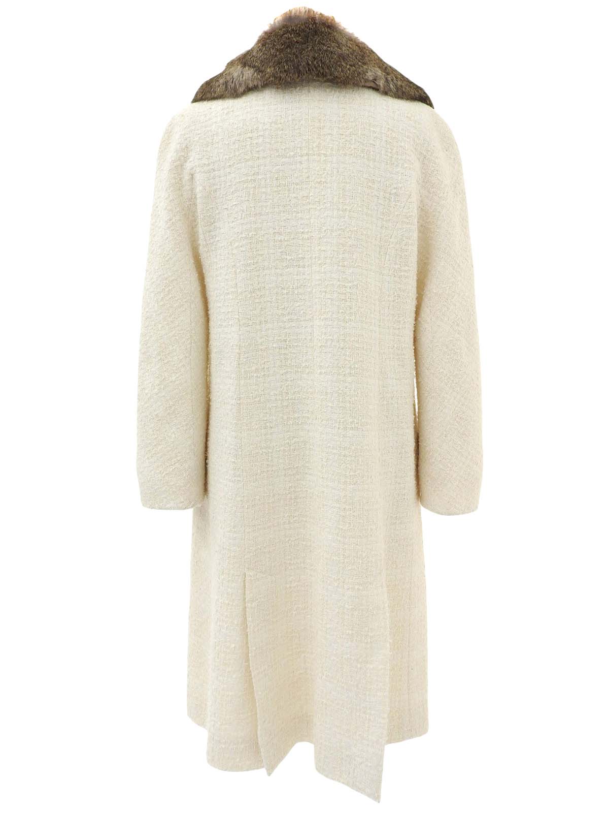 ファーパドロックロゴボタンロングコート ホワイト/ブラウン