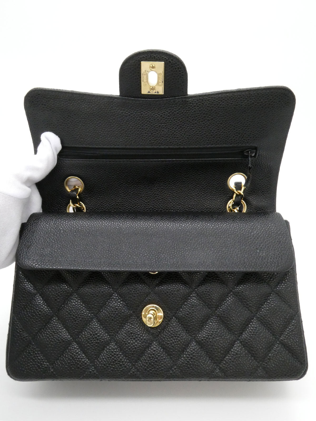 2001年頃製 キャビアスキンクラシックフラップチェーンバッグ23cm ブラック