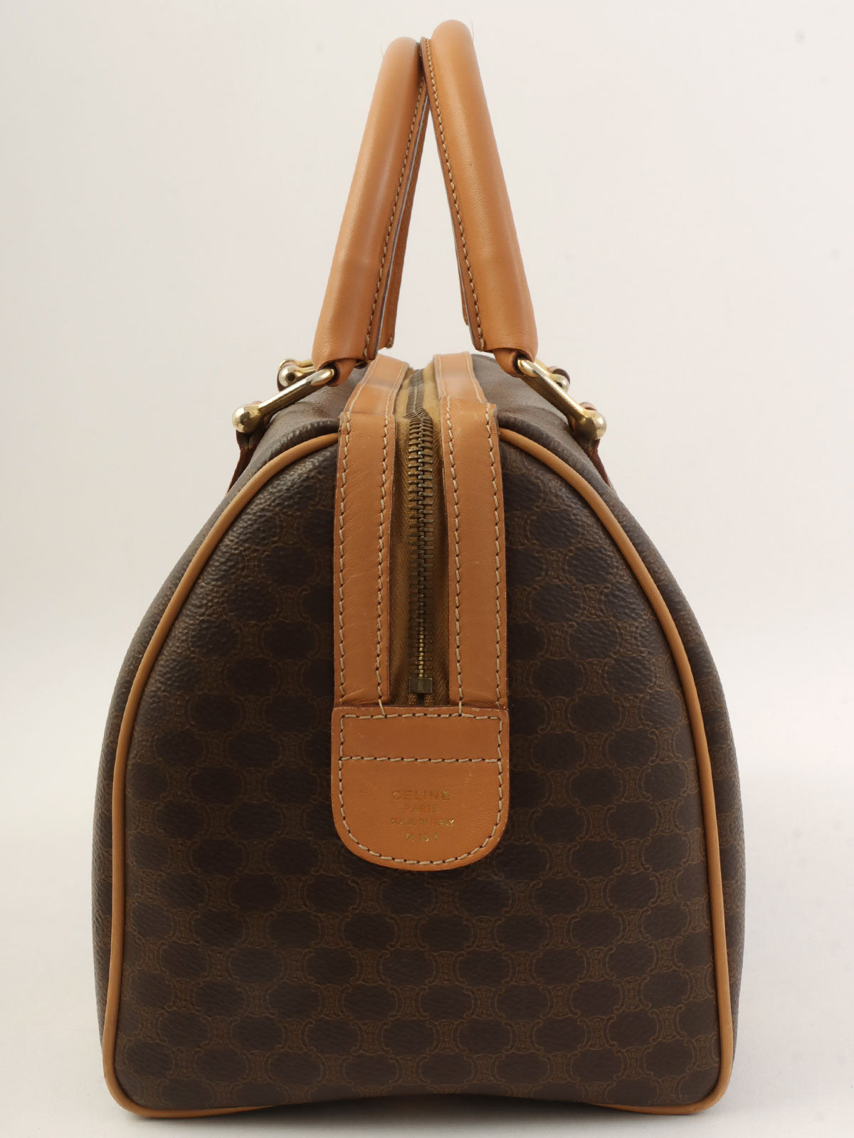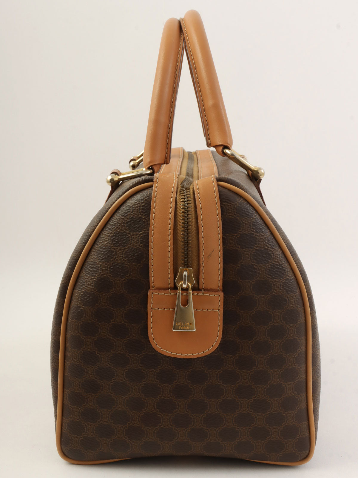 マカダムパターンロゴエンボスミニボストンバッグ ブラウン