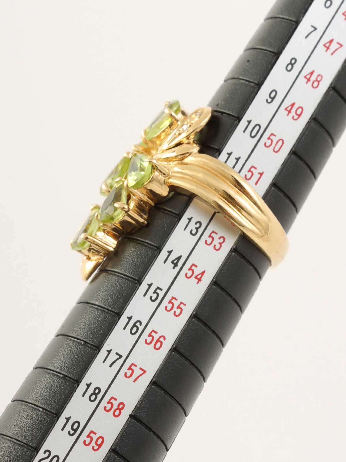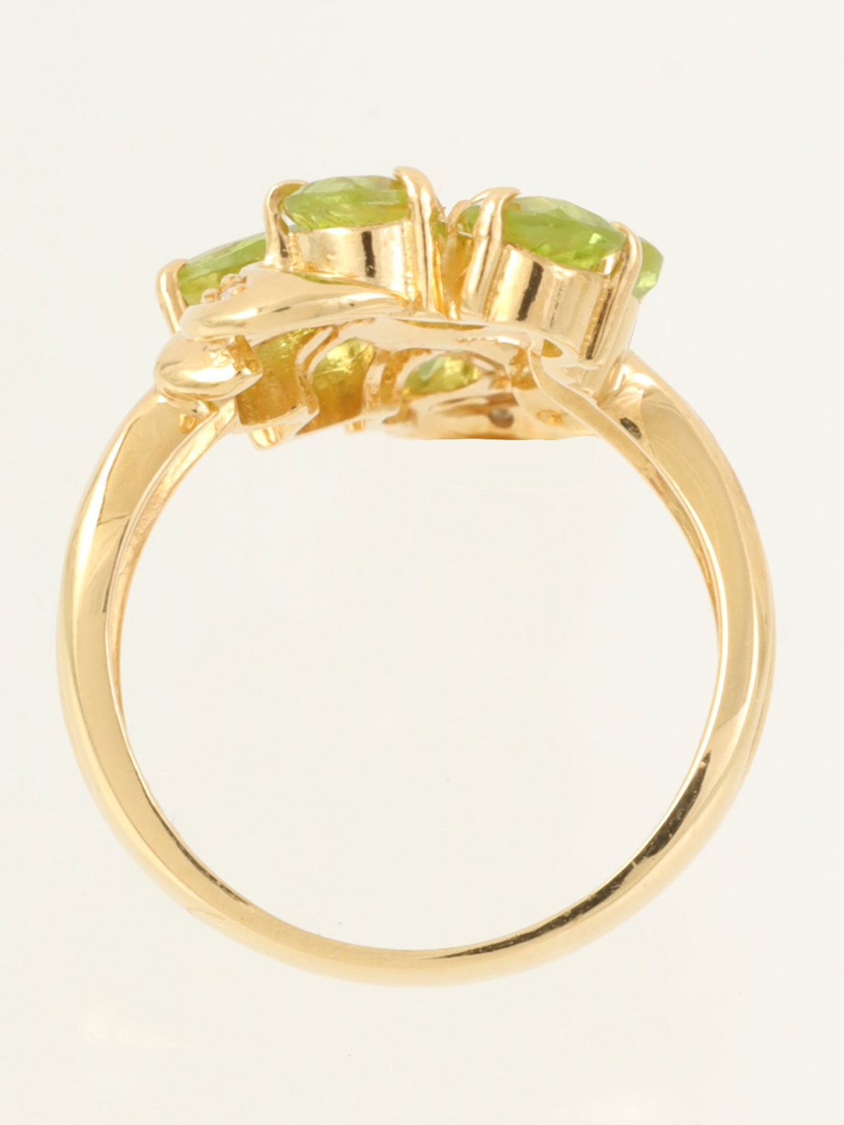 18Kイエローゴールドペリドットダイヤモンドデザインリング ゴールド/グリーン