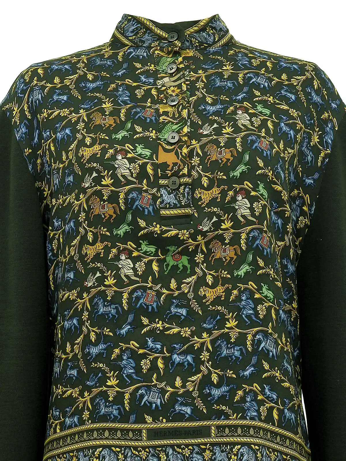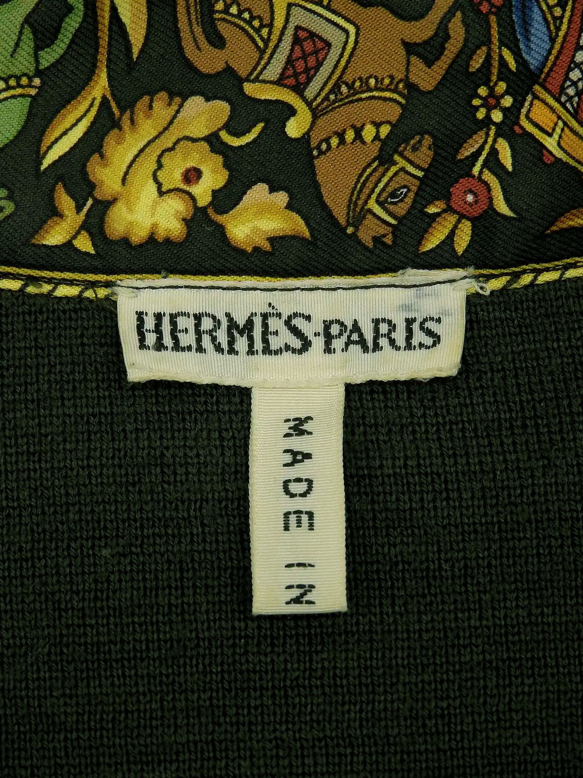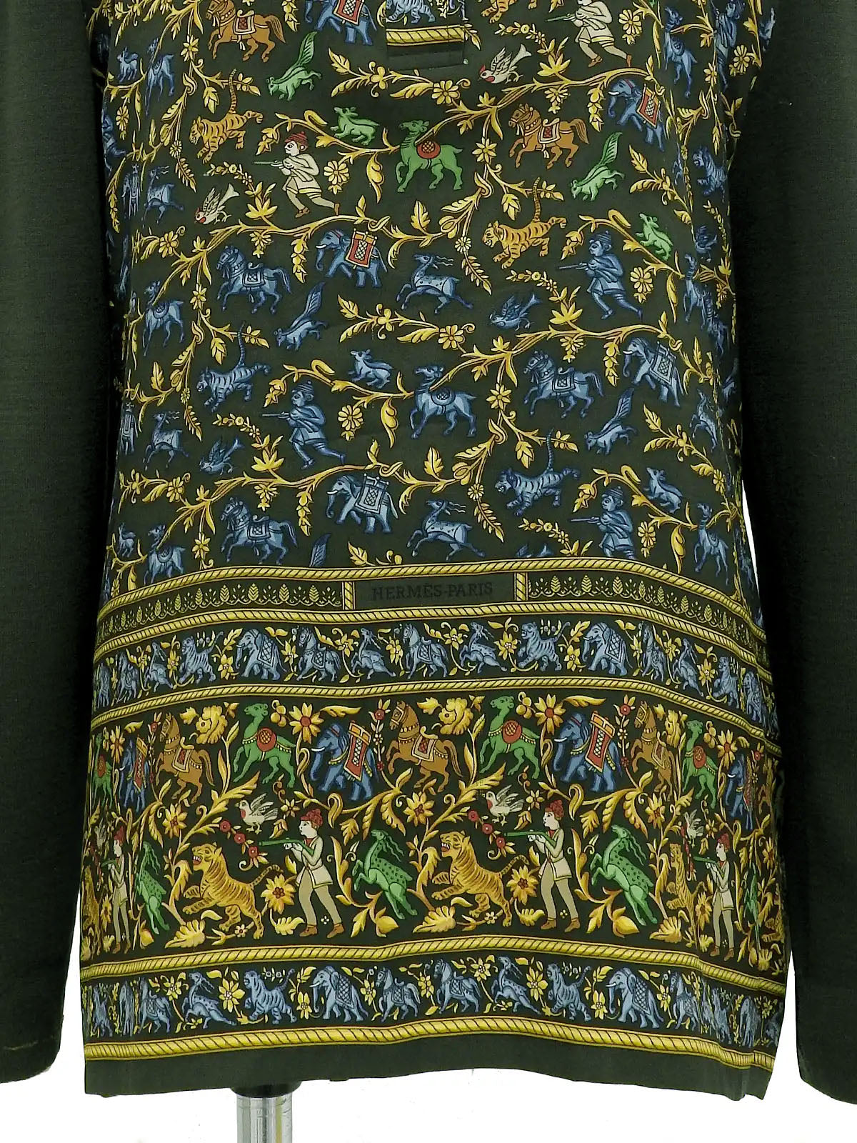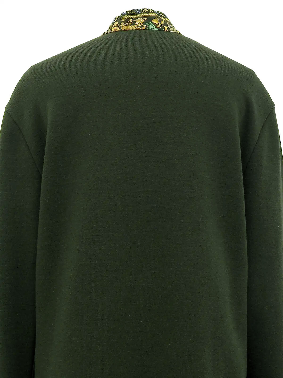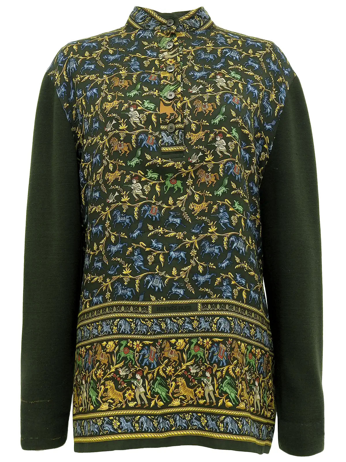シルクニットコンビスカーフパターンロングスリーブトップス グリーン/マルチ