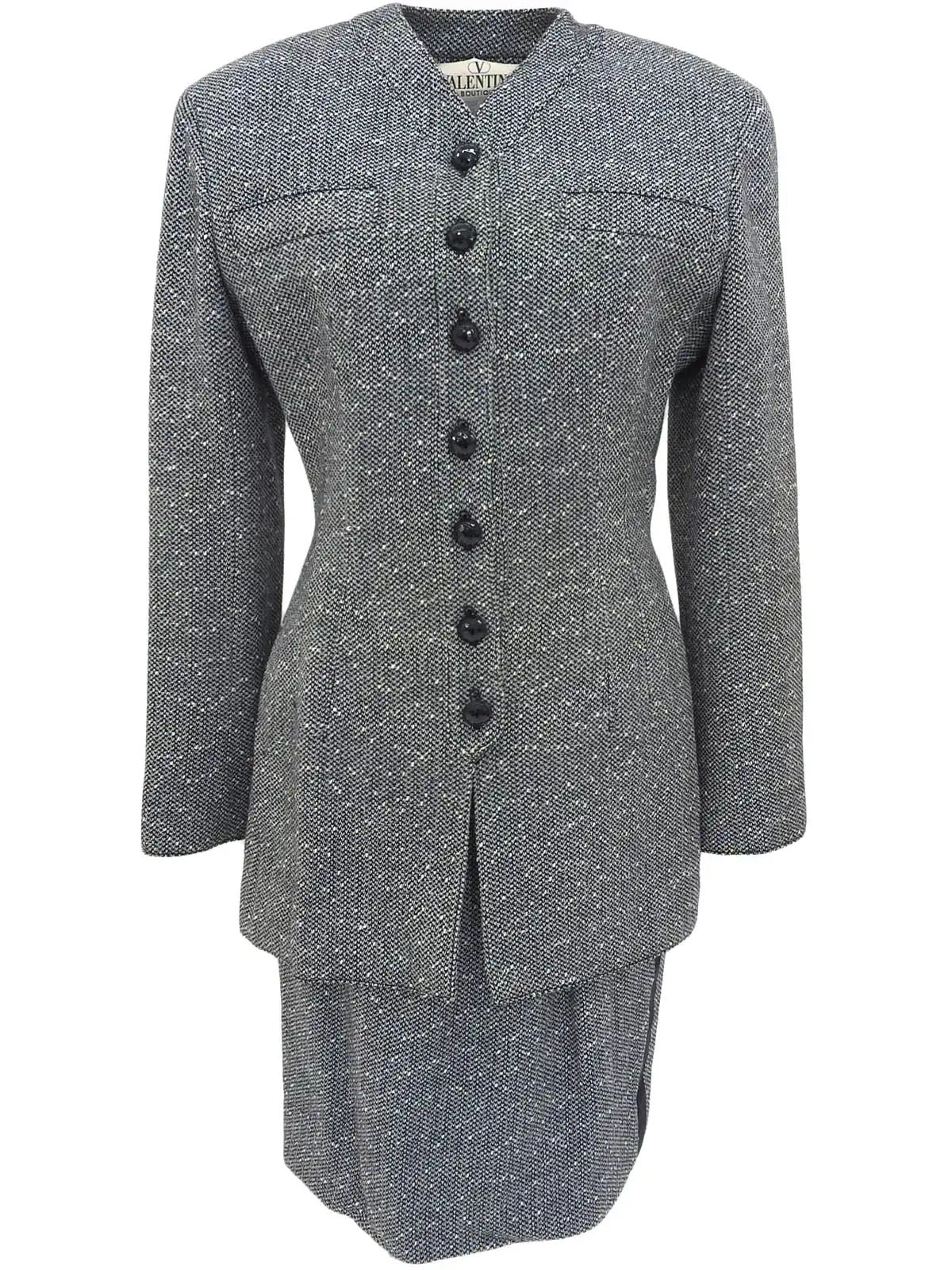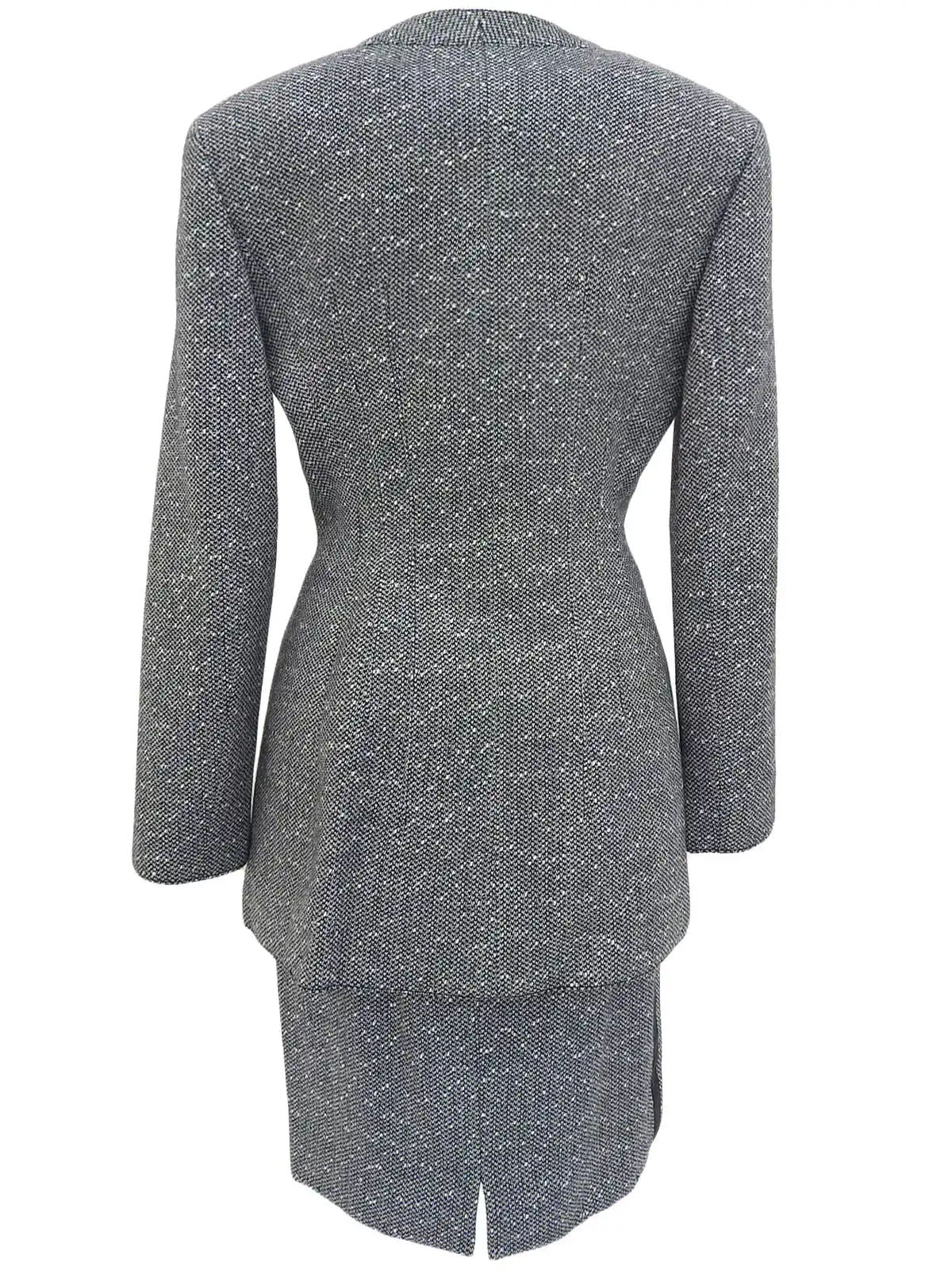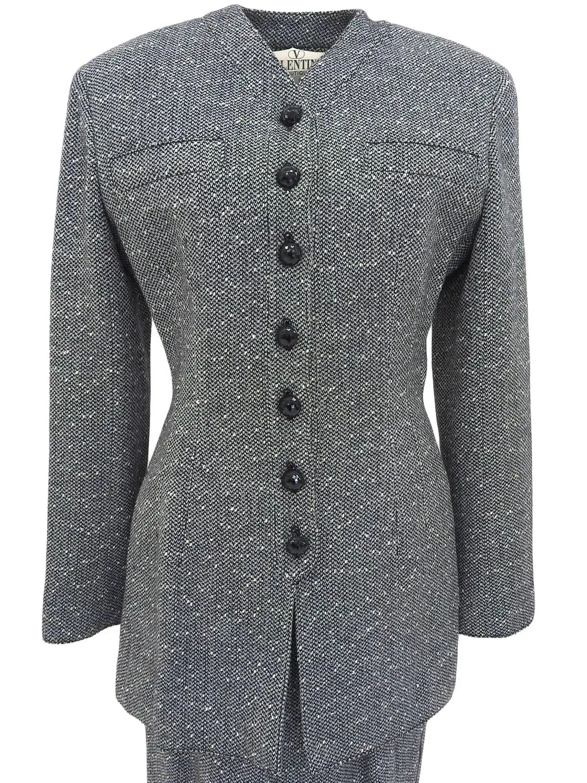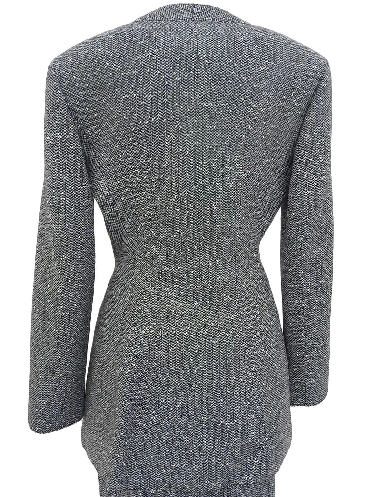 ツイードラメデザインボタンセットアップ グレー/ブラック
